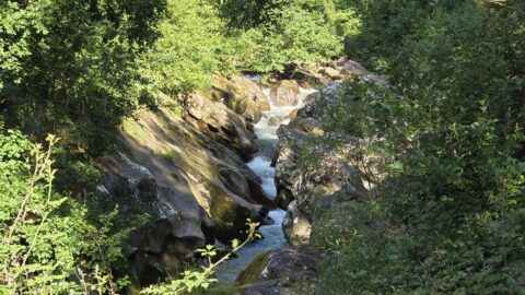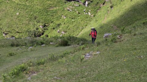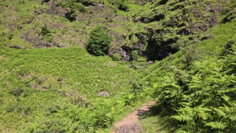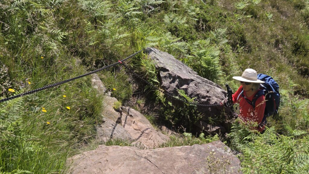 Après avoir longé le Bastan, le GR grimpe à flanc de falaise. Certains passages sont équipés de mains courantes, d’autres mériteraient de l’être et nous avons été soulagé de faire la parcours dans ce sens : la montée ne pose pas vraiment de problème mais la descente doit être beaucoup plus pénible !
