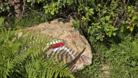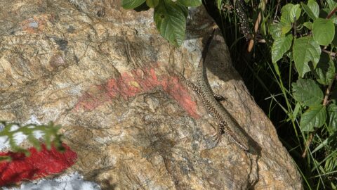 Nous avons croisé beaucoup de randonneurs sur le GR. Contrairement à avant-hier, il y avait beaucoup de femmes. Tous étaient très chargés et certains semblaient peiner. Nous espérons qu’ils auront lu les avertissements du topo-guide et suivront la variante conseillée plutôt que de se lancer dans la descente escarpée du tracé principal.