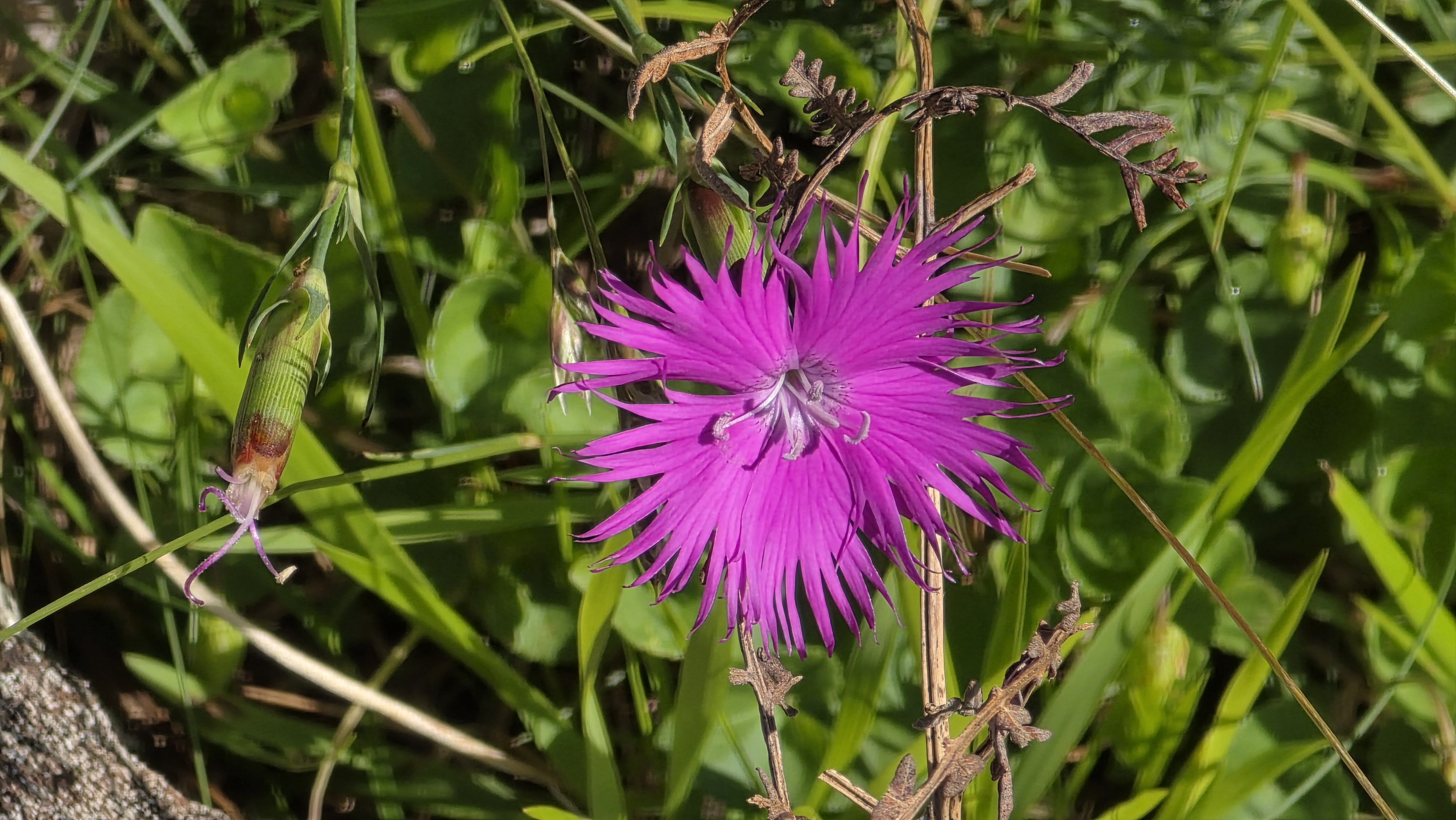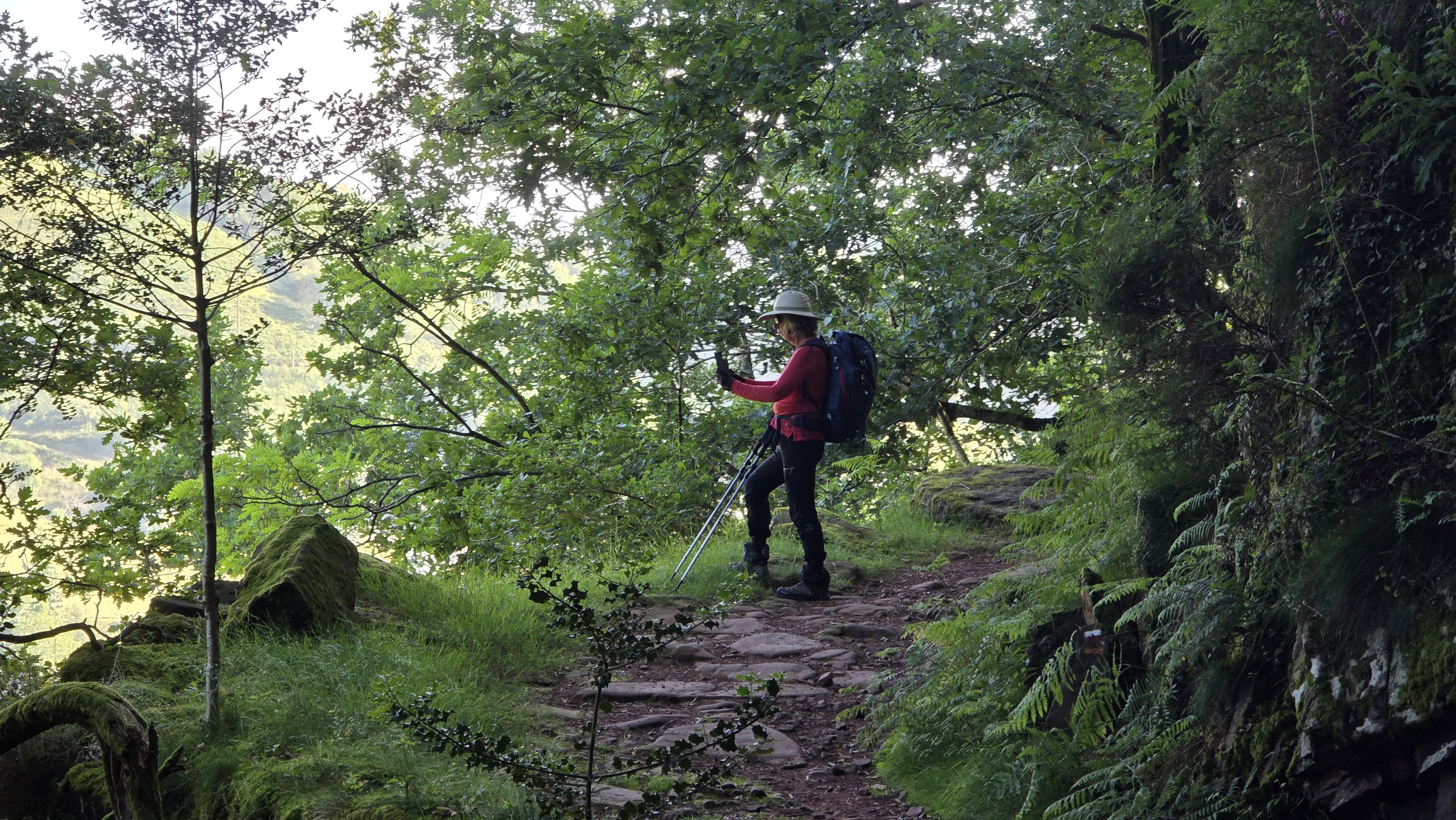 Nous avons croisé beaucoup de randonneurs sur le GR. Contrairement à avant-hier, il y avait beaucoup de femmes. Tous étaient très chargés et certains semblaient peiner. Nous espérons qu’ils auront lu les avertissements du topo-guide et suivront la variante conseillée plutôt que de se lancer dans la descente escarpée du tracé principal.