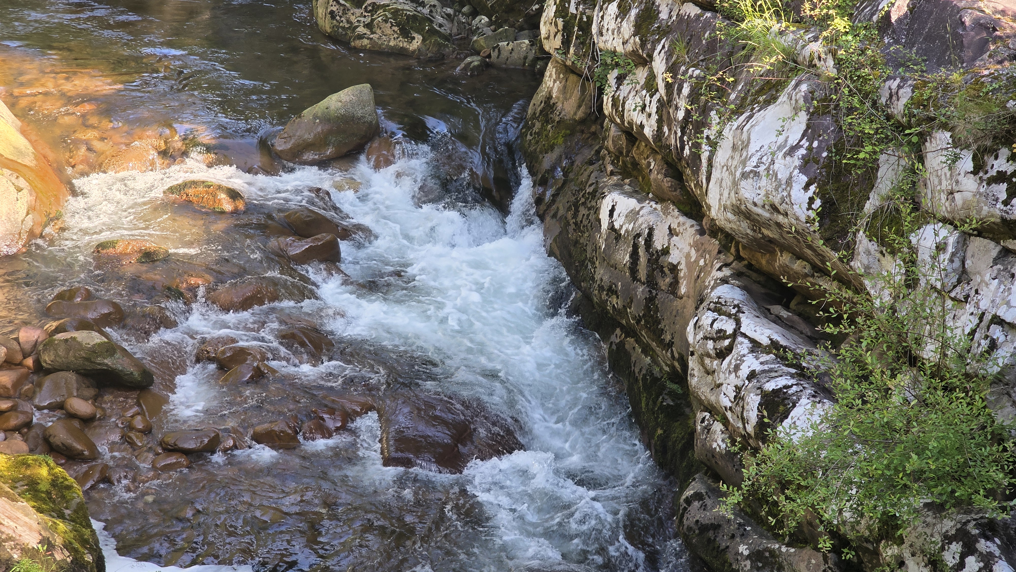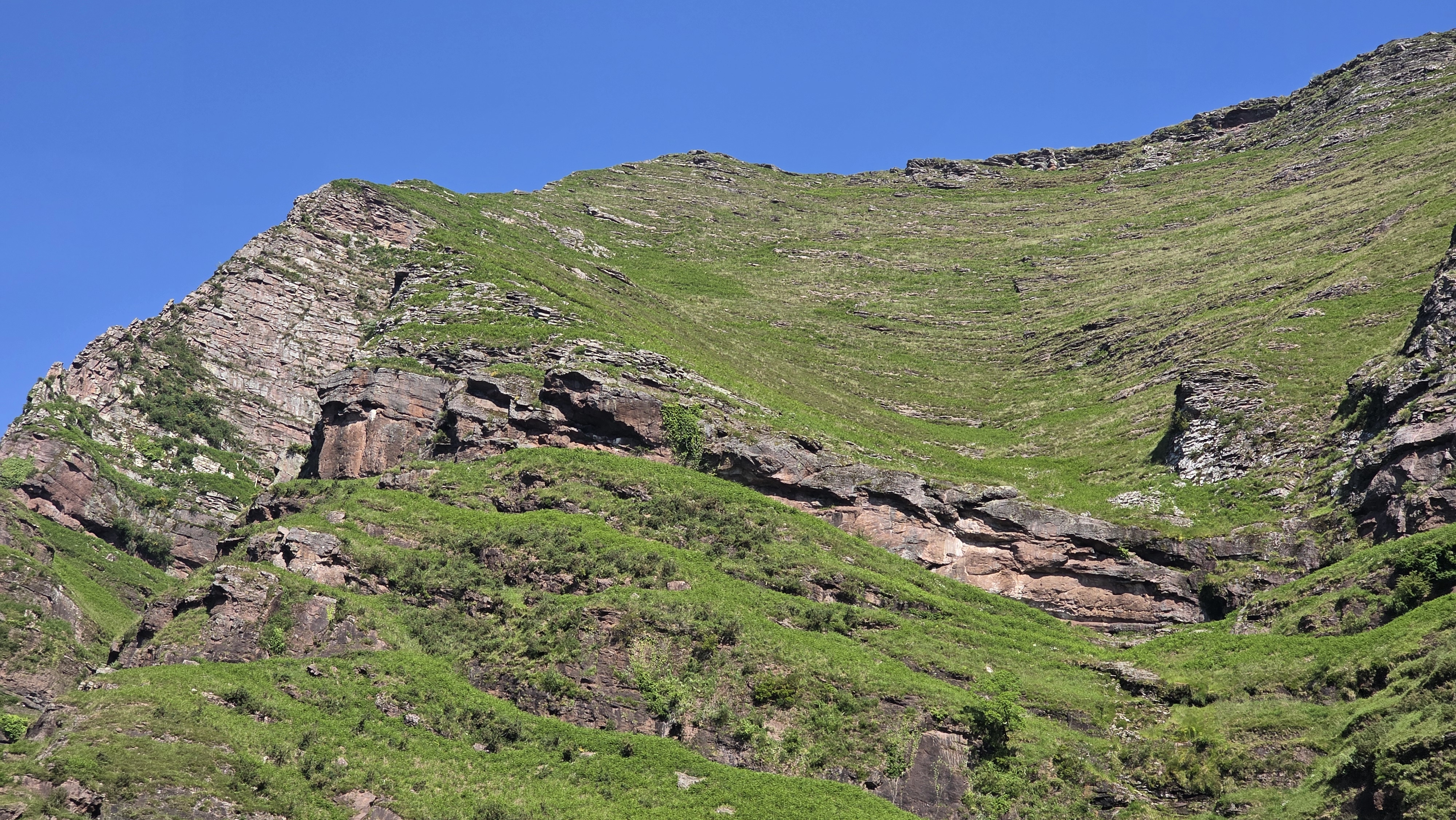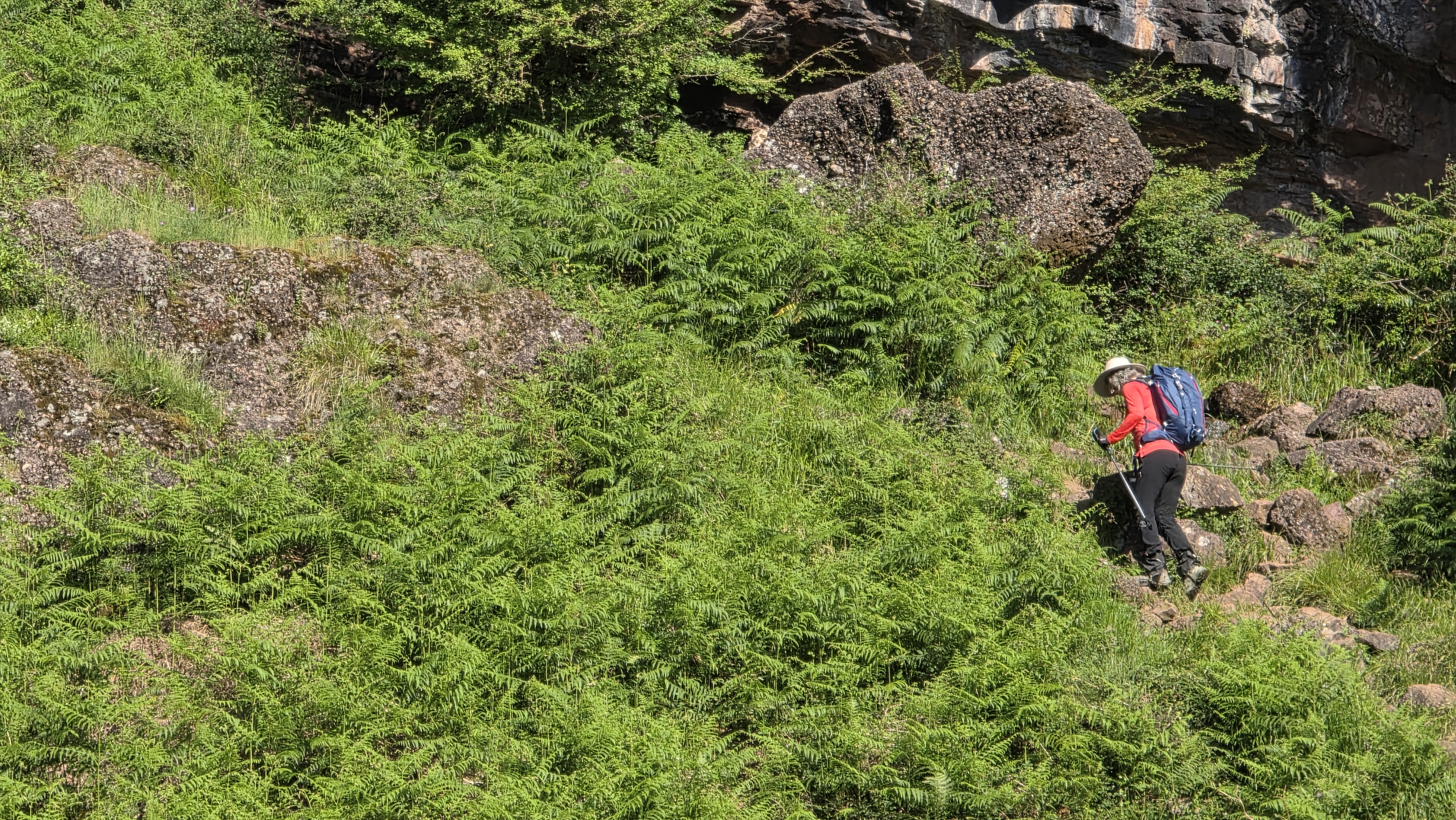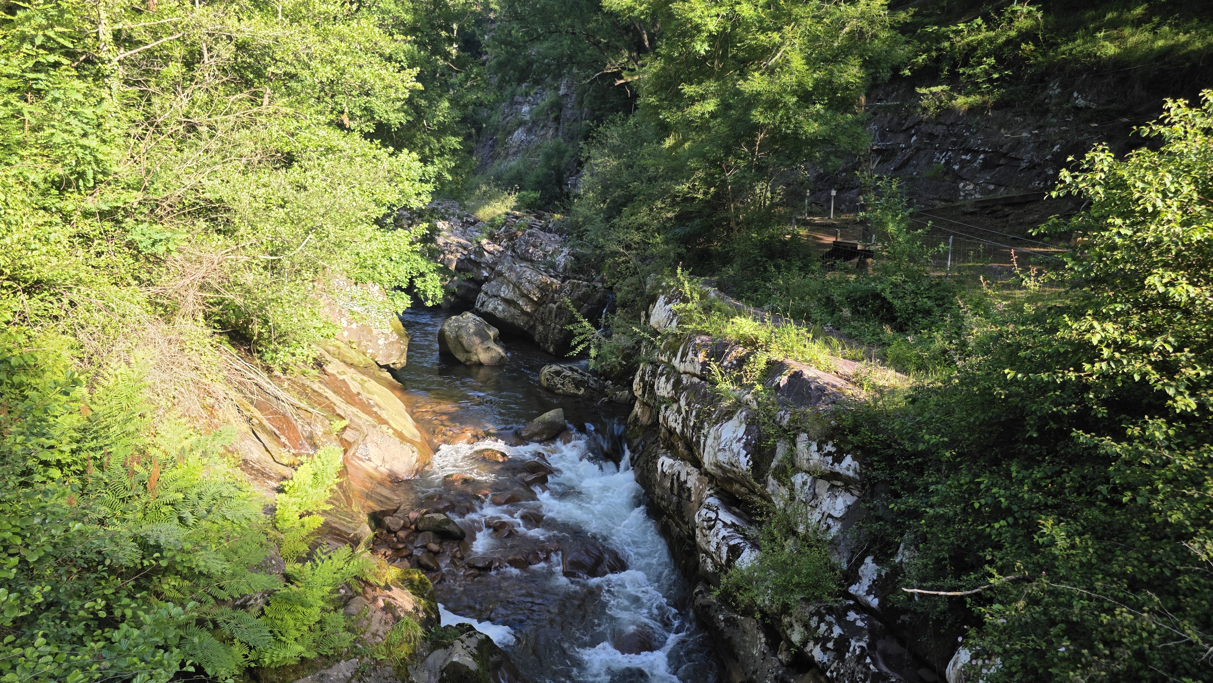 Après avoir longé le Bastan, le GR grimpe à flanc de falaise. Certains passages sont équipés de mains courantes, d’autres mériteraient de l’être et nous avons été soulagé de faire la parcours dans ce sens : la montée ne pose pas vraiment de problème mais la descente doit être beaucoup plus pénible !