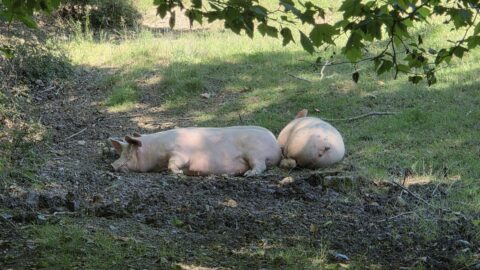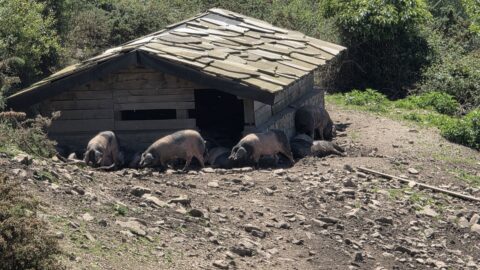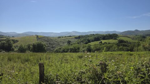 Nous avons cheminé sur des crêtes débonnaires au milieu des pottocks et des élevages de porcs « pie noir » et nous sommes descendus jusqu’à Ascain.