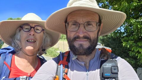 Peu avant d’y arriver nous avons atteint les 1000 km depuis notre départ de Montpellier et nous avons pris des selfies pour immortaliser la chose.