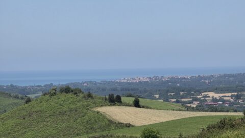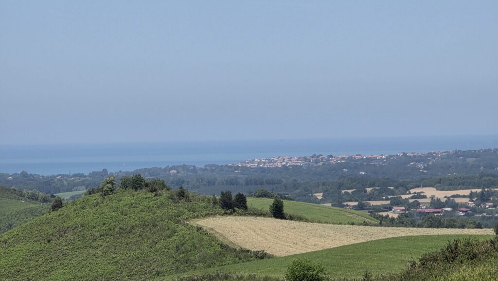 Après une montée en sous-bois bien appréciée par ce temps chaud, le paysage s’est dégagé, sur le Rhune puis sur l’océan.