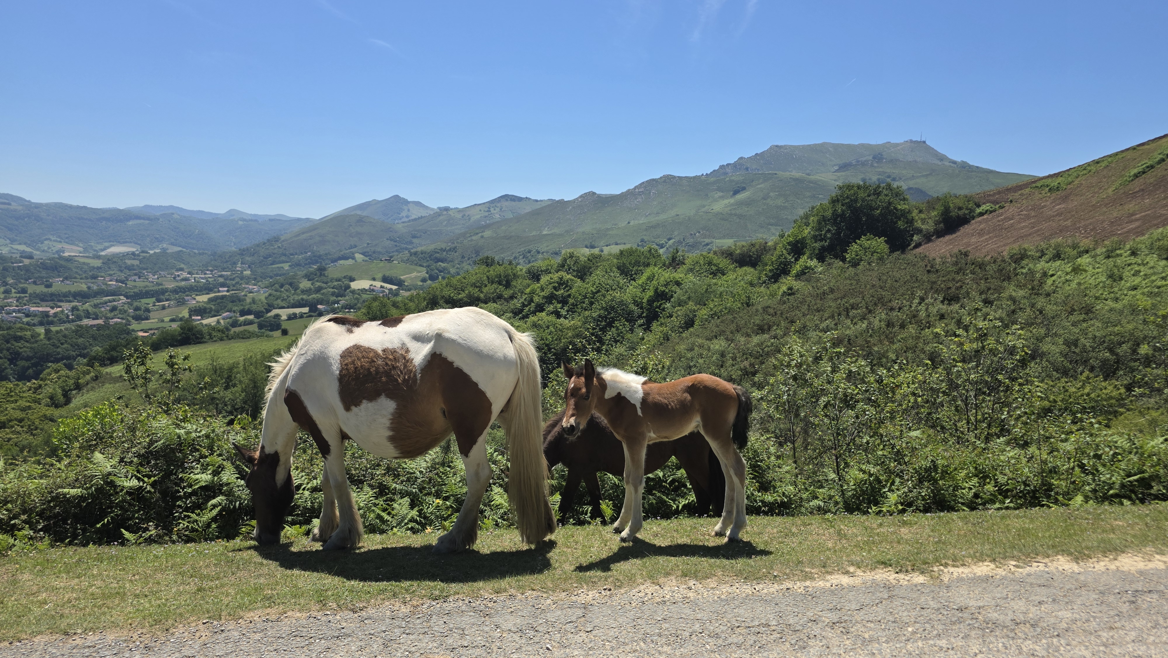 Nous avons cheminé sur des crêtes débonnaires au milieu des pottocks et des élevages de porcs « pie noir » et nous sommes descendus jusqu’à Ascain.