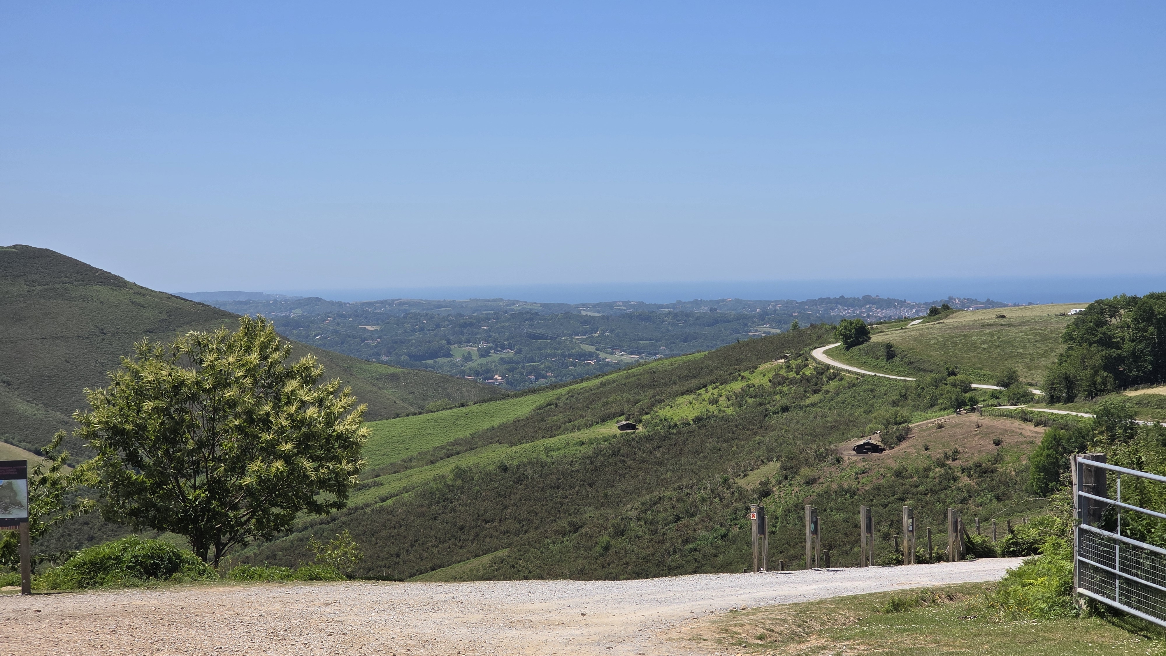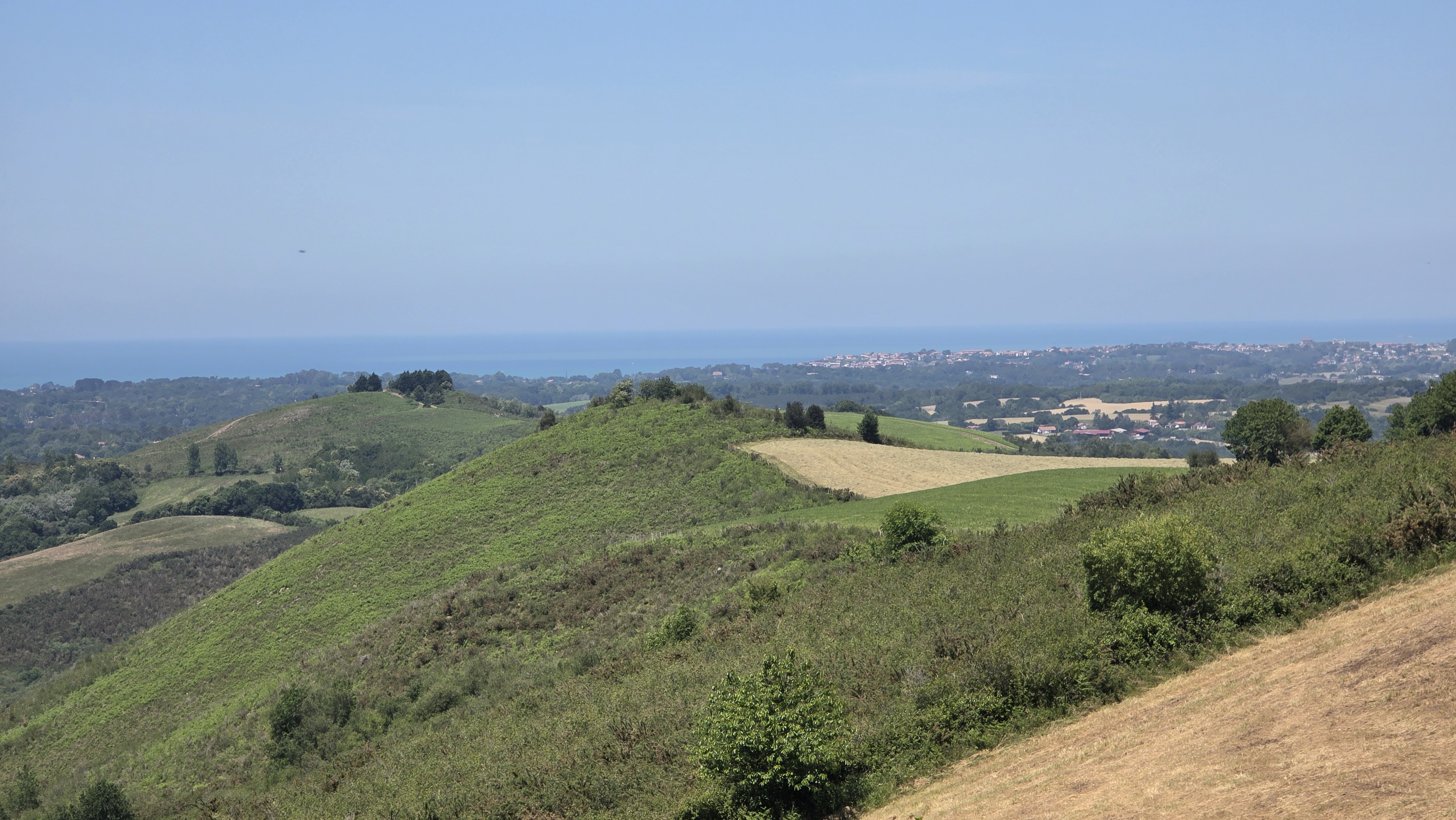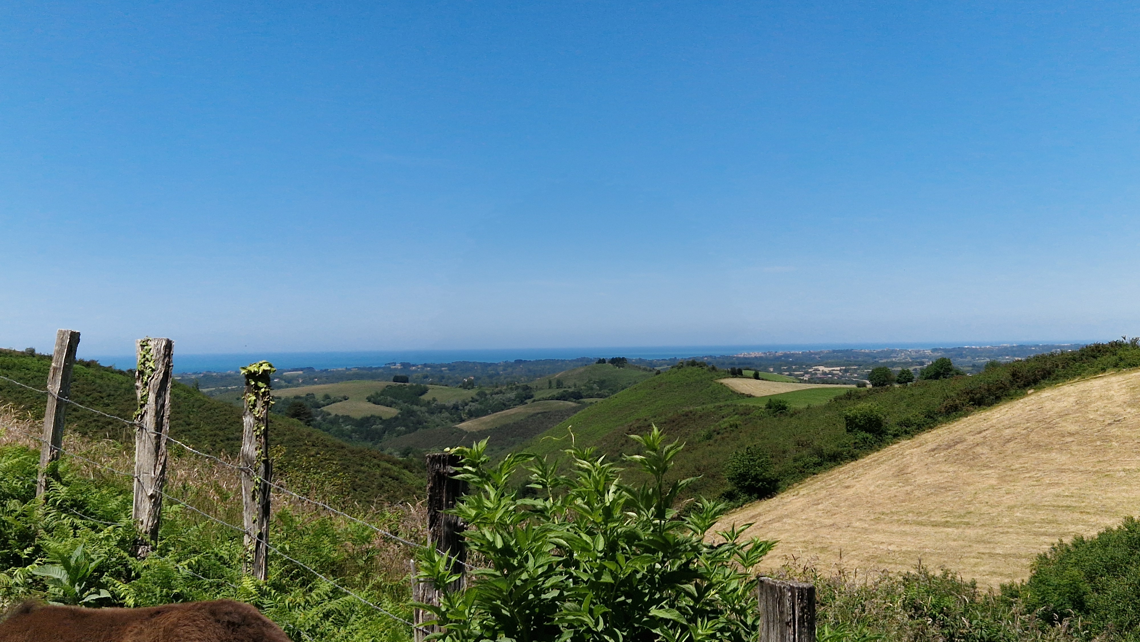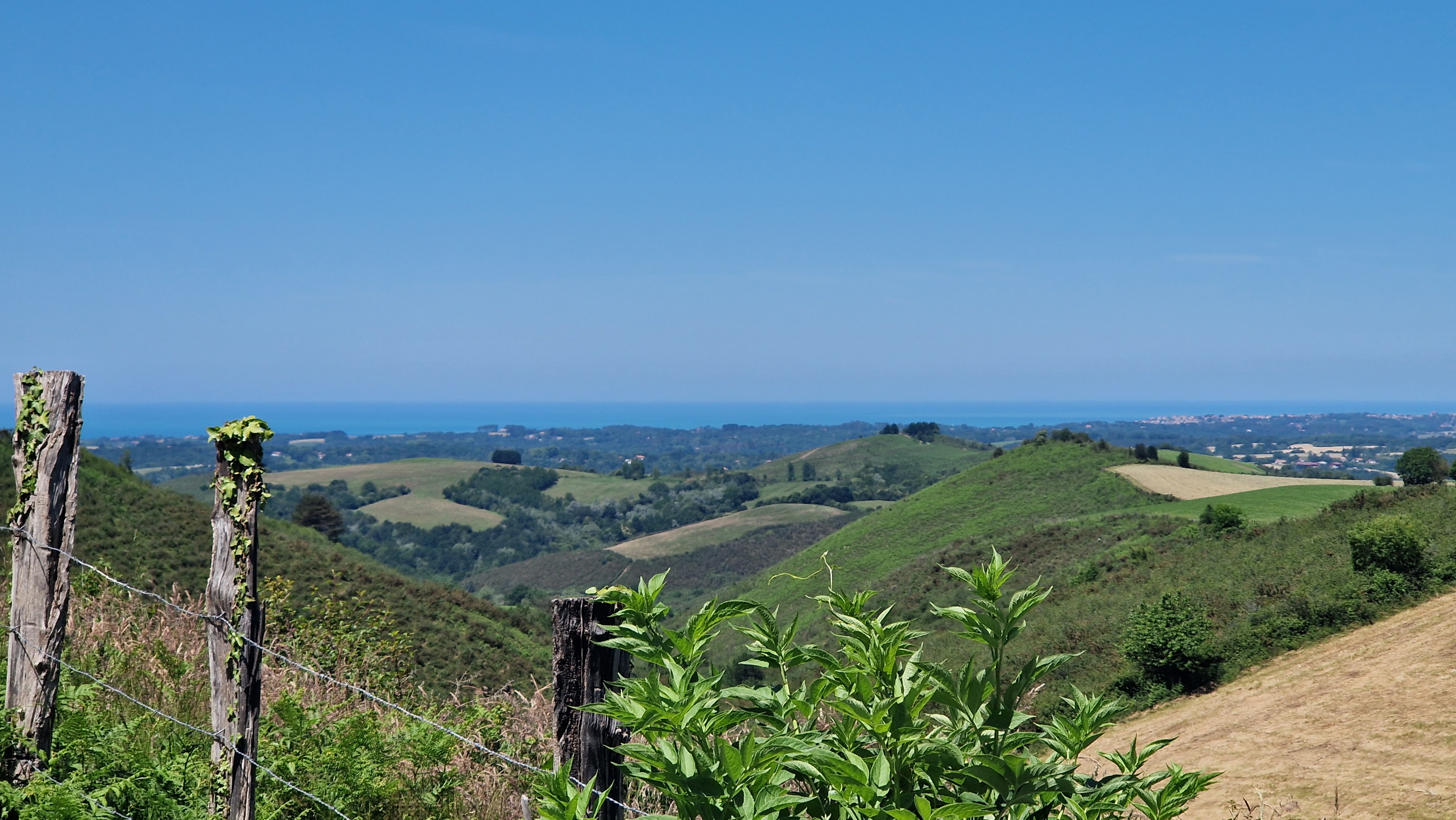 Après une montée en sous-bois bien appréciée par ce temps chaud, le paysage s’est dégagé, sur le Rhune puis sur l’océan.
