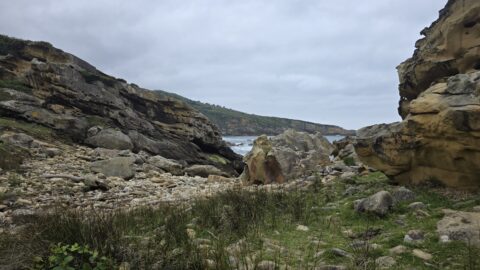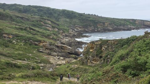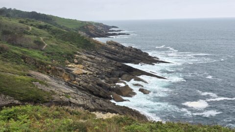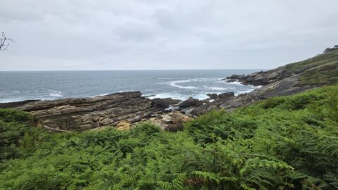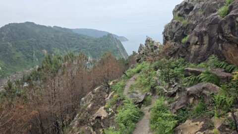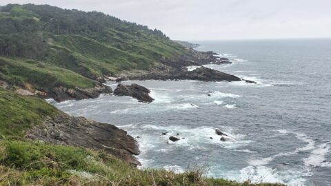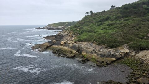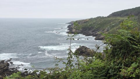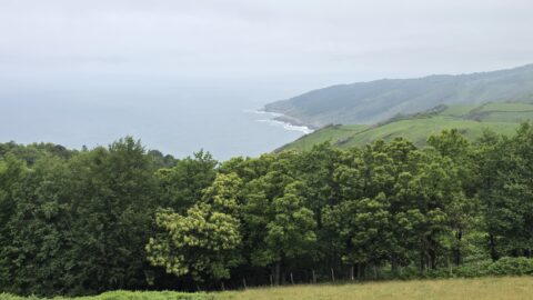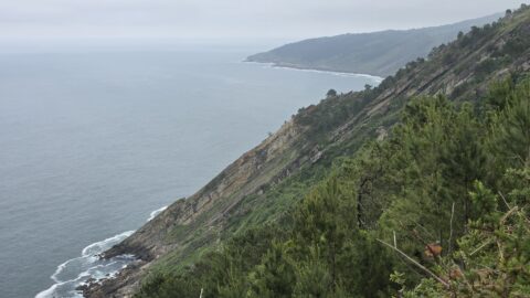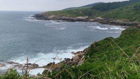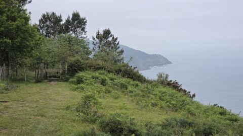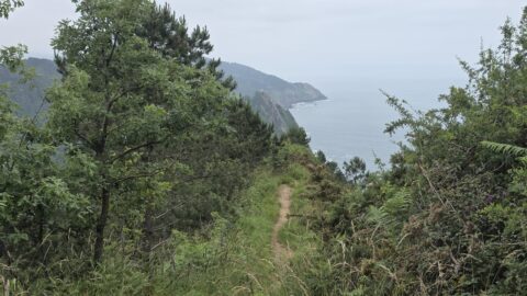 Le GR 121 longe d’abord la côte avant de monter vers les crêtes où il rejoint un moment le Camino del Norte.