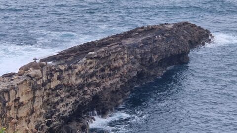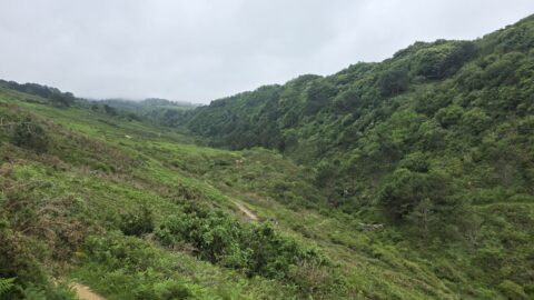 Il redescend ensuite vers la côte, on arrive sur sur une crête qui surplombe la mer vers le nord et une vallée vers le sud.