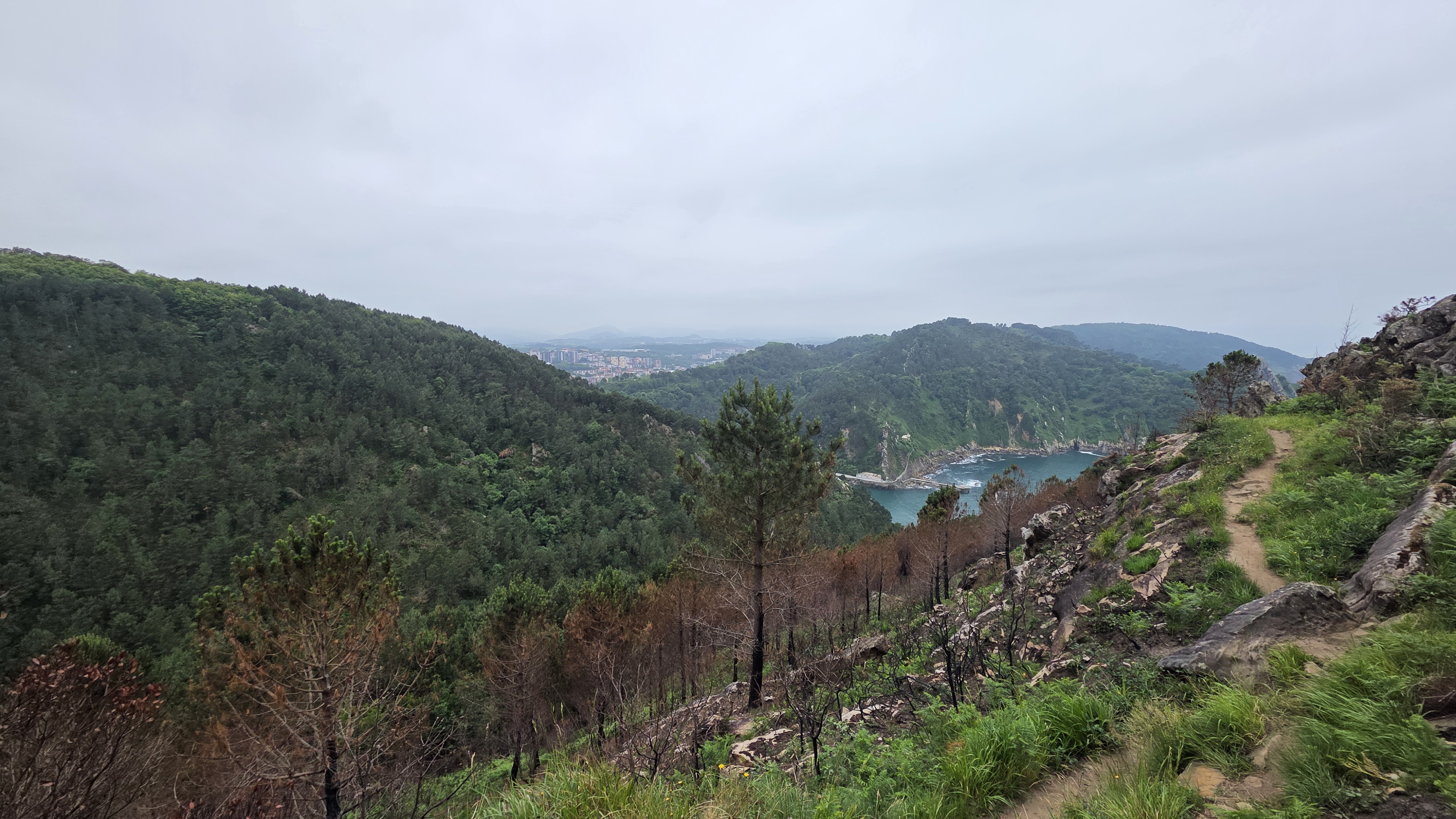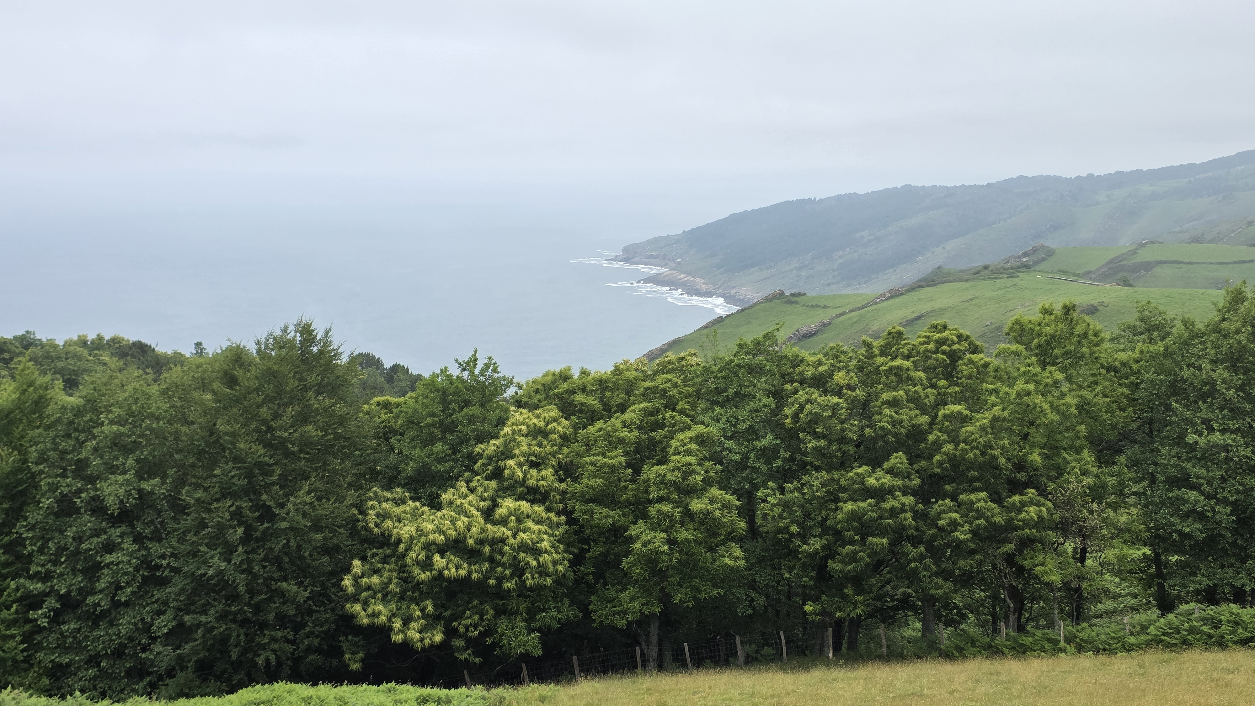Le GR 121 longe d’abord la côte avant de monter vers les crêtes où il rejoint un moment le Camino del Norte.