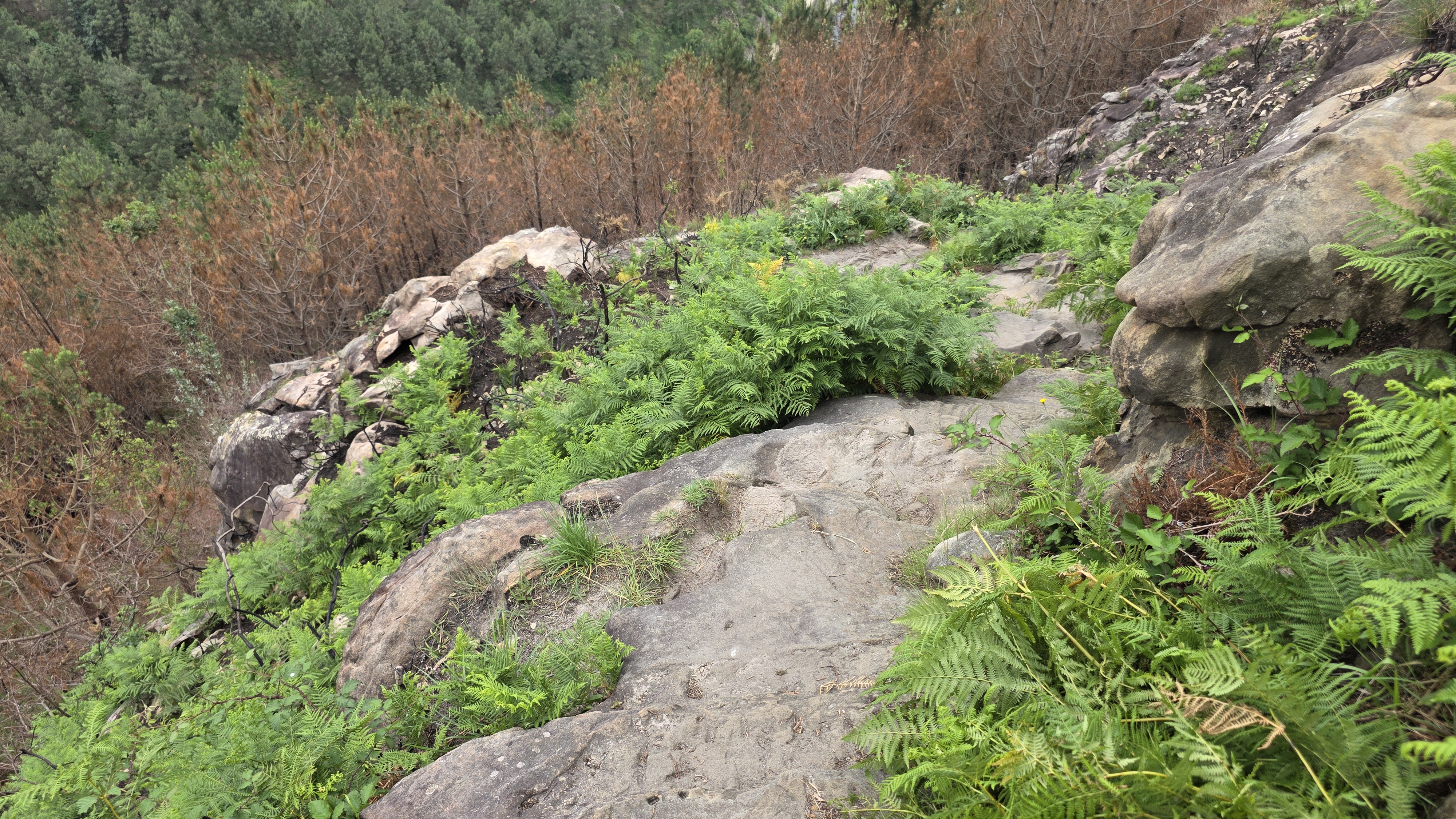Il redescend ensuite vers la côte, on arrive sur sur une crête qui surplombe la mer vers le nord et une vallée vers le sud.
