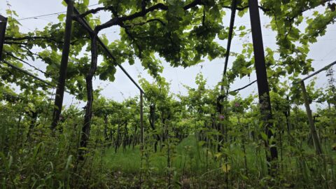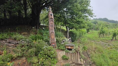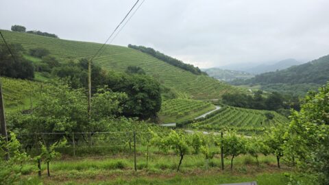 Ce matin nous avons traversé Orio (le village) puis l’Oria (le fleuve) avant de monter dans les vignes mais aussi au bord de l’autoroute avec le bruit qui l’accompagne.