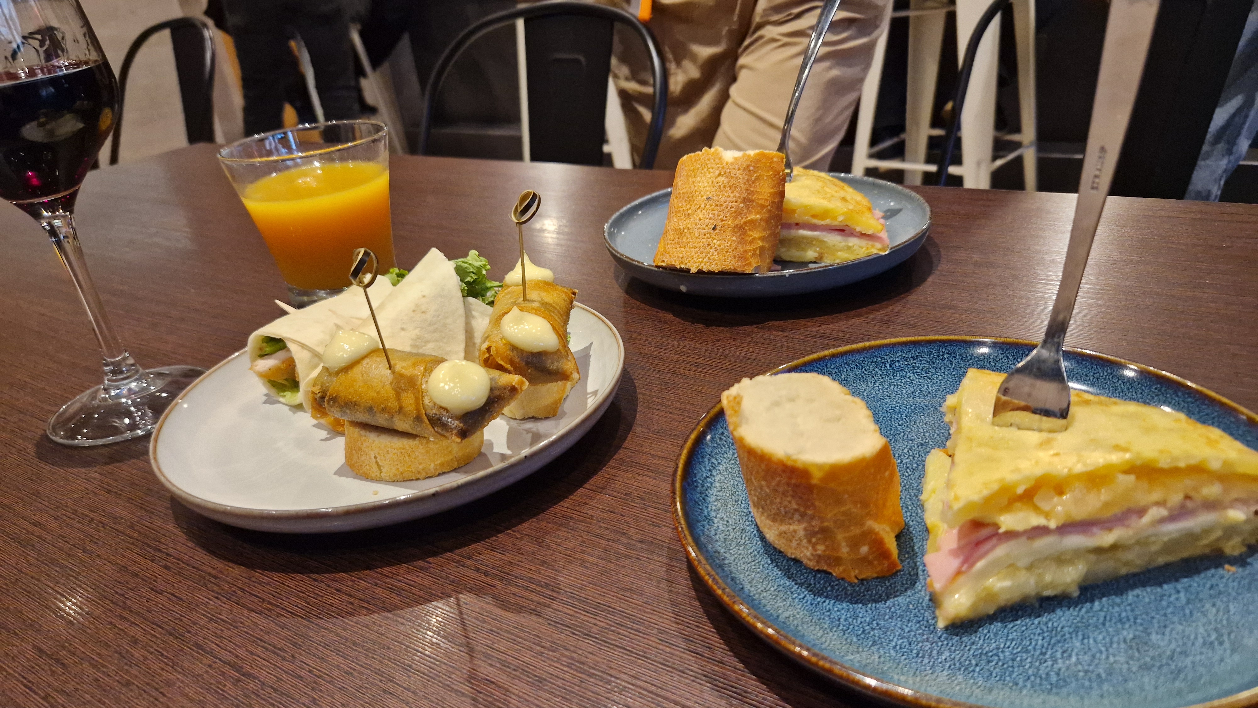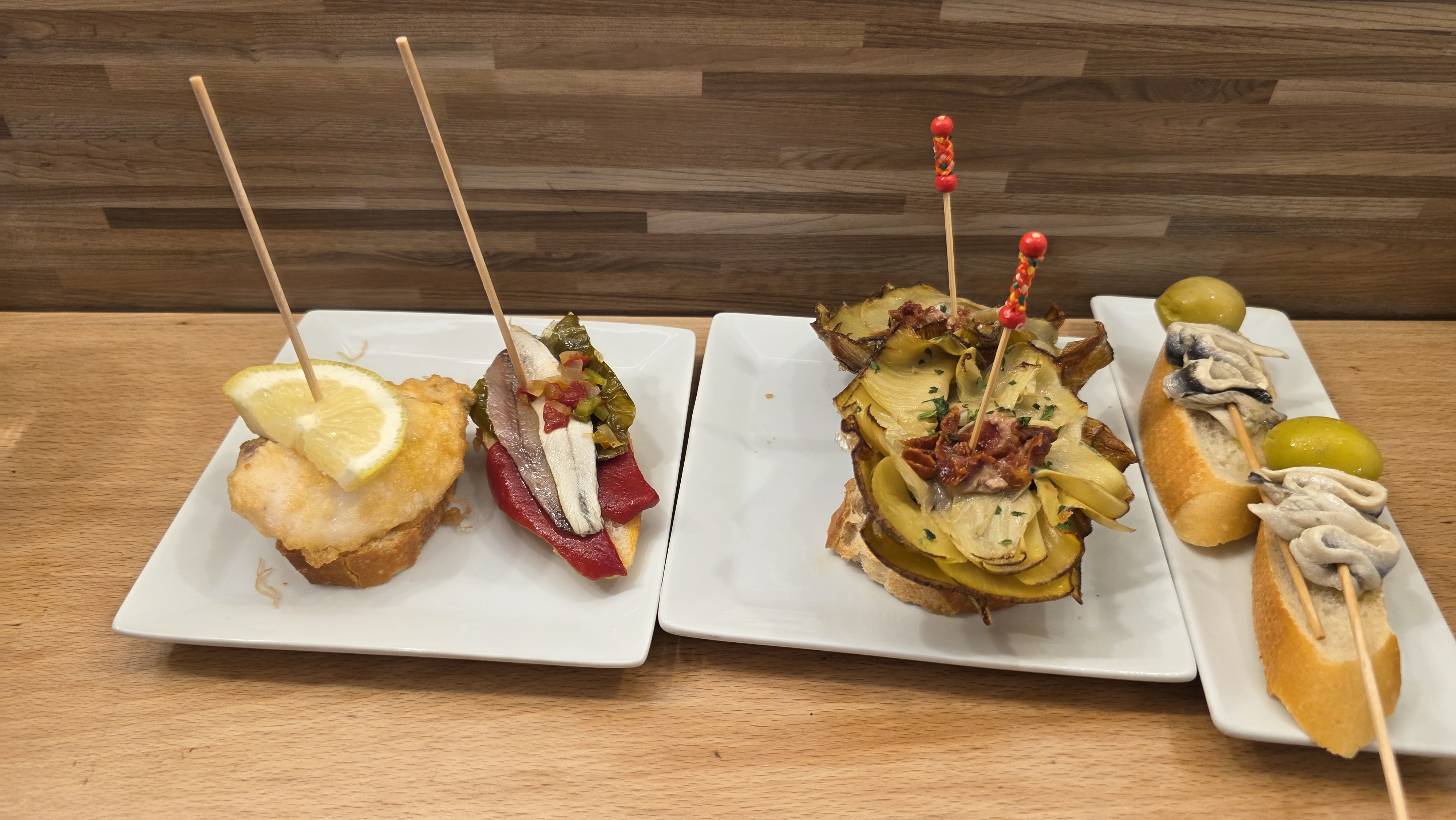 Ce soir nous avons également diné de pintxos. Aujourd’hui nous nous sommes donc nourris de pintxos (à part des yaourts locaux trouvés dans un distributeur automatique). En plus d’être bons ils sont disponibles à toute heure et permettent de déjeuner et diner à l’heure française !