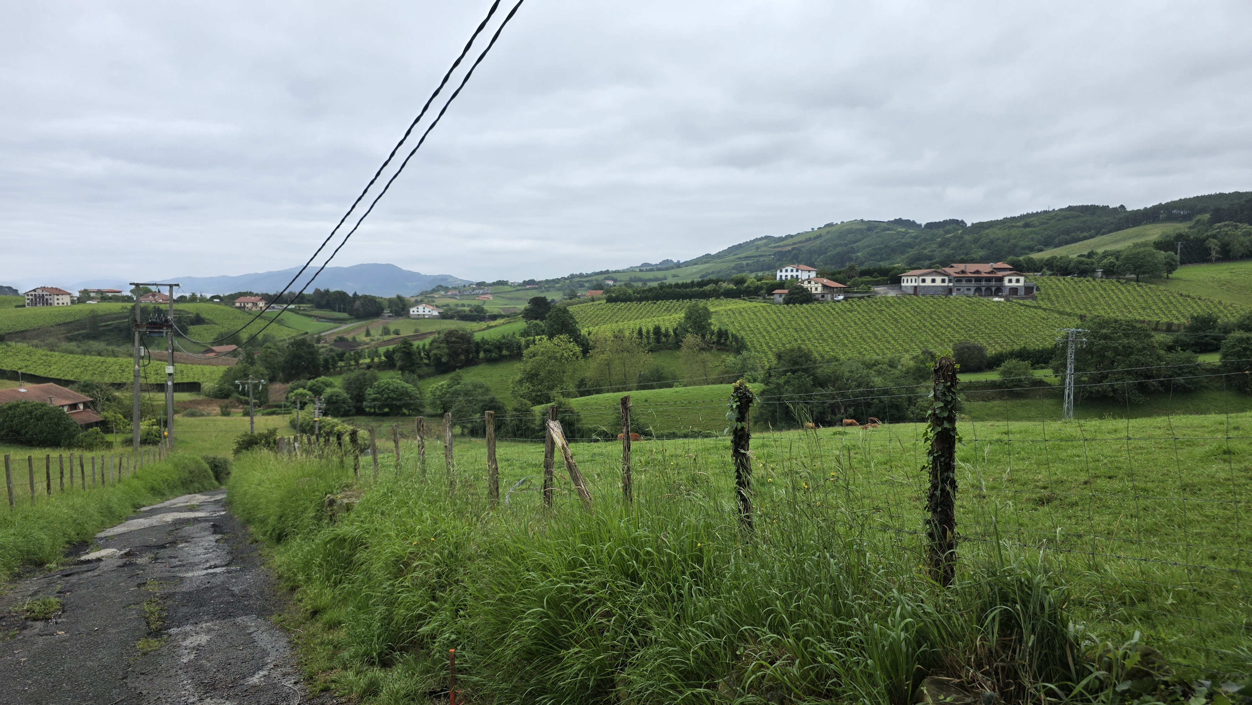 Ce matin nous avons traversé Orio (le village) puis l’Oria (le fleuve) avant de monter dans les vignes mais aussi au bord de l’autoroute avec le bruit qui l’accompagne.