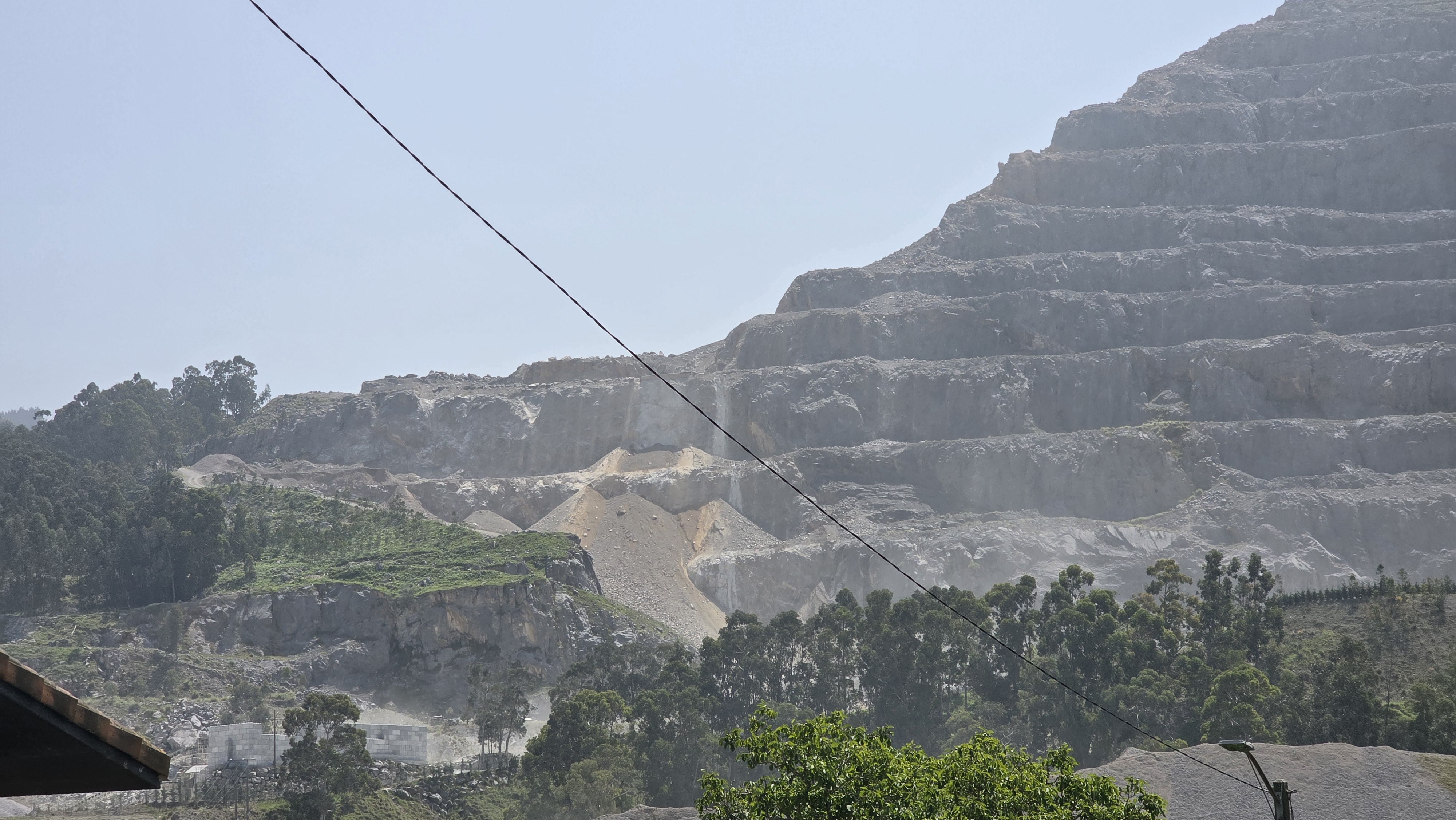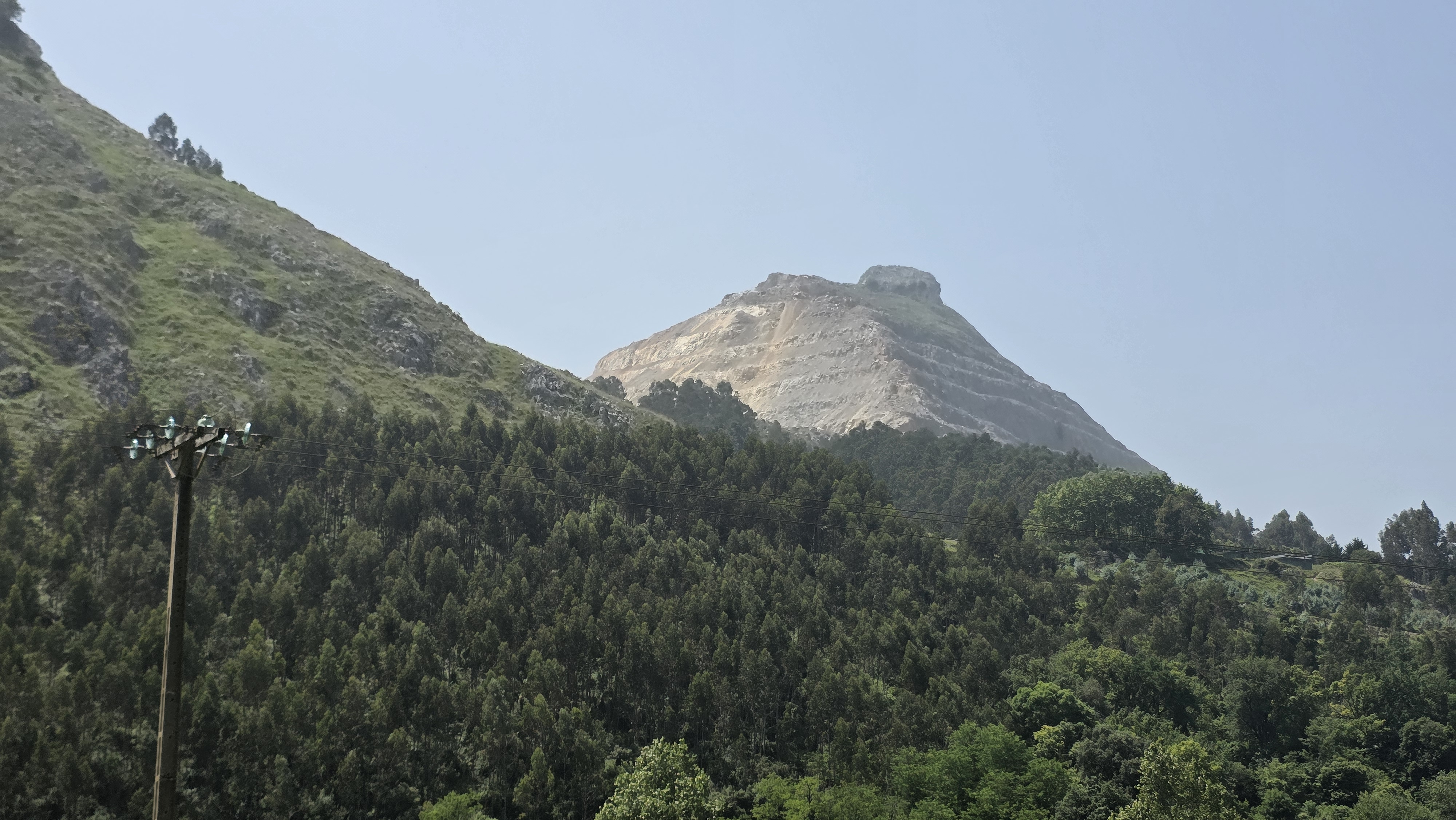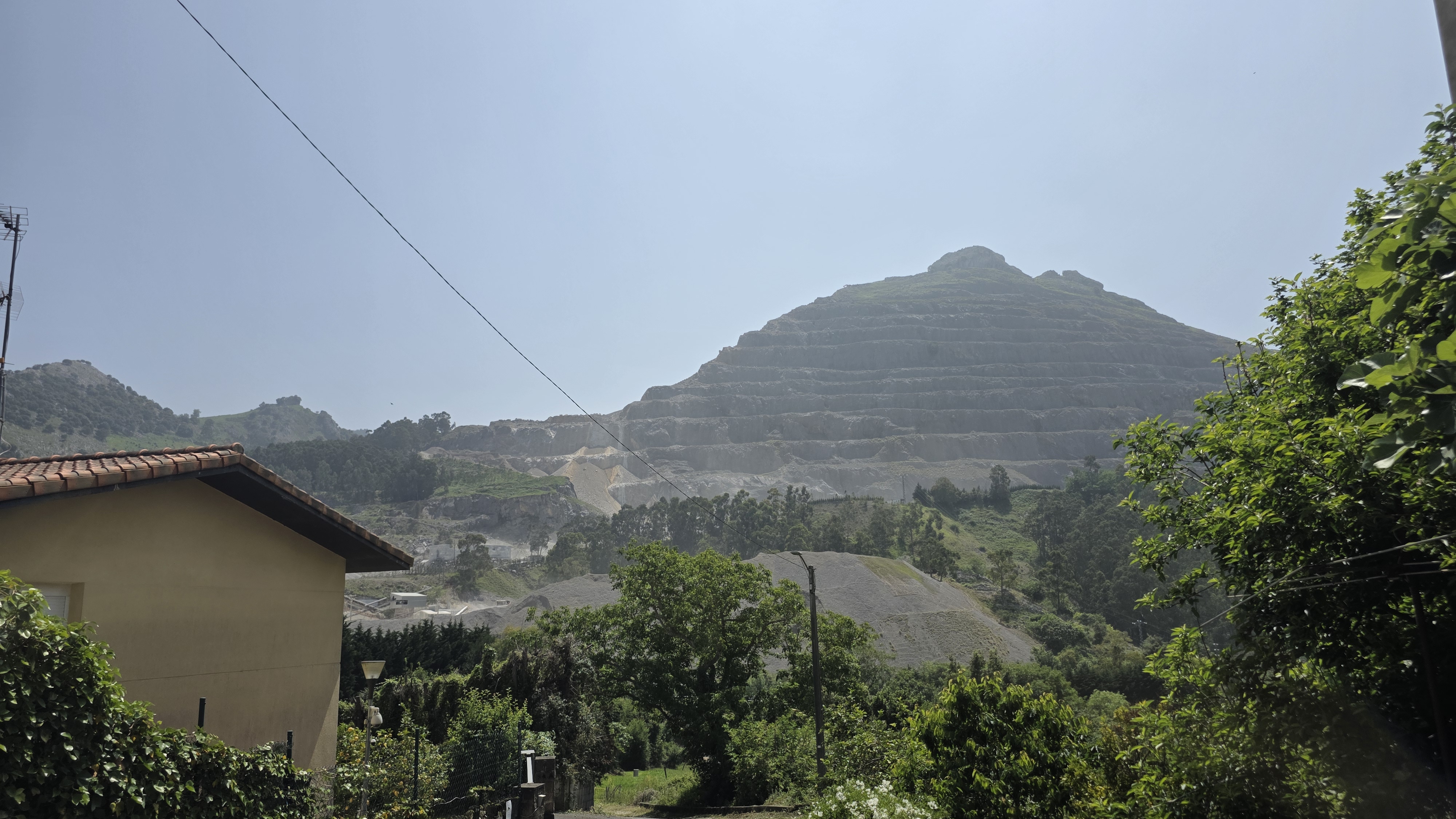 Au village de Santullan nous avons trouvé un café pour nous rafraichir (la journée a été chaude) et nous avons contemplé le spectacle d’une cimenterie qui semble vouloir avaler une montagne.