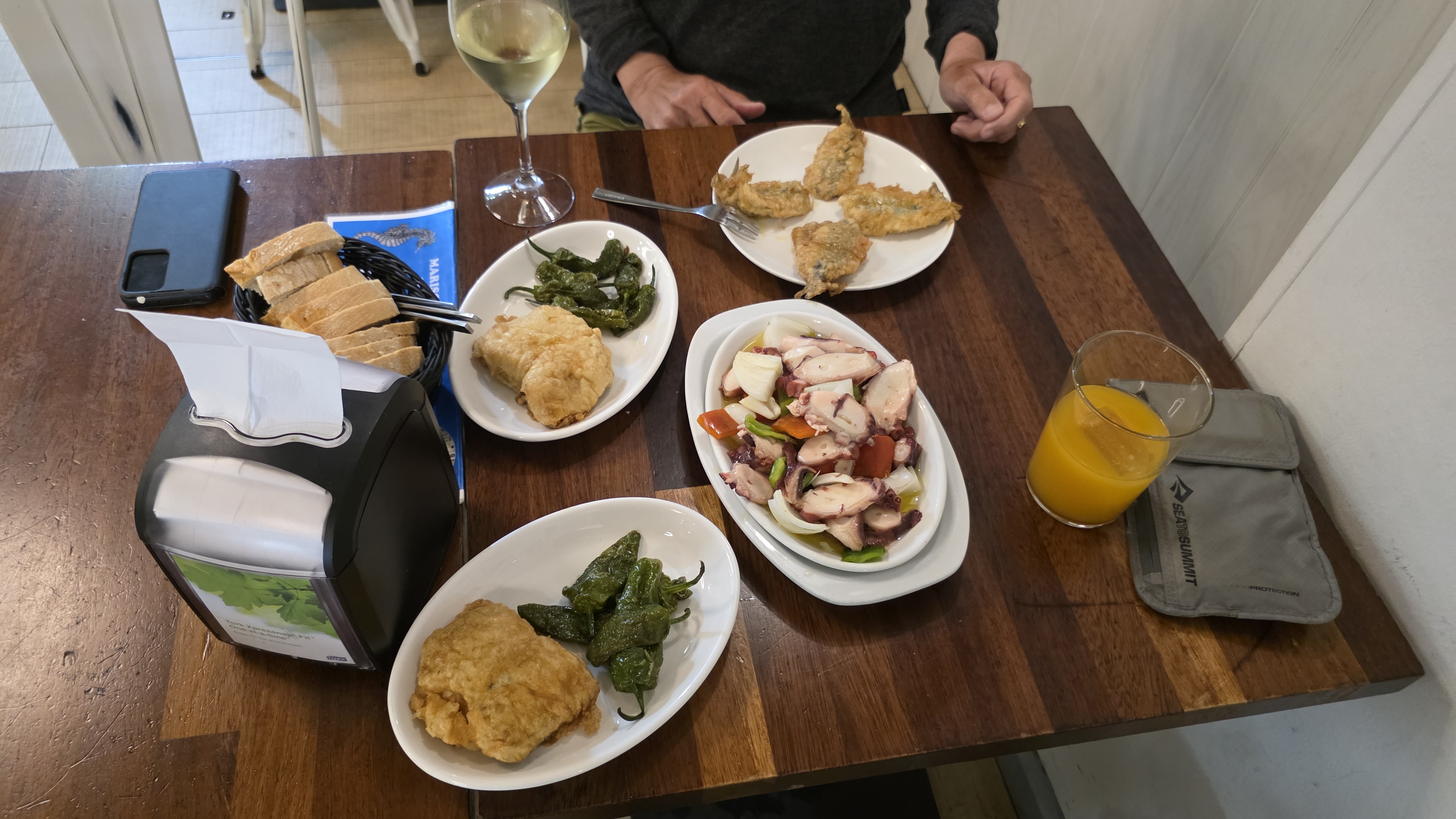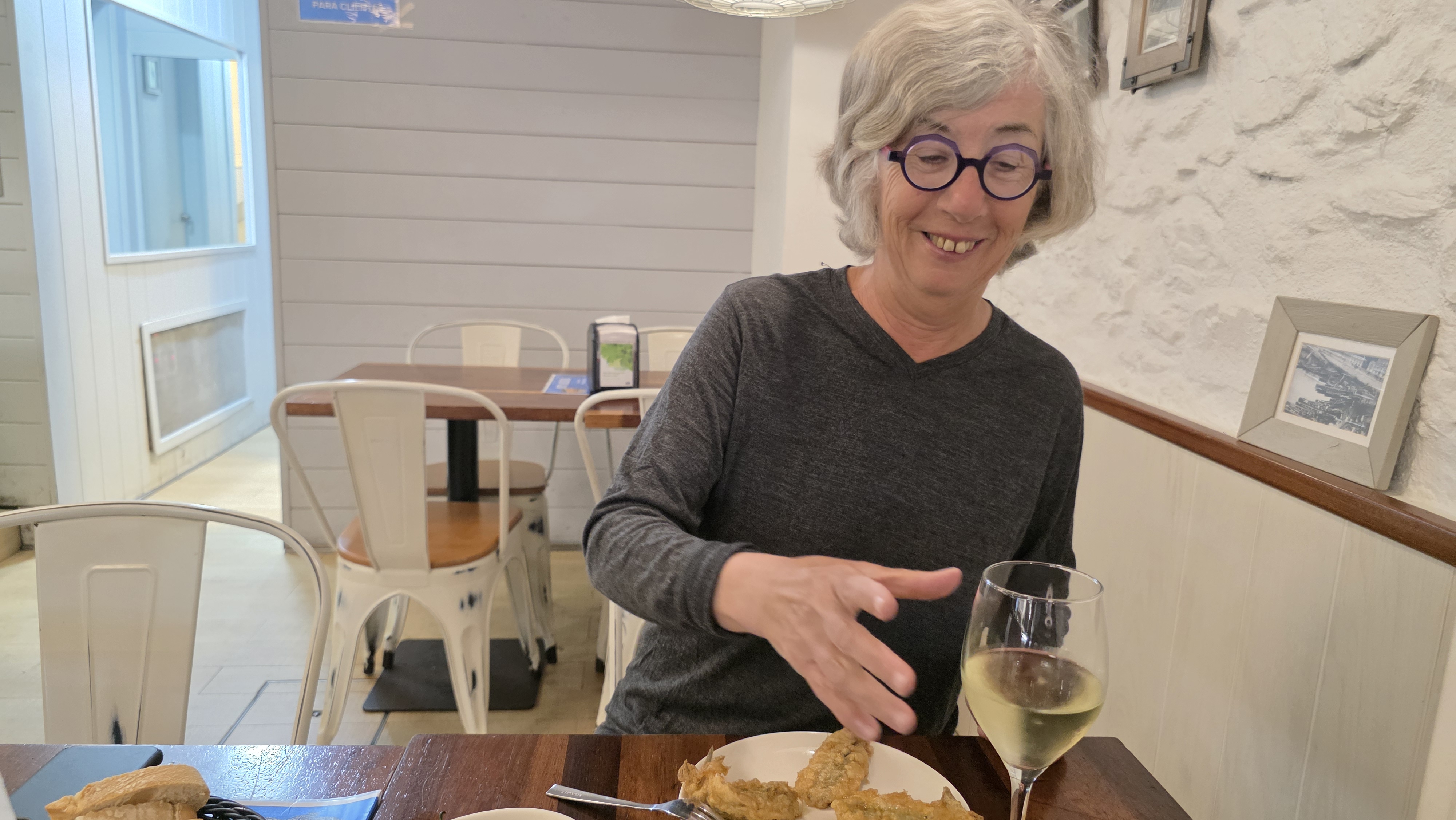 Gisèle a trouvé un restaurant où nous avons diné de poissons et de salade au poulpe et un très bon glacier est venu compléter ce repas.