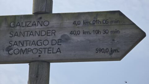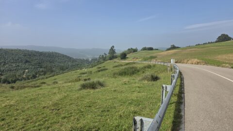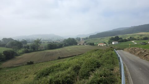 Le Camino del Norte prend ensuite un peu de hauteur, sur de petites routes au milieu de collines. Beaucoup de pèlerins s’arrêtent au village de Güesme mais nous avons préféré continuer pour nous ménager une étape plus courte demain.