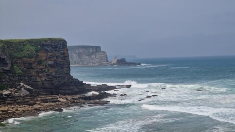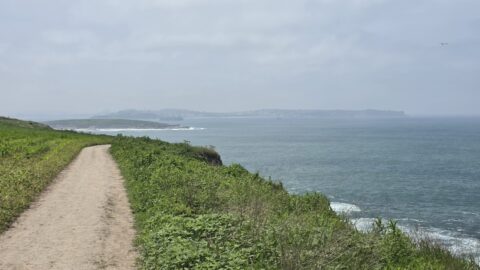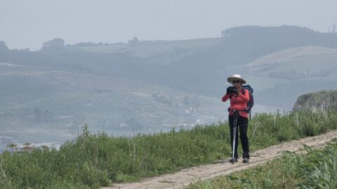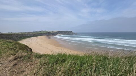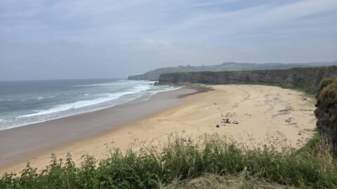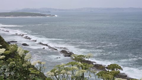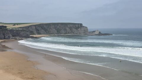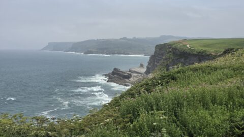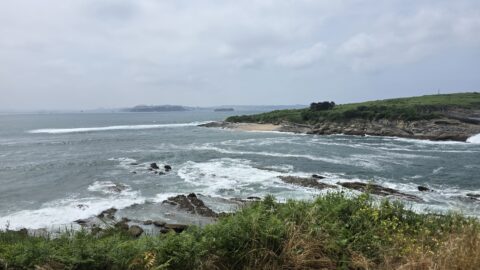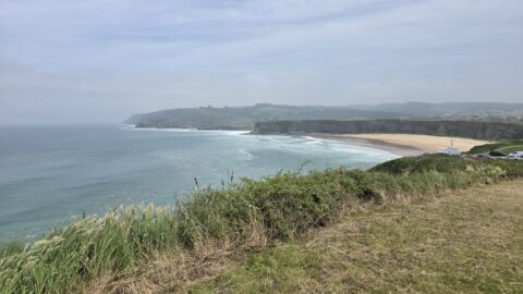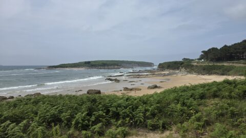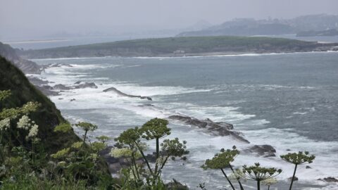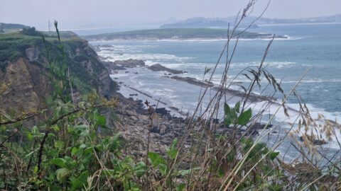 Le sentier en haut de falaise nous mème jusqu’au terme de notre étape : le village de Loredo, en face de Santander que nous voyons à travers la brume de l’autre côté de la baie.
