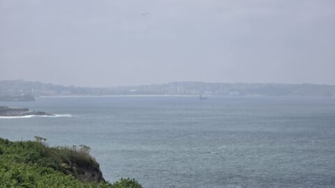Ce matin nous sommes partis de Noja dans le brouillard. En fait, depuis notre départ de Portugalete mardi matin nous n’avons jamais eu de ciel vraiment dégagé mais toujours une curieuse brume plus ou moins dense et nous commençons à nous demander si les fumées des incendies du Canada n’y sont pas pour quelque chose.