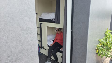 Ce soir nous dormons au « Plea Beach House », un curieux mélange d’hôtel et d’auberge de jeunesse pour surfeurs (et accessoirement pour pèlerins). et notre chambre ressemble à une cabine de bateau !