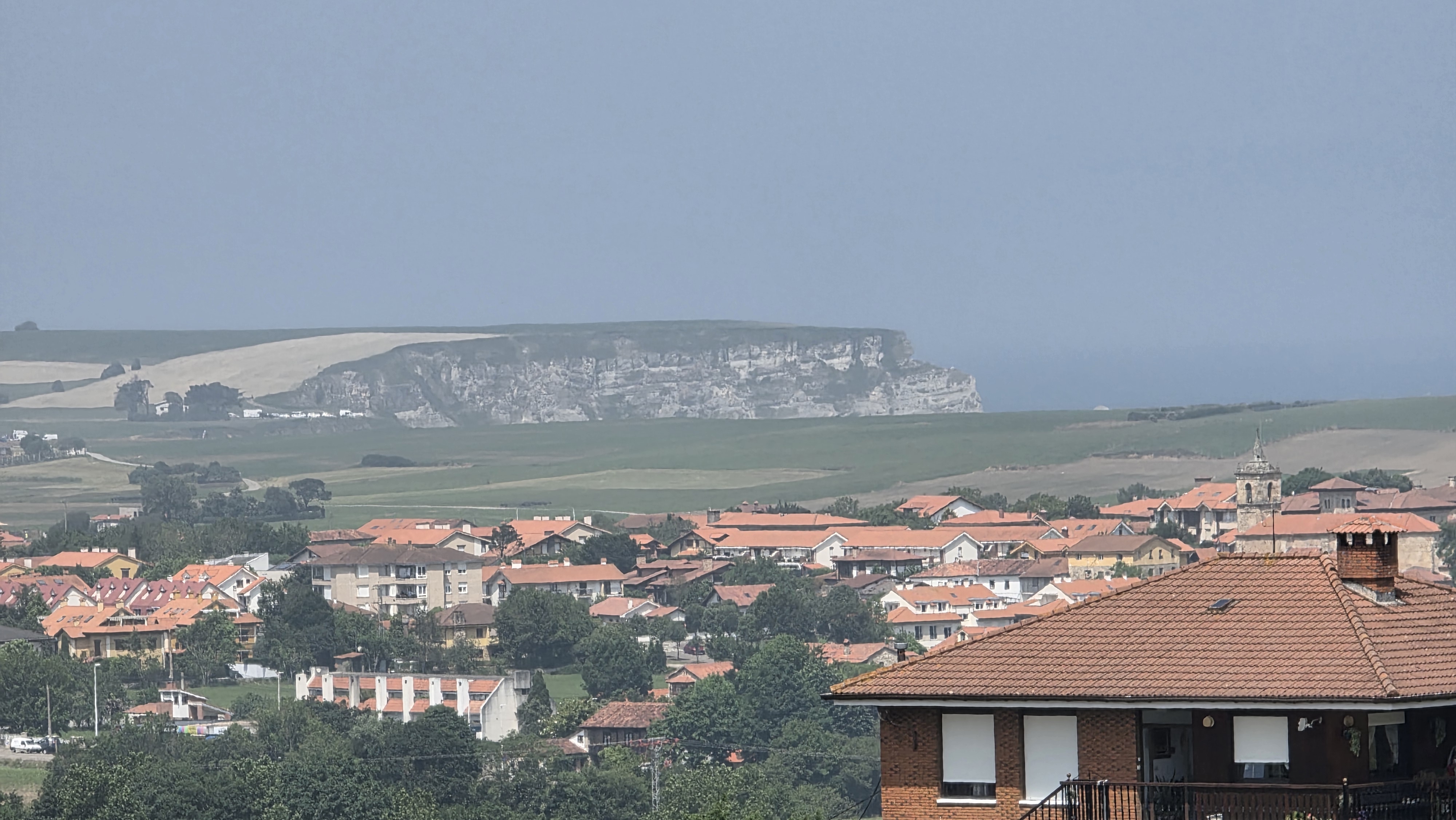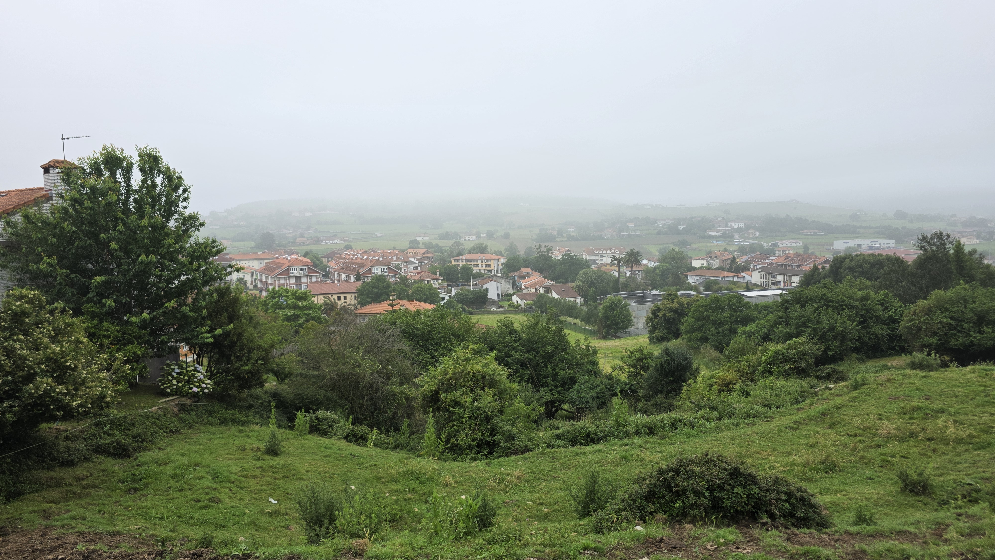Ce matin nous sommes partis de Noja dans le brouillard. En fait, depuis notre départ de Portugalete mardi matin nous n’avons jamais eu de ciel vraiment dégagé mais toujours une curieuse brume plus ou moins dense et nous commençons à nous demander si les fumées des incendies du Canada n’y sont pas pour quelque chose.