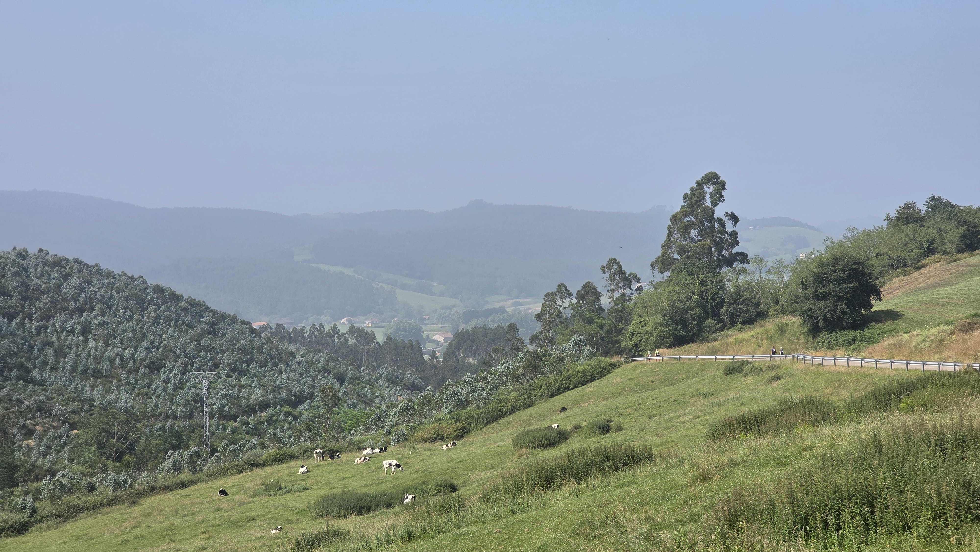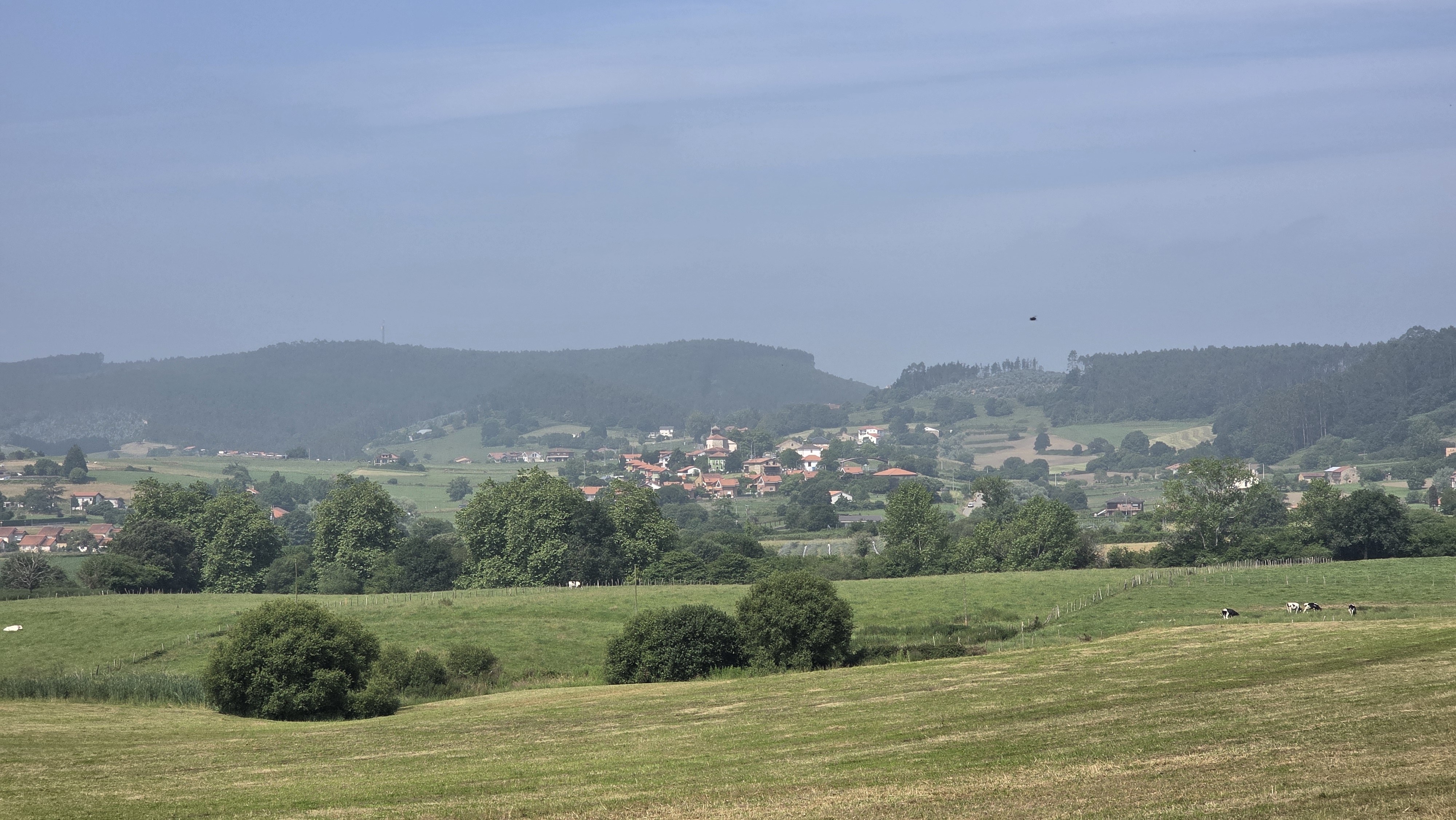 Le Camino del Norte prend ensuite un peu de hauteur, sur de petites routes au milieu de collines. Beaucoup de pèlerins s’arrêtent au village de Güesme mais nous avons préféré continuer pour nous ménager une étape plus courte demain.