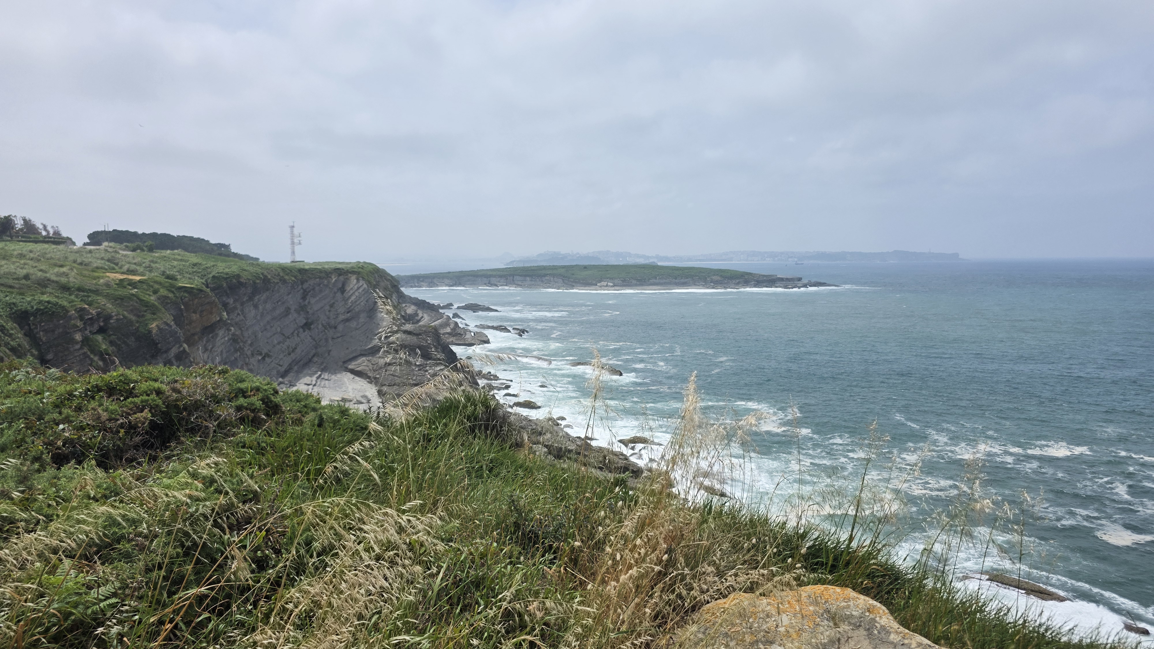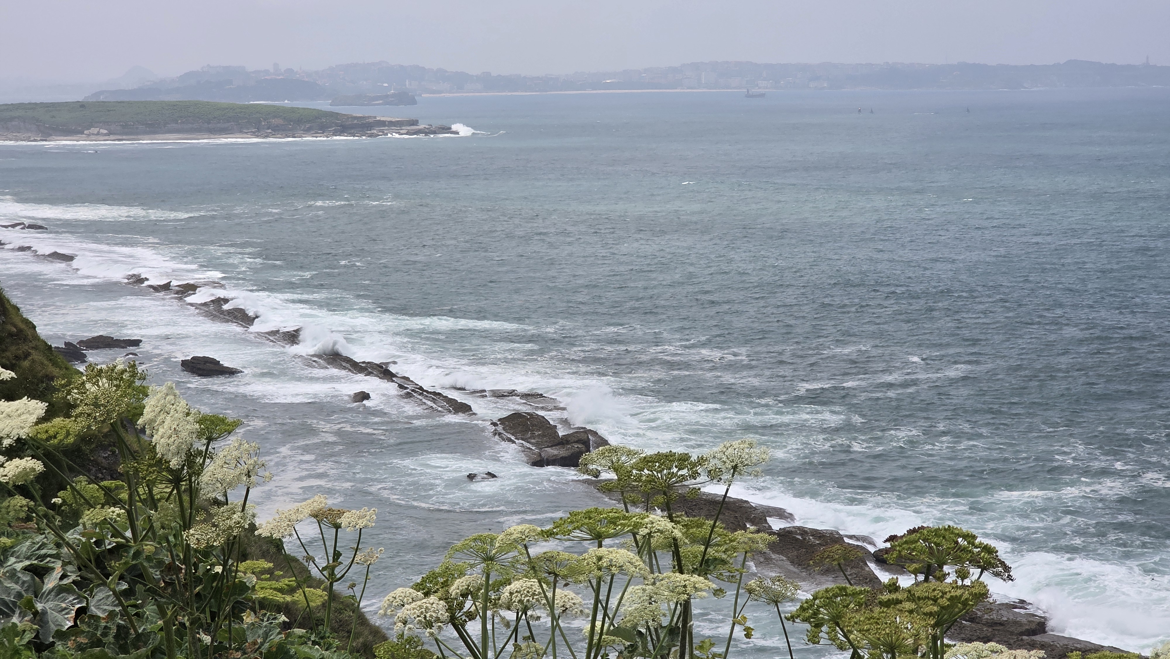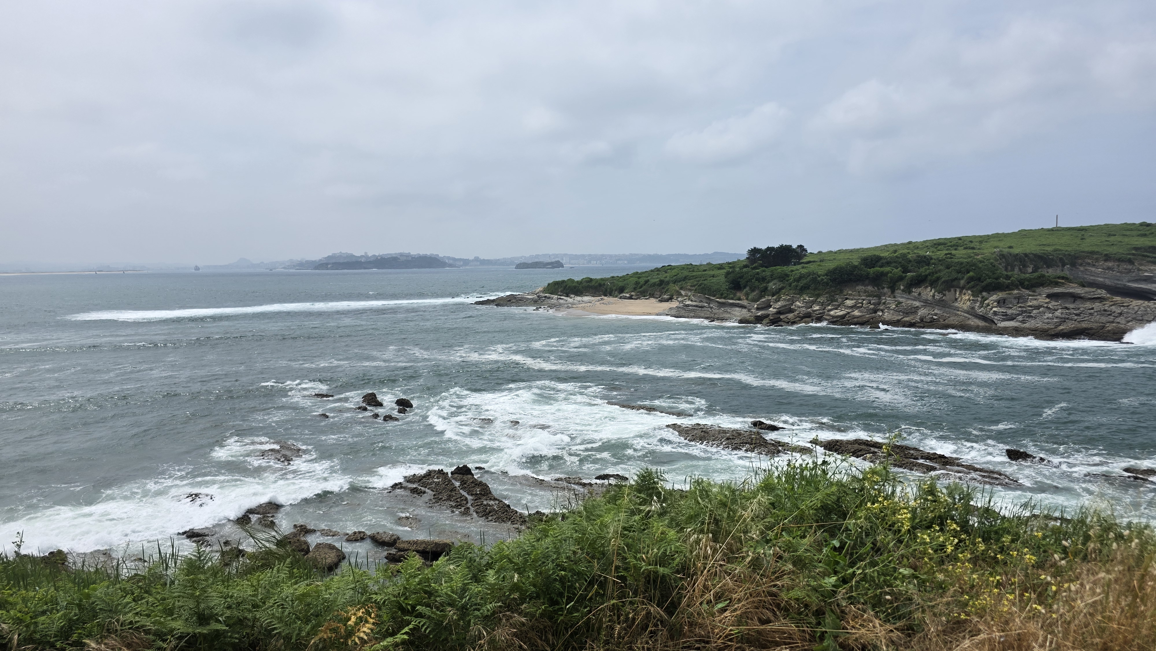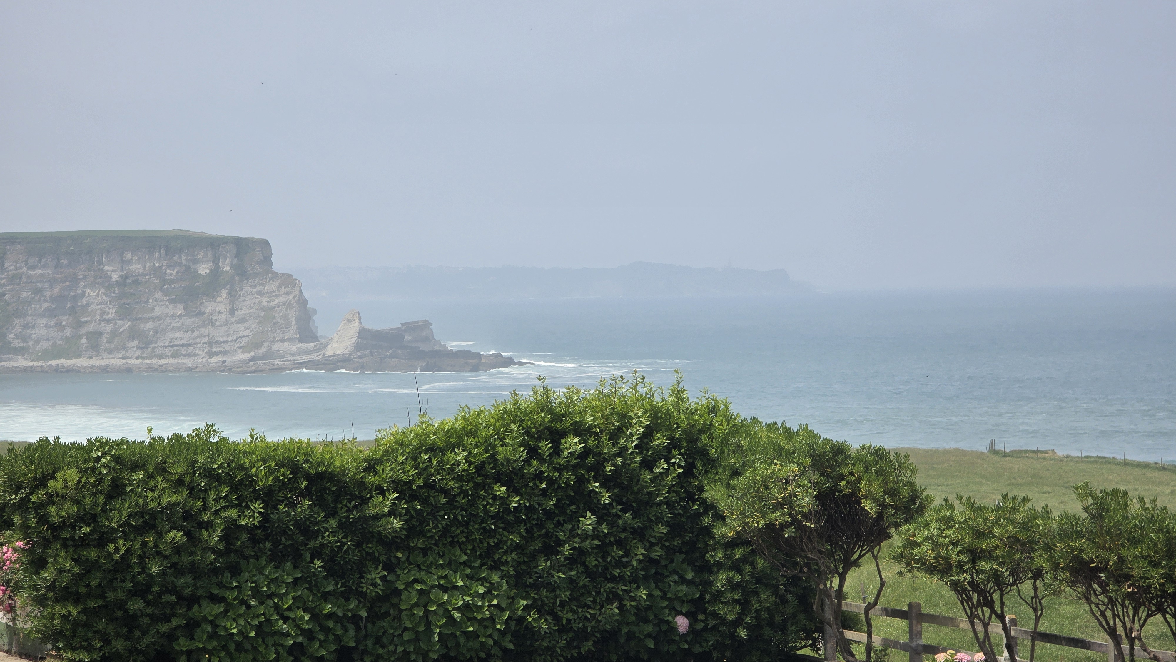 Le sentier en haut de falaise nous mème jusqu’au terme de notre étape : le village de Loredo, en face de Santander que nous voyons à travers la brume de l’autre côté de la baie.