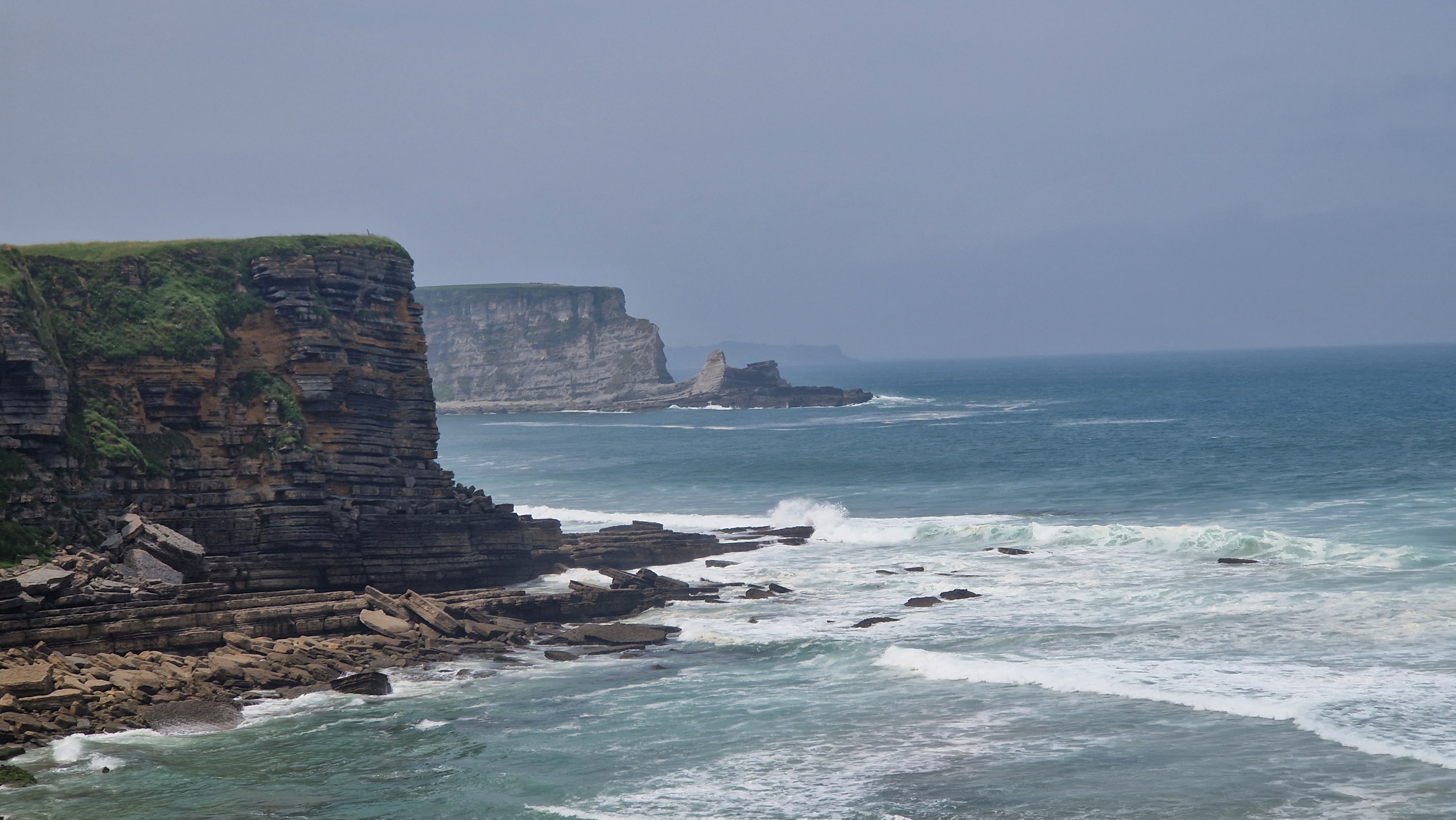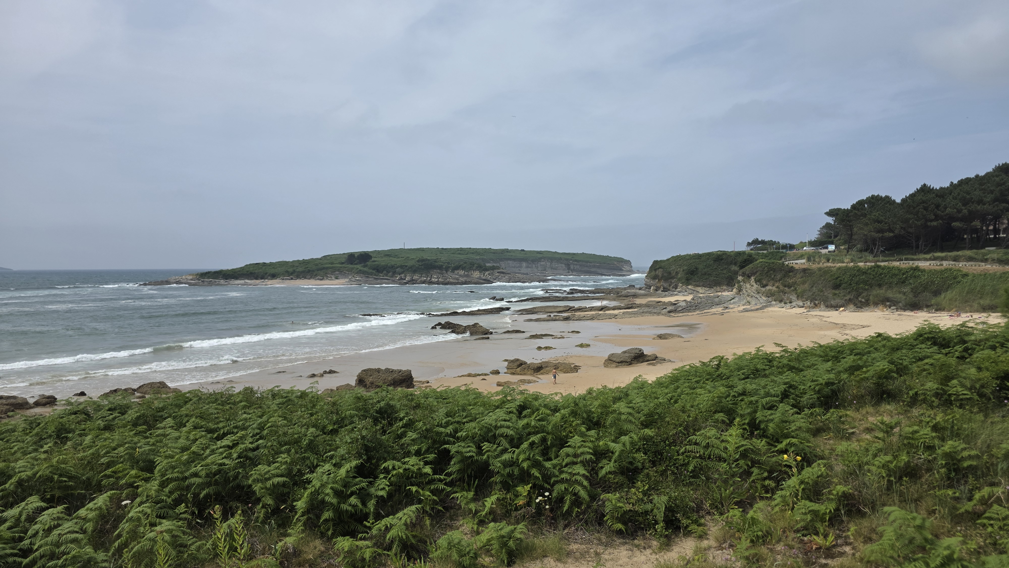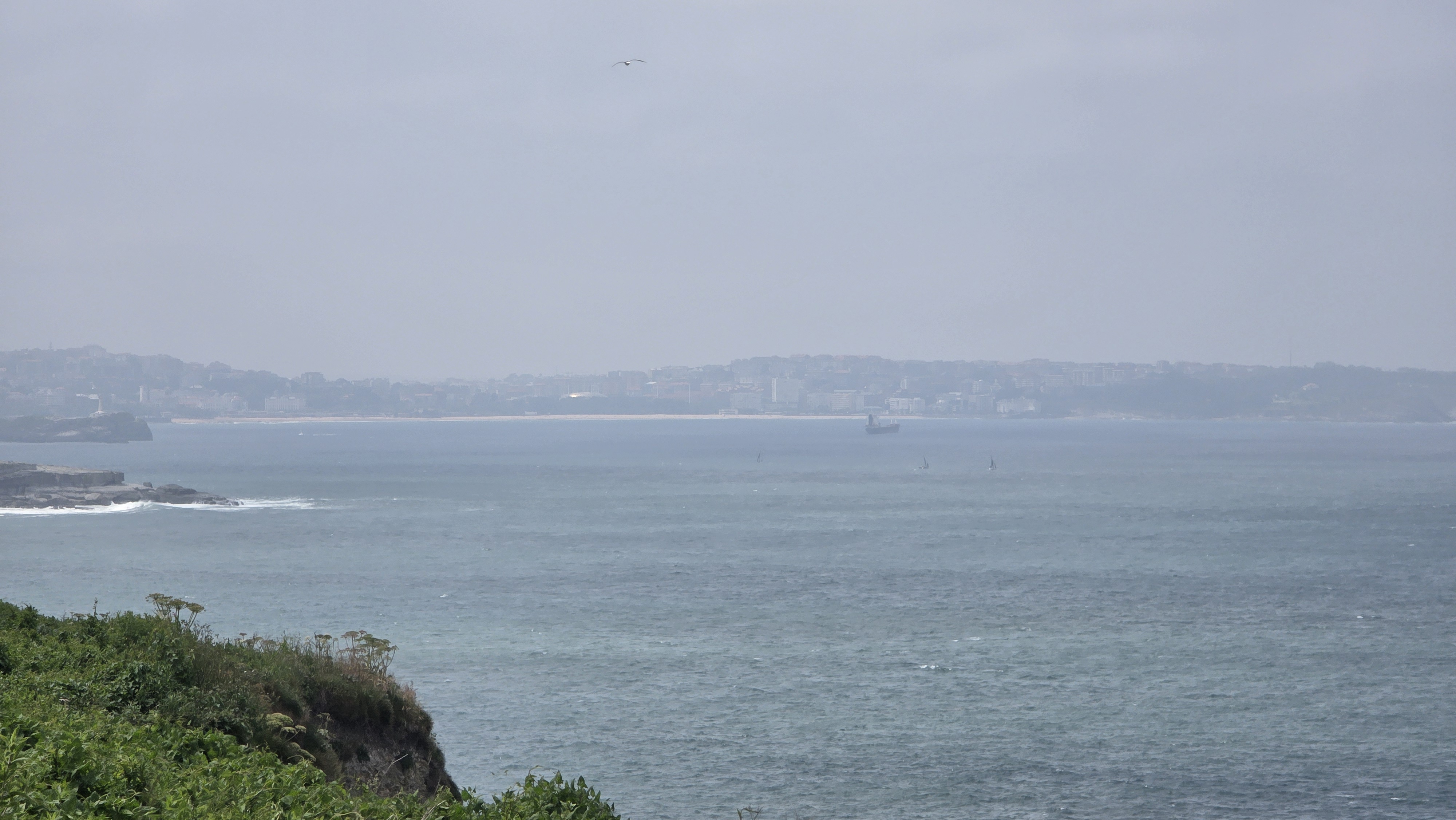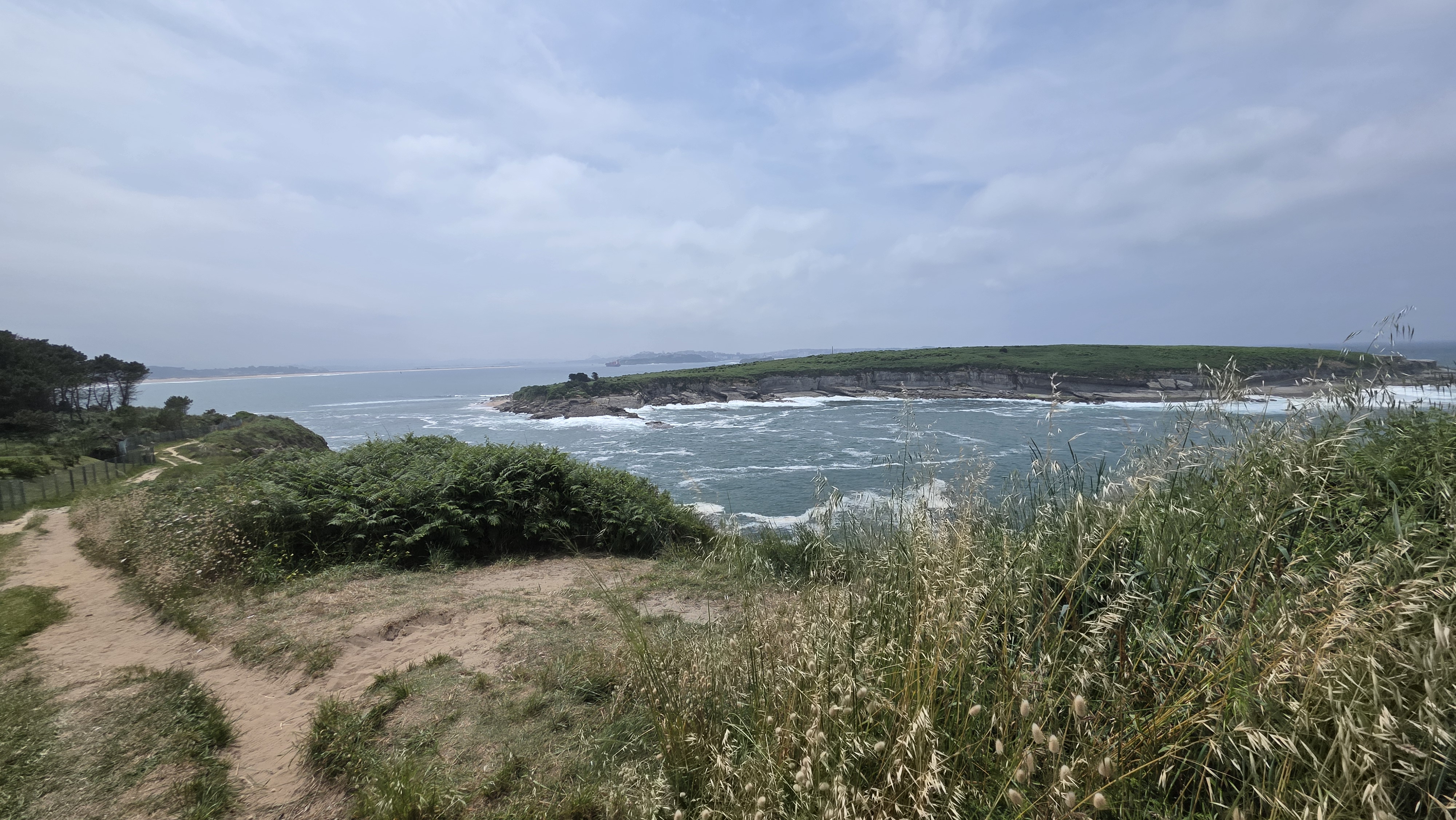 Le sentier en haut de falaise nous mème jusqu’au terme de notre étape : le village de Loredo, en face de Santander que nous voyons à travers la brume de l’autre côté de la baie.