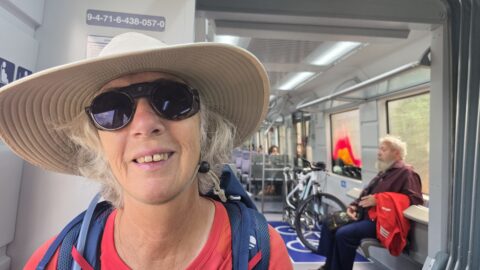 Ce matin au départ c’était très supportable mais ça c’est fortement accentué au bout de quelques kilomètres et à Bezana nous avons fait une pause sur un banc pour examiner la situation.
