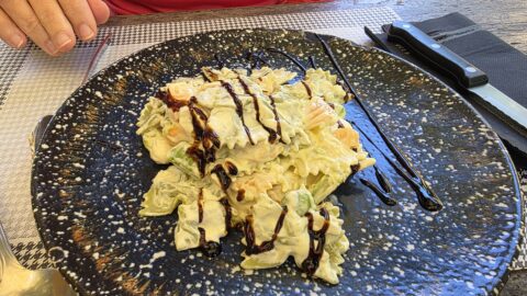 A la gare de Mogro nous avons pris un café dans un restaurant. Une recherche sur internet nous ayant appris que c’était le meilleur du village nous y sommes restés déjeuner.
