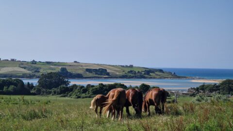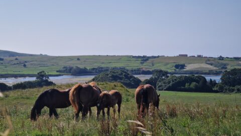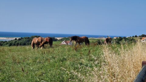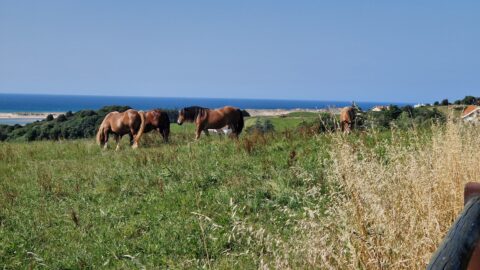 Mogro est en bord de mer et Gisèle est sortie explorer les environs pendant que je laissais mon mollet se reposer.