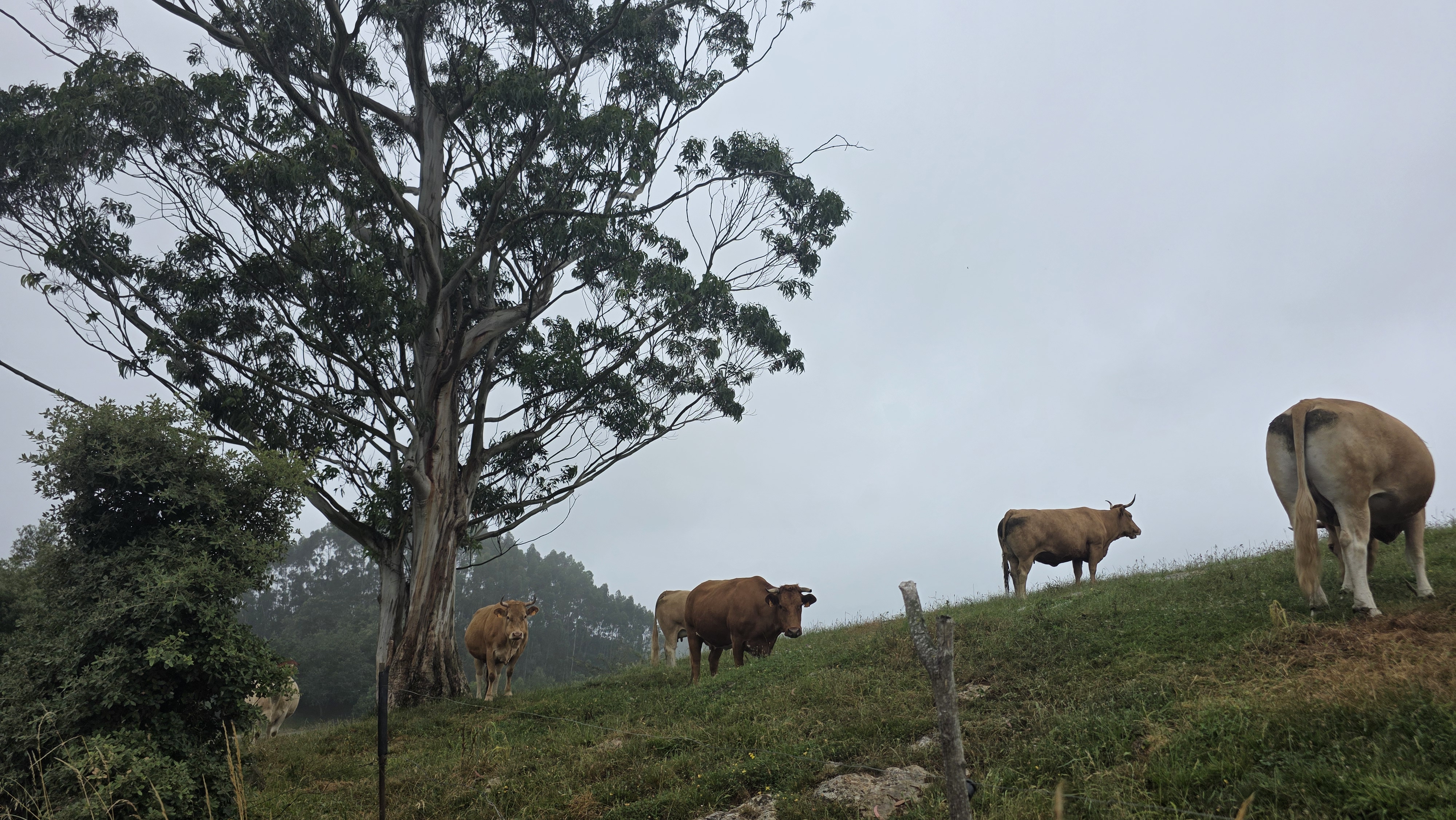 La brume qui nous entoure doit y être pour quelque chose et ce n’est pas encore aujourd’hui que nous verrons les sommets des Picos de Europa pourtant tout proches mais nous préférons cette température pour randonner !