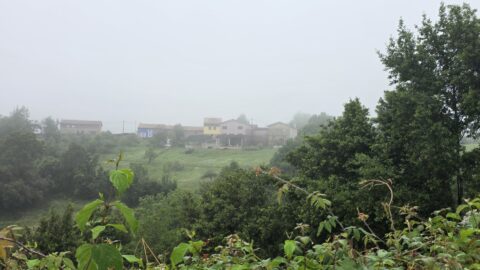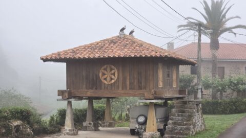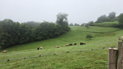 Quand nous sommes partis de Colunga, nous avons eu l’impression qu’on avait branché un grand brumisateur. Il n’avait pas plu mais tout était trempé et on sentait nettement les gouttelettes d’eau.