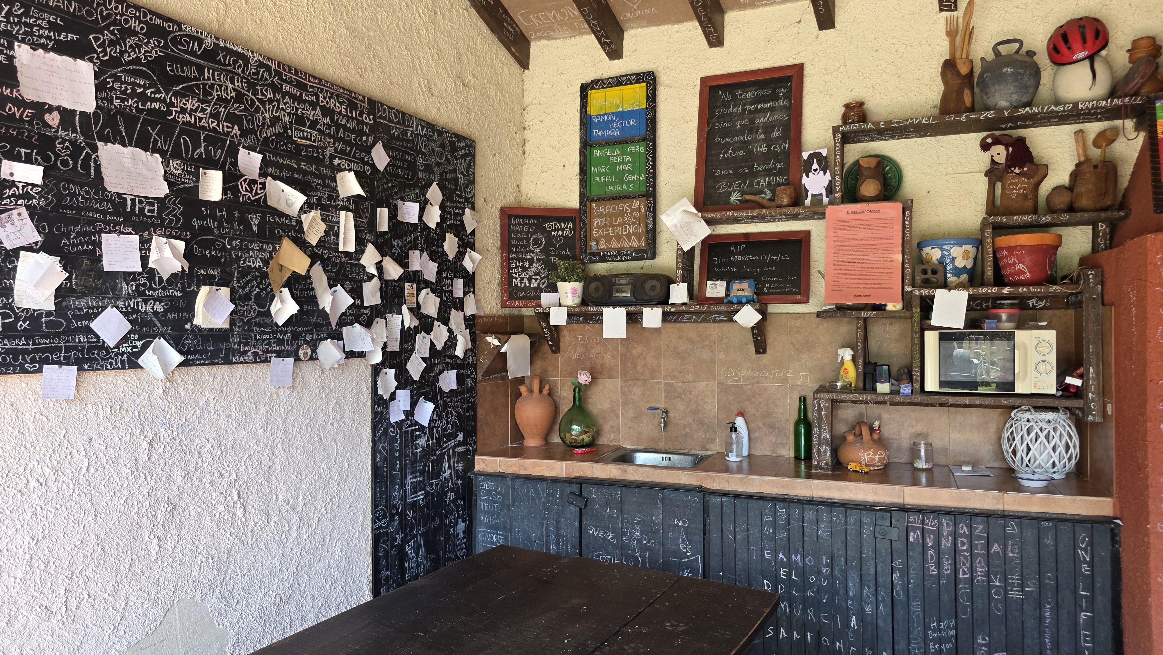 L’endroit n’est « pas un vrai bar » mais met à notre disposition des tables, des chaises, une petite cuisine et un distributeur automatique de produits de première nécessité qui a permis de compléter notre repas par un cappuccino frais et une tablette de chocolat.