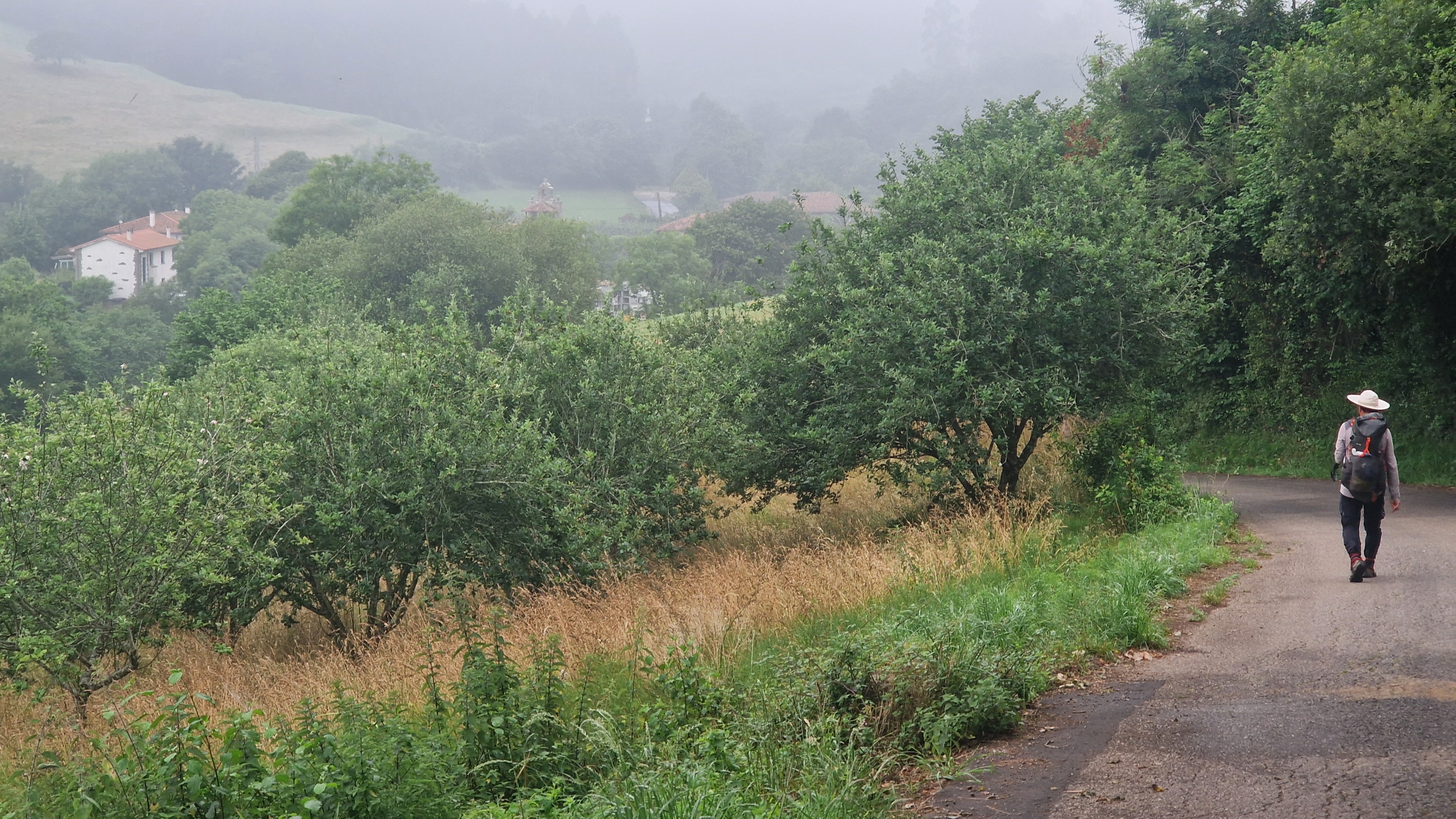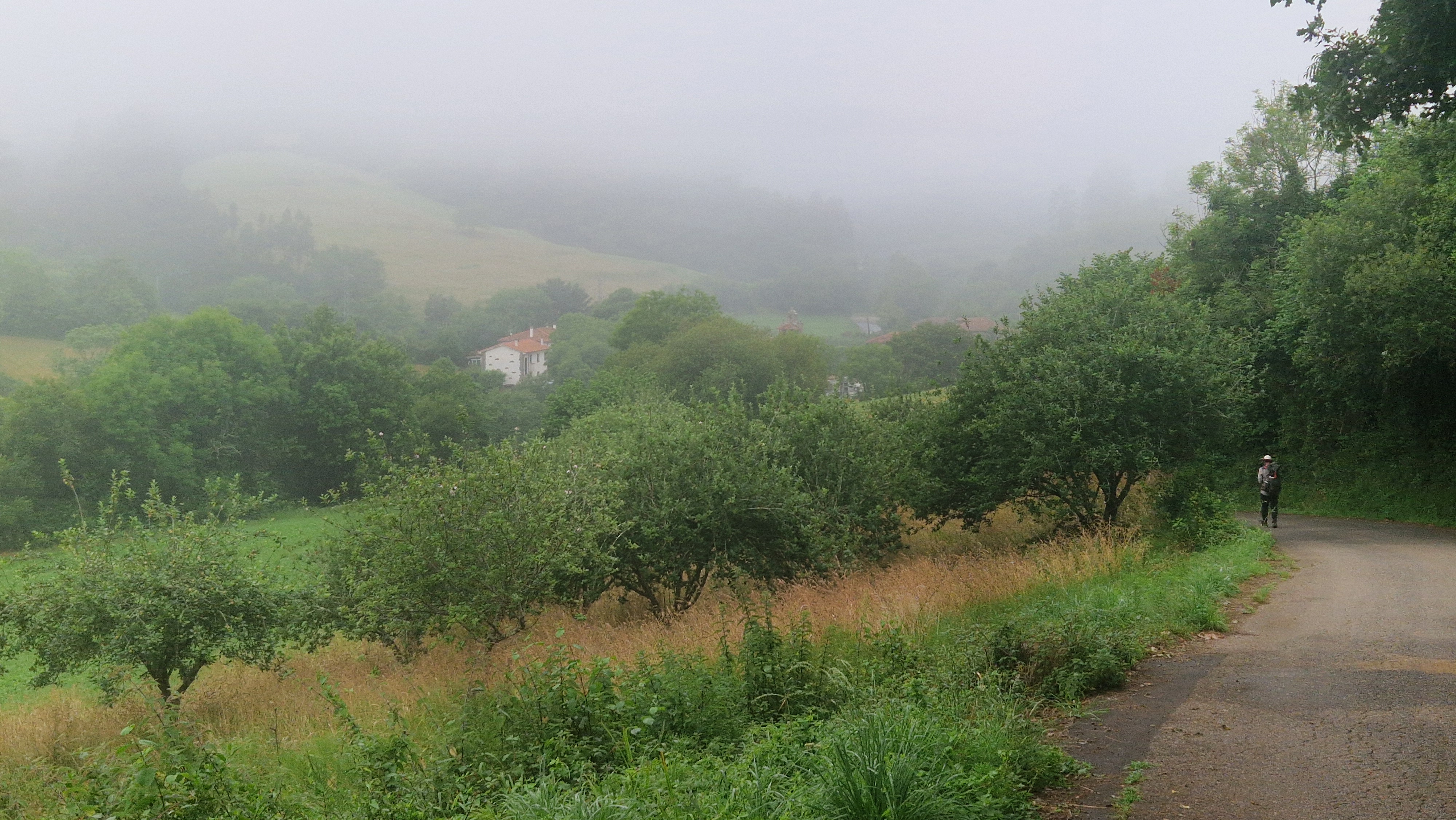 Quand nous sommes partis de Colunga, nous avons eu l’impression qu’on avait branché un grand brumisateur. Il n’avait pas plu mais tout était trempé et on sentait nettement les gouttelettes d’eau.