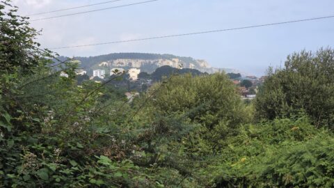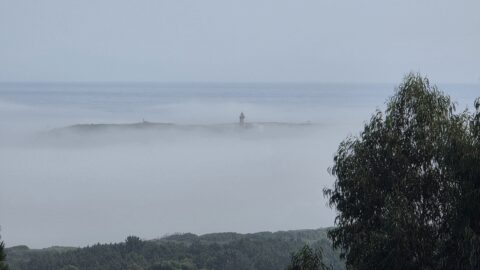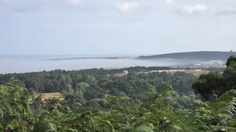 Nous avons quitté Avilès par le Camino del Norte qui nous a fait monter pour nous offrir des vues plongeantes sur le port et les zones industrielles traversés hier après midi et sur le phare d’Avilès qui émergeait du brouillard.