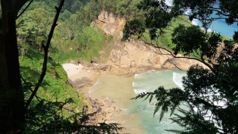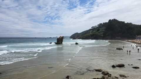 Pour quitter San Esteban de la Pravia, nous avons suivi un sentier côtier municipal qui nous a amené jusqu’à la plage de Aguilar, très fréquentée ce premier dimanche de juillet.