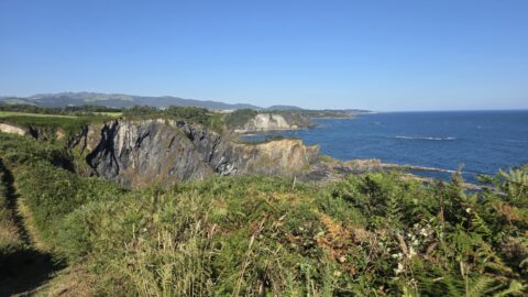 La côte a changé et nous retrouvons un profil de grand plateau qui se termine par des falaises coupées de « valleuses ». Elle ressemble donc plus à ce que nous avons vu en Cantabrie qu’aux côtes que nous avons suivi jusqu’à présent dans les Asturies.