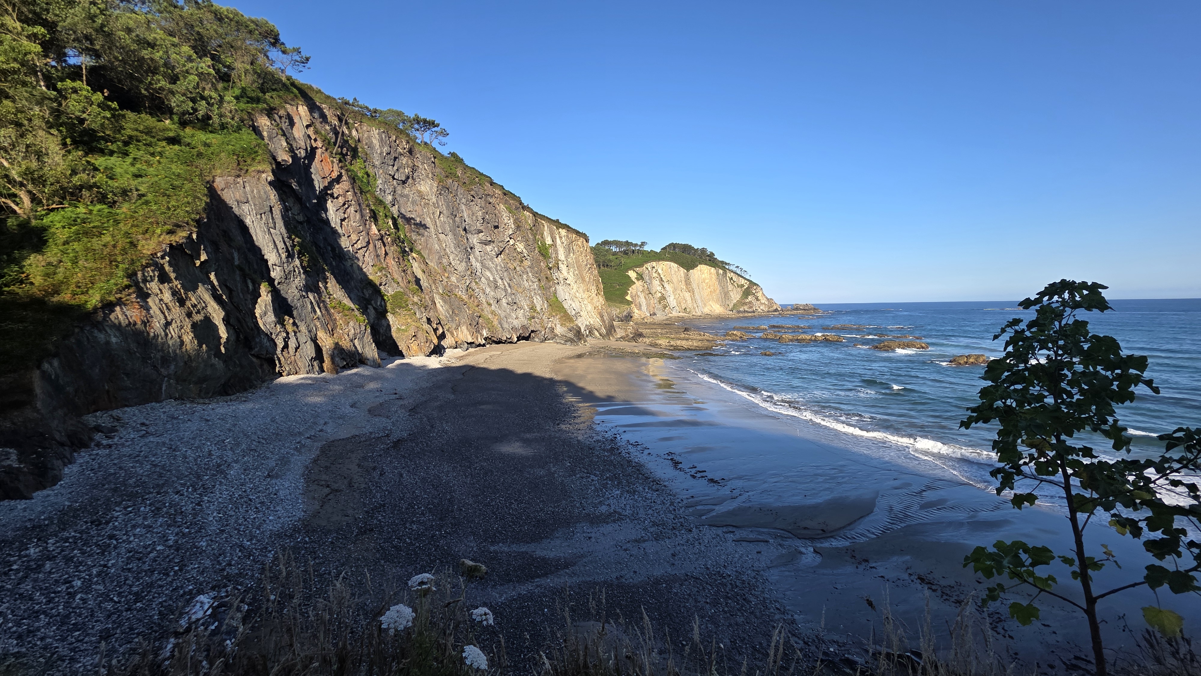La côte a changé et nous retrouvons un profil de grand plateau qui se termine par des falaises coupées de « valleuses ». Elle ressemble donc plus à ce que nous avons vu en Cantabrie qu’aux côtes que nous avons suivi jusqu’à présent dans les Asturies.