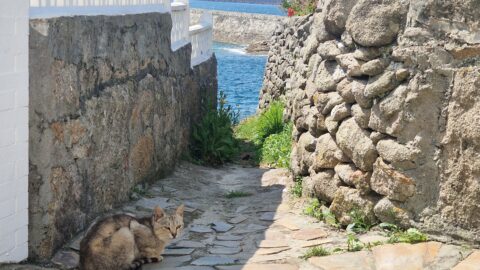 Une étape en train pour aller faire soigner mes pieds au centre de santé de San Cibrao.