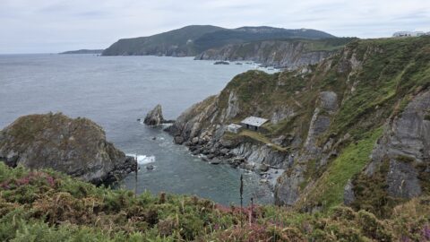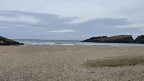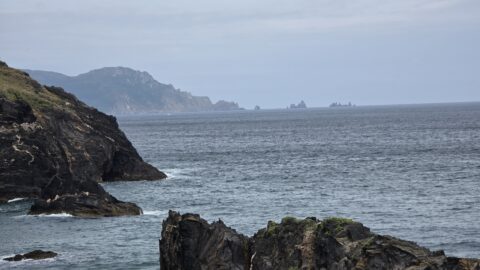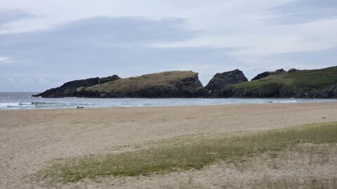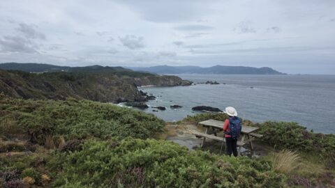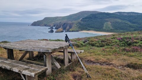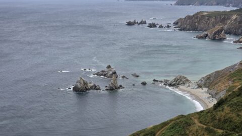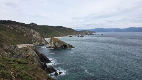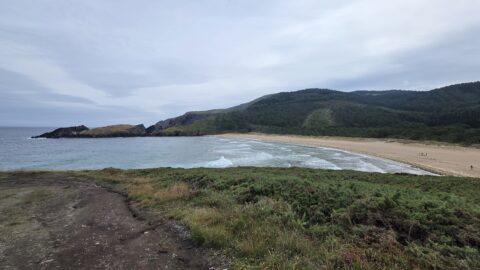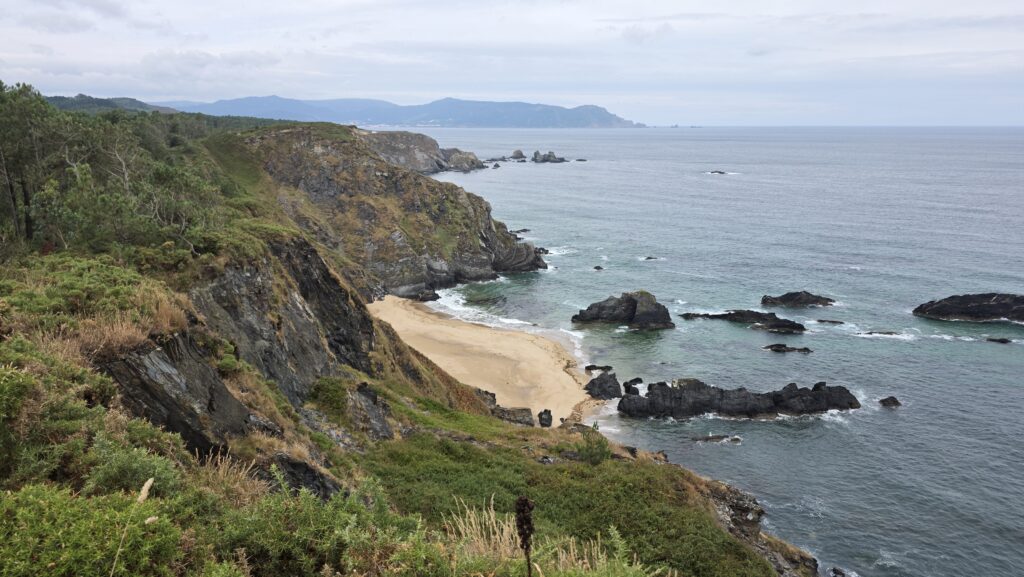 Nous sommes montés au village d’O Barqueiro et sommes redescendus de l’autre côté du cap de la Estaca de Bares vers ce qui était donc notre première plage de l’Océan Atlantique.