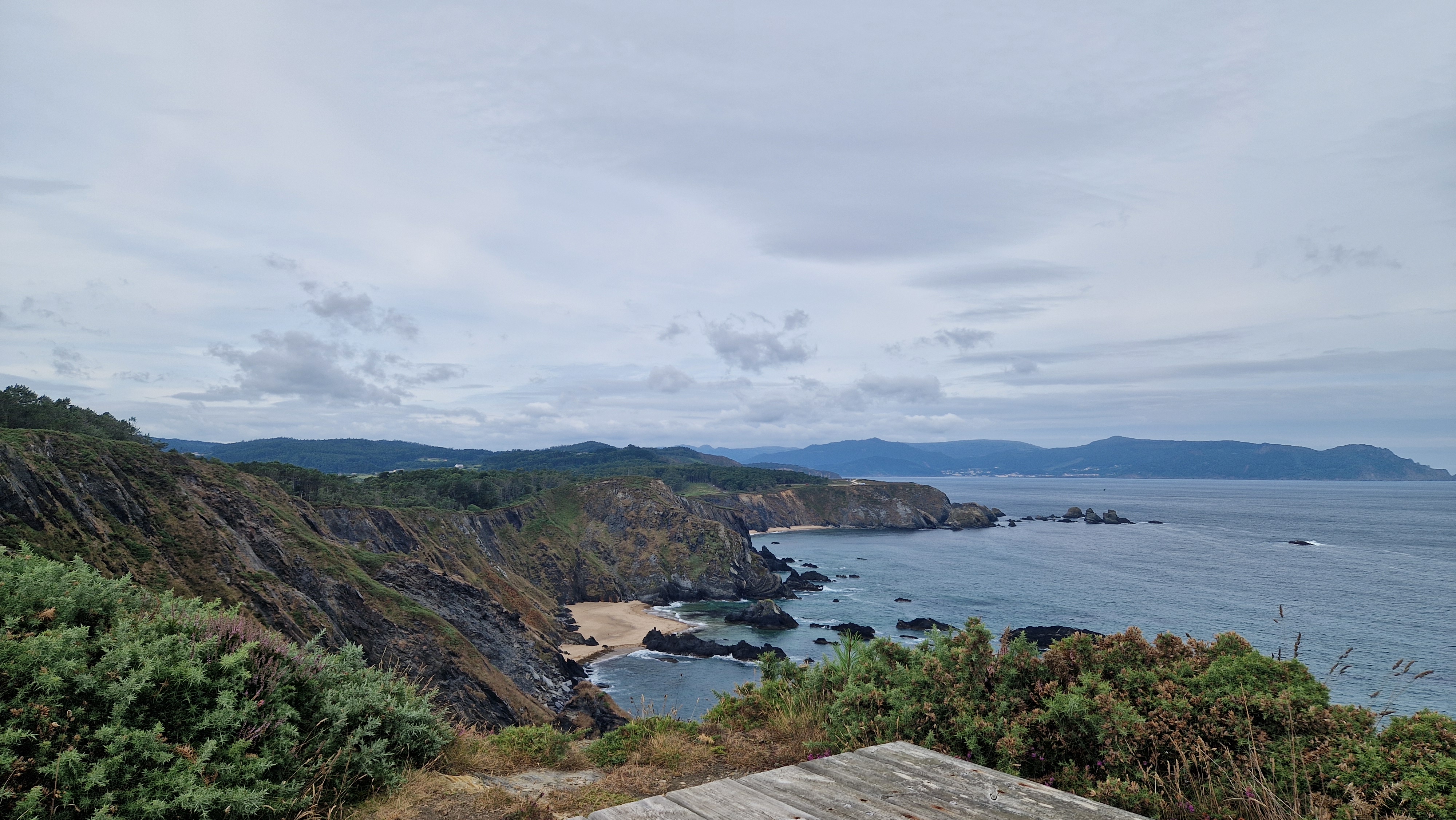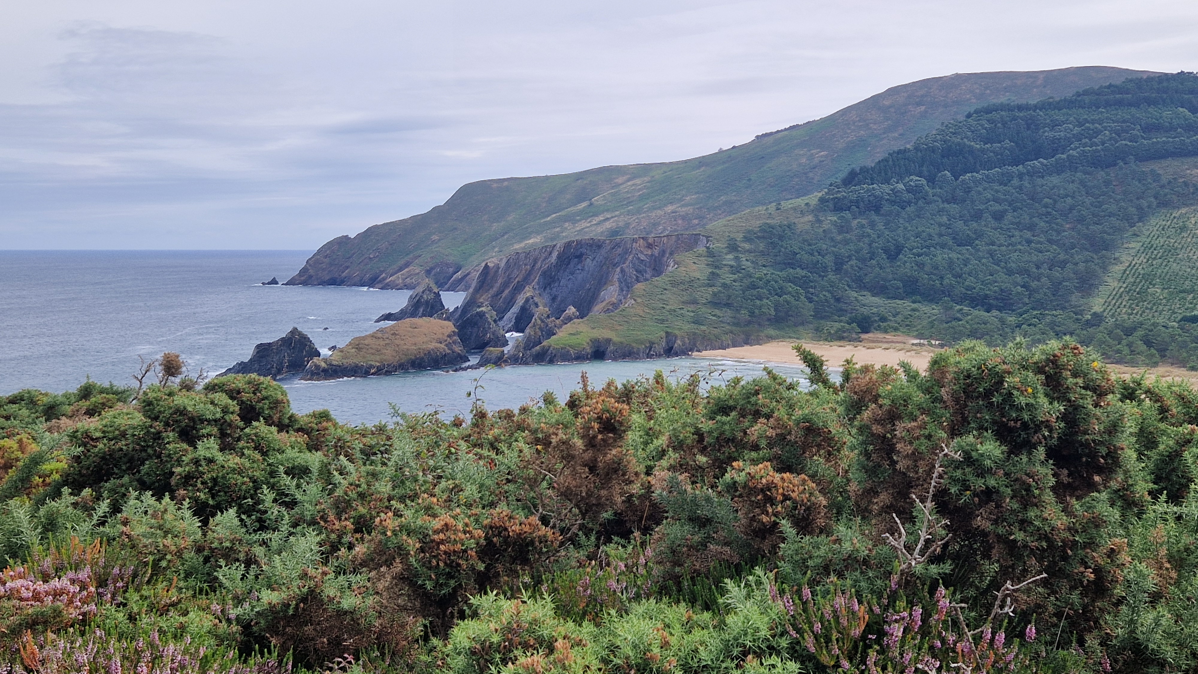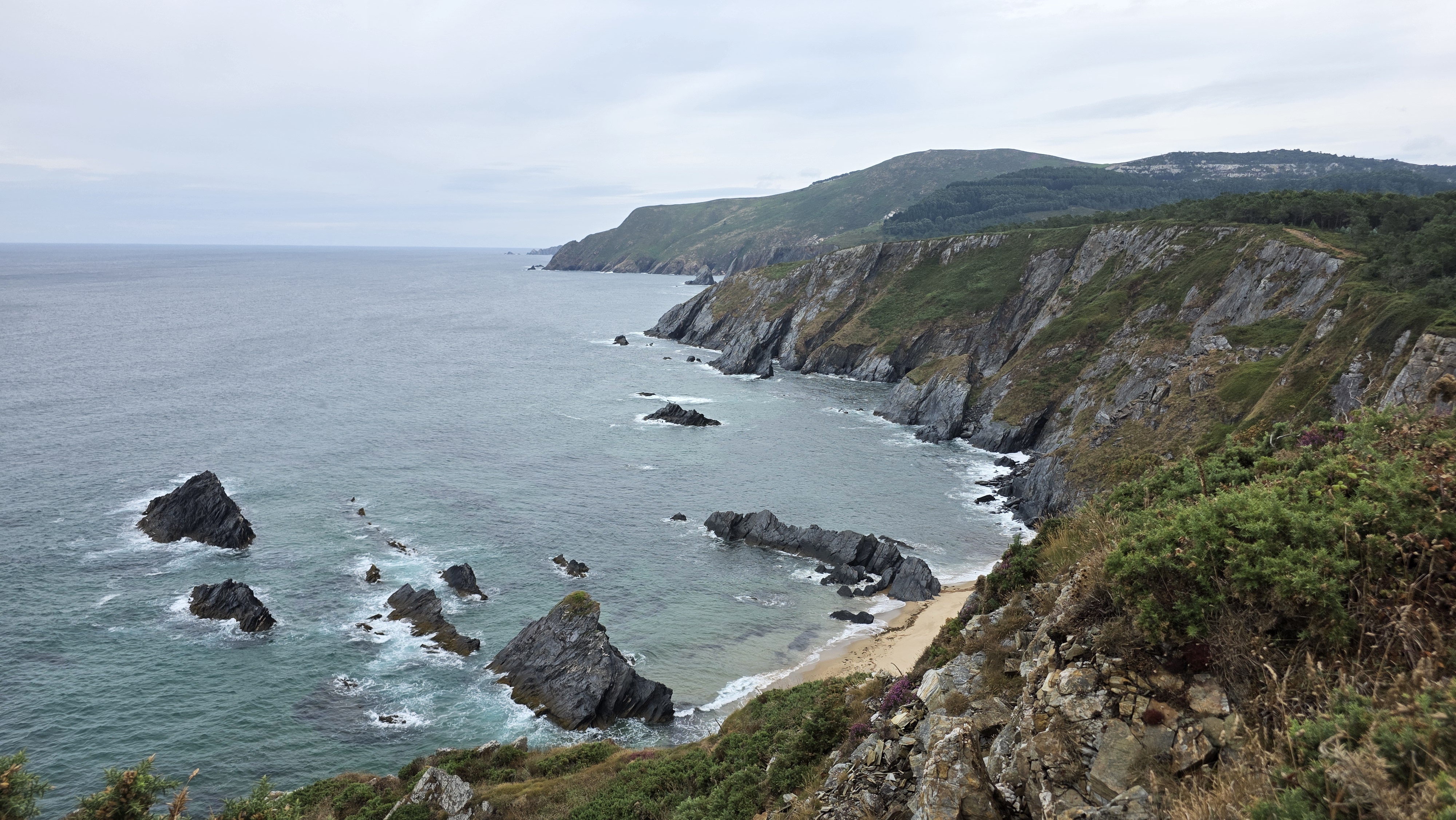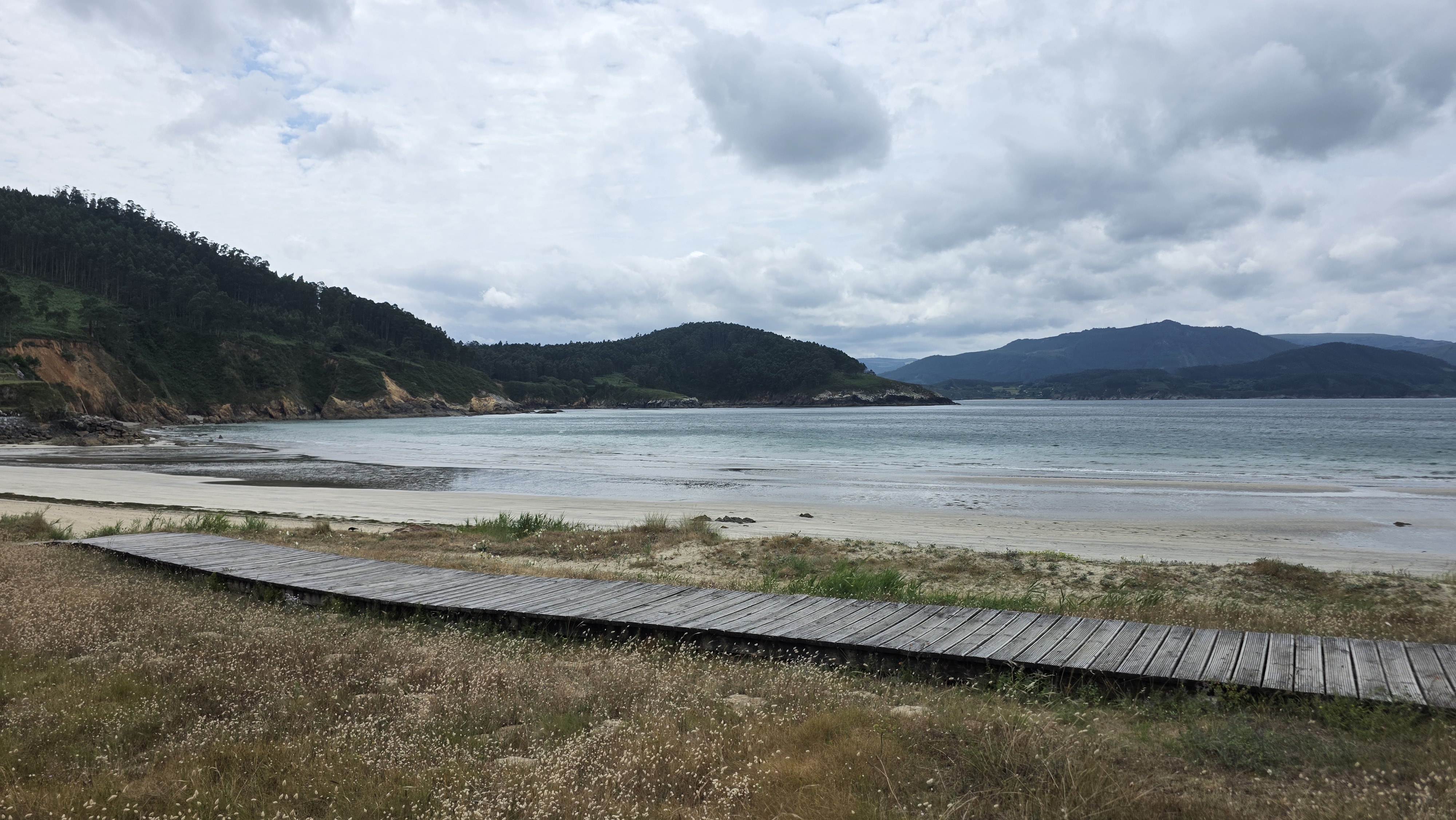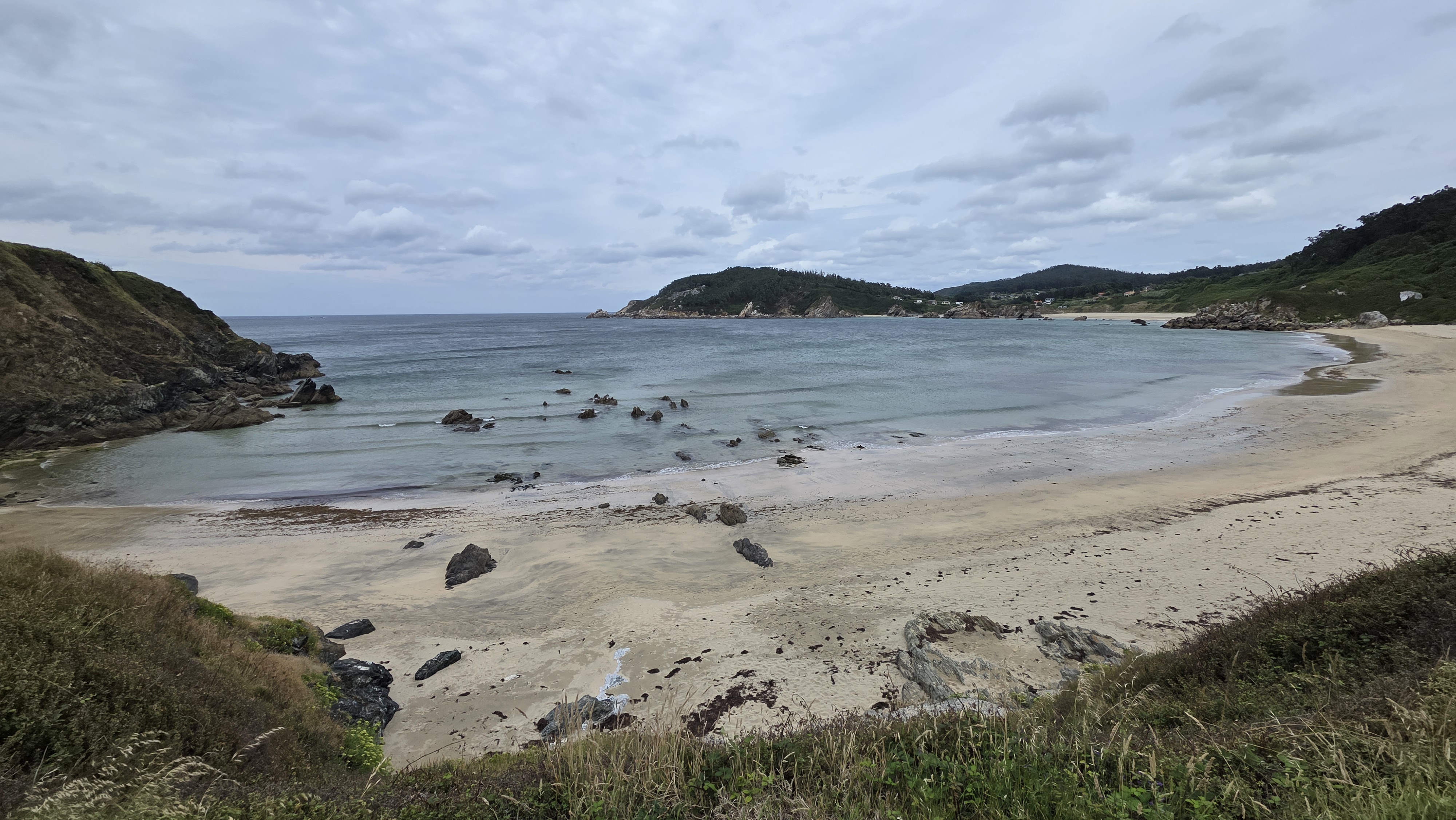 Nous sommes montés au village d’O Barqueiro et sommes redescendus de l’autre côté du cap de la Estaca de Bares vers ce qui était donc notre première plage de l’Océan Atlantique.