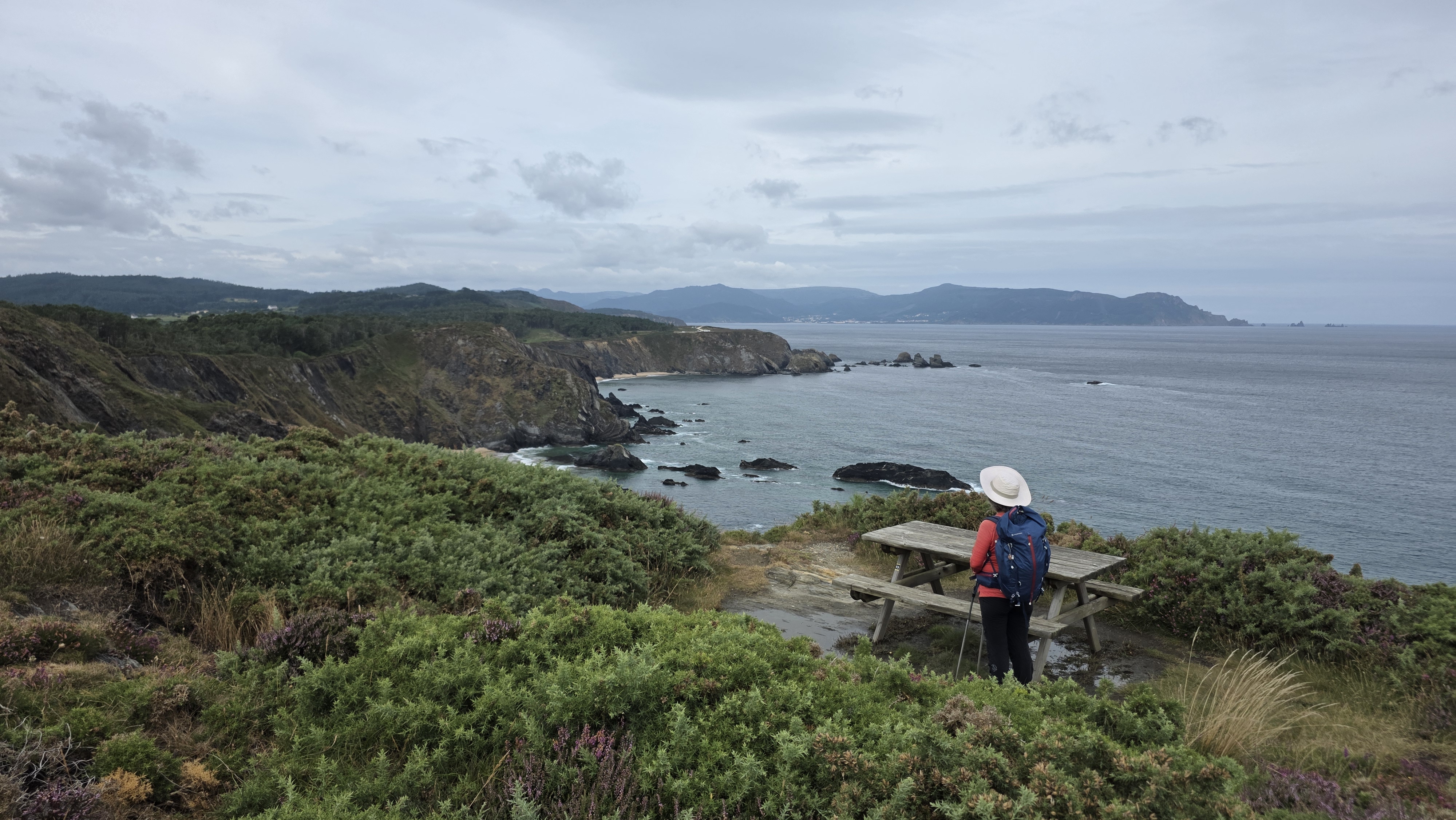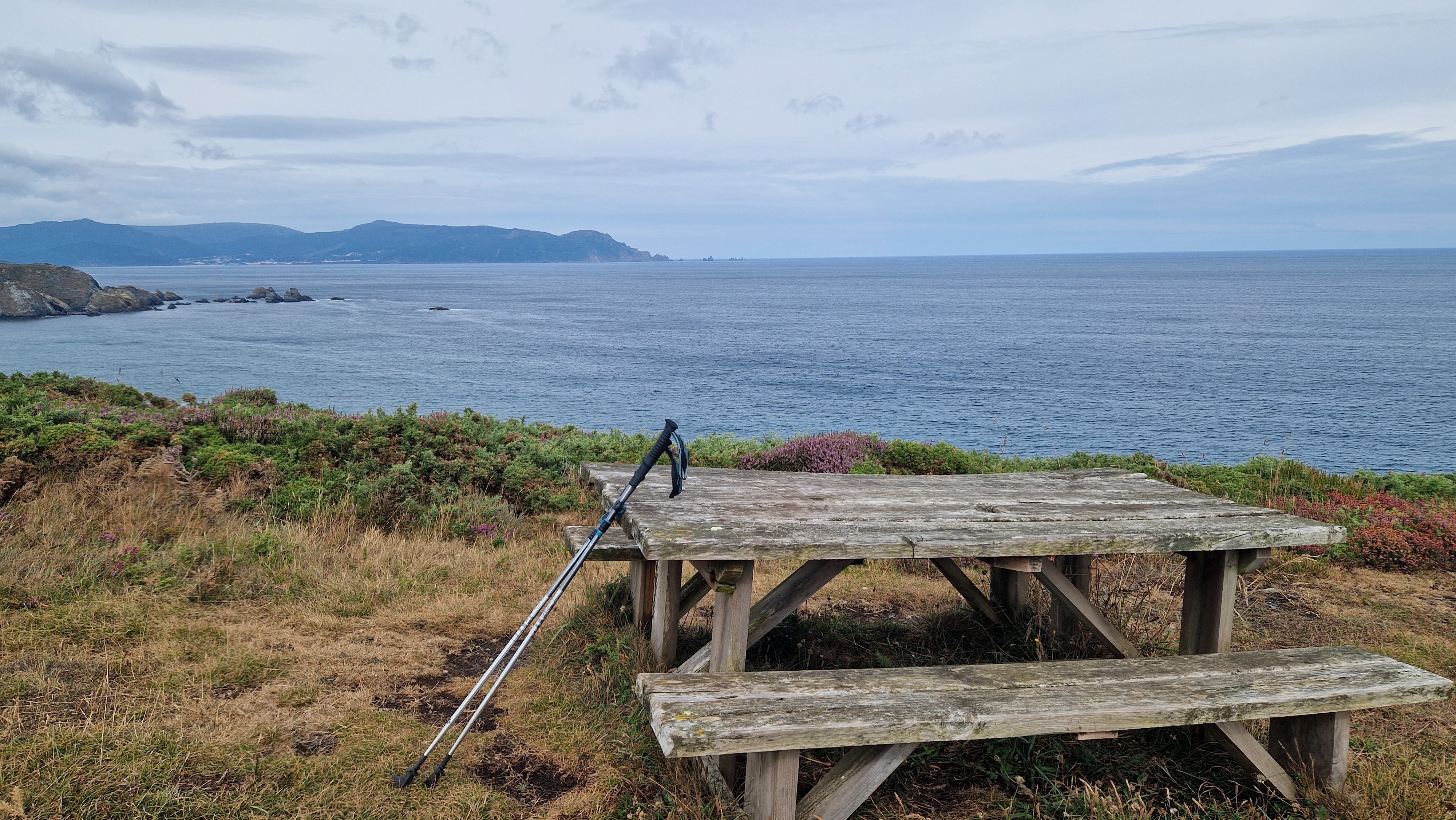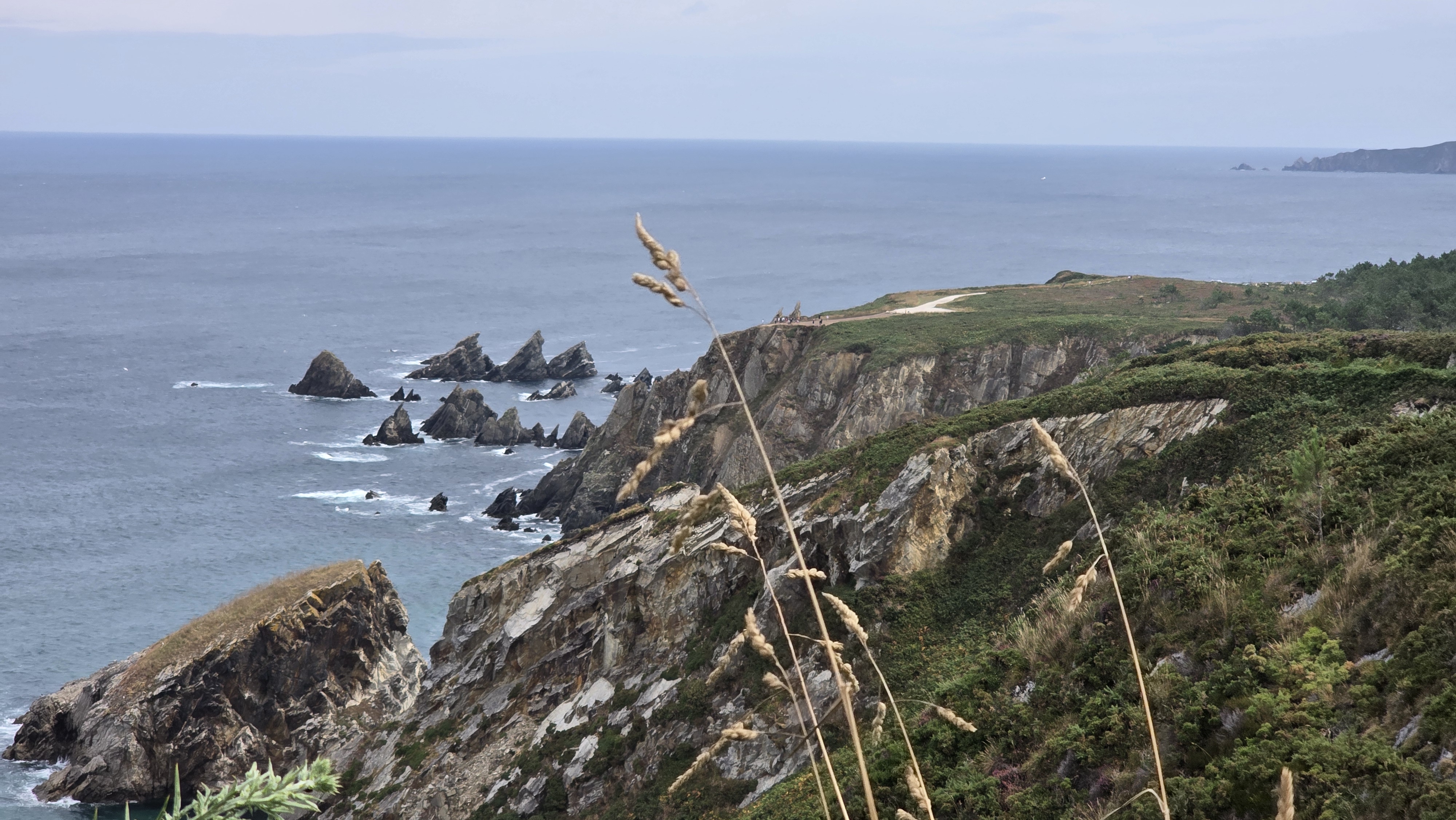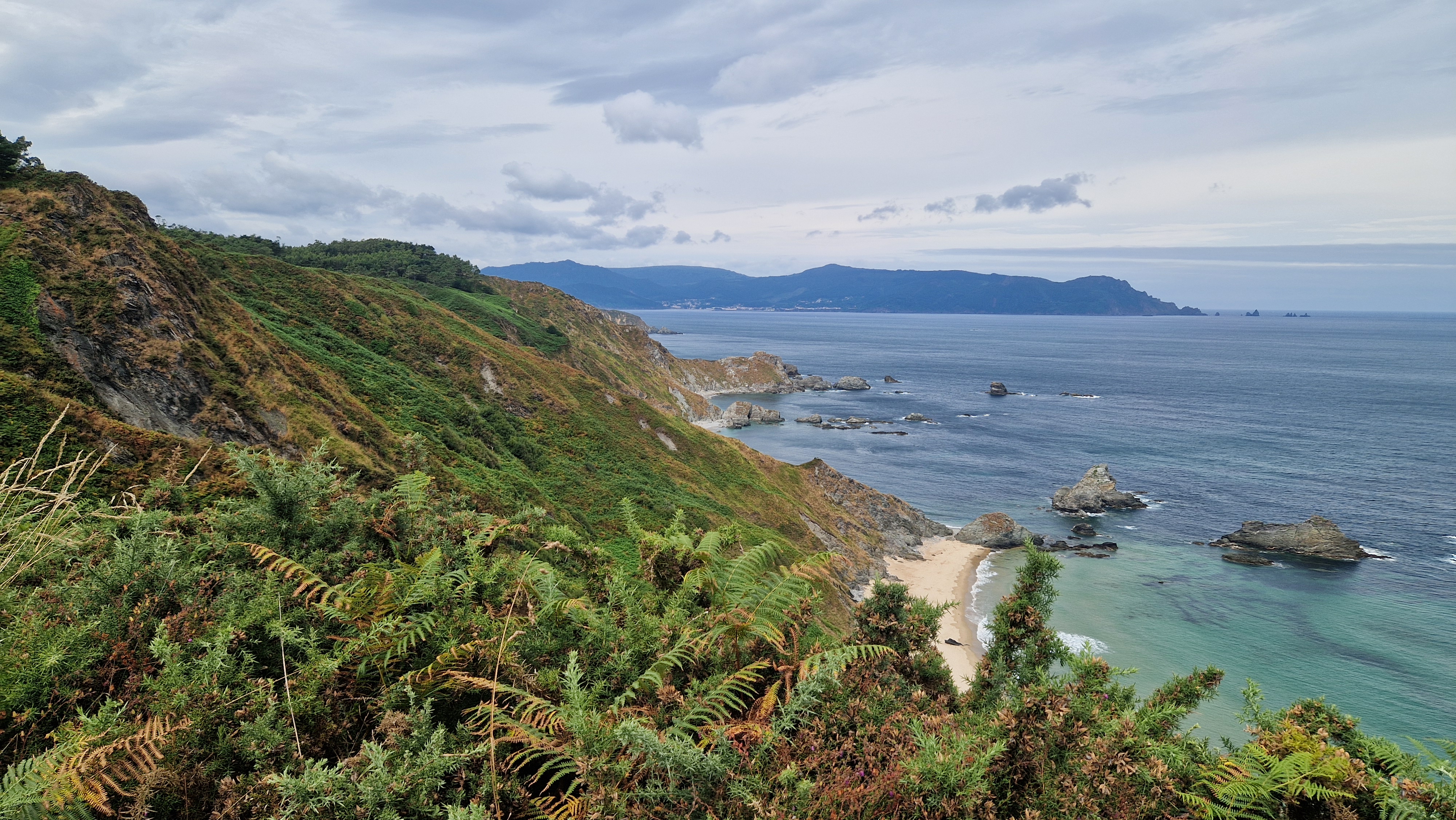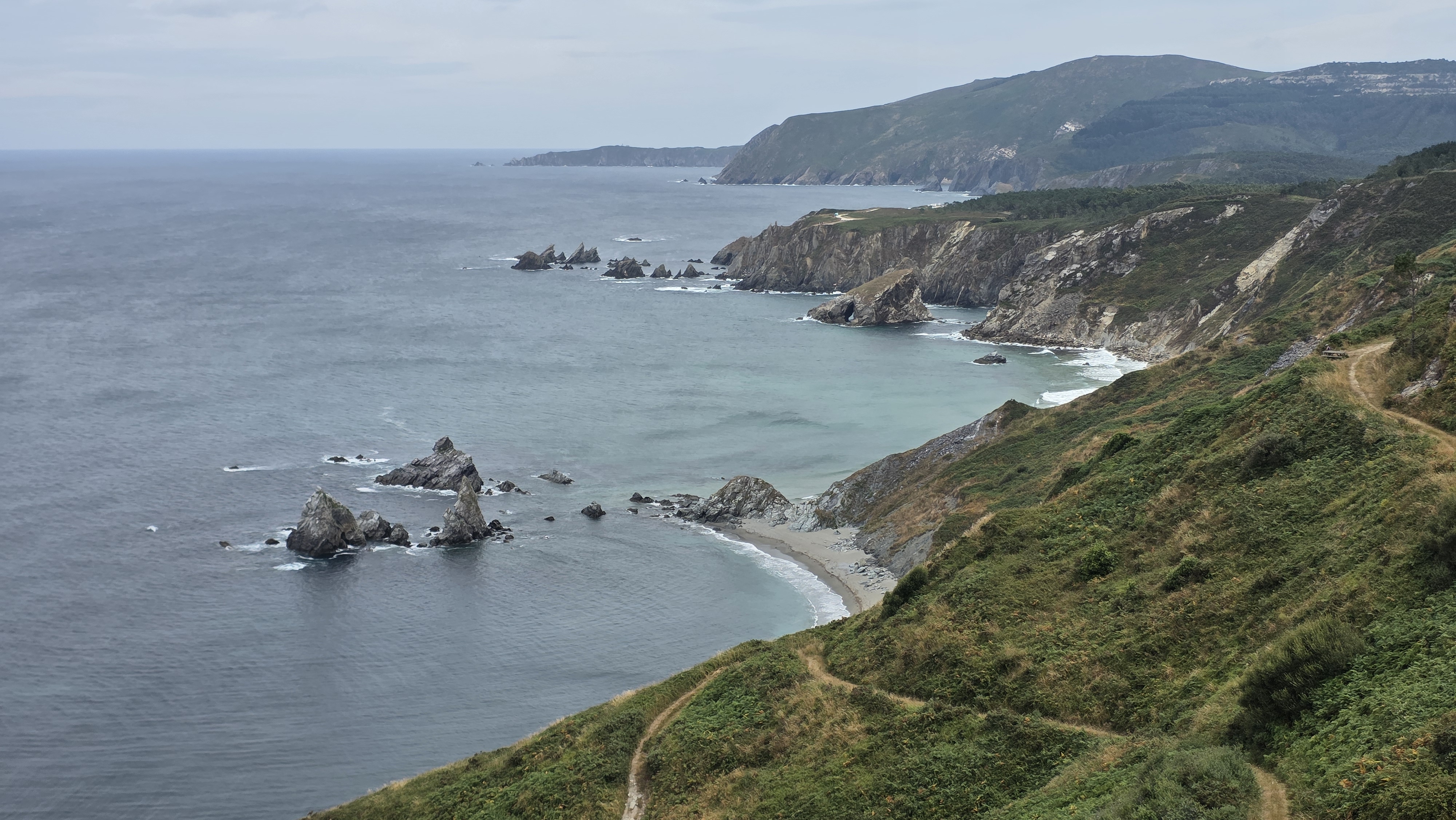 Nous sommes montés au village d’O Barqueiro et sommes redescendus de l’autre côté du cap de la Estaca de Bares vers ce qui était donc notre première plage de l’Océan Atlantique.