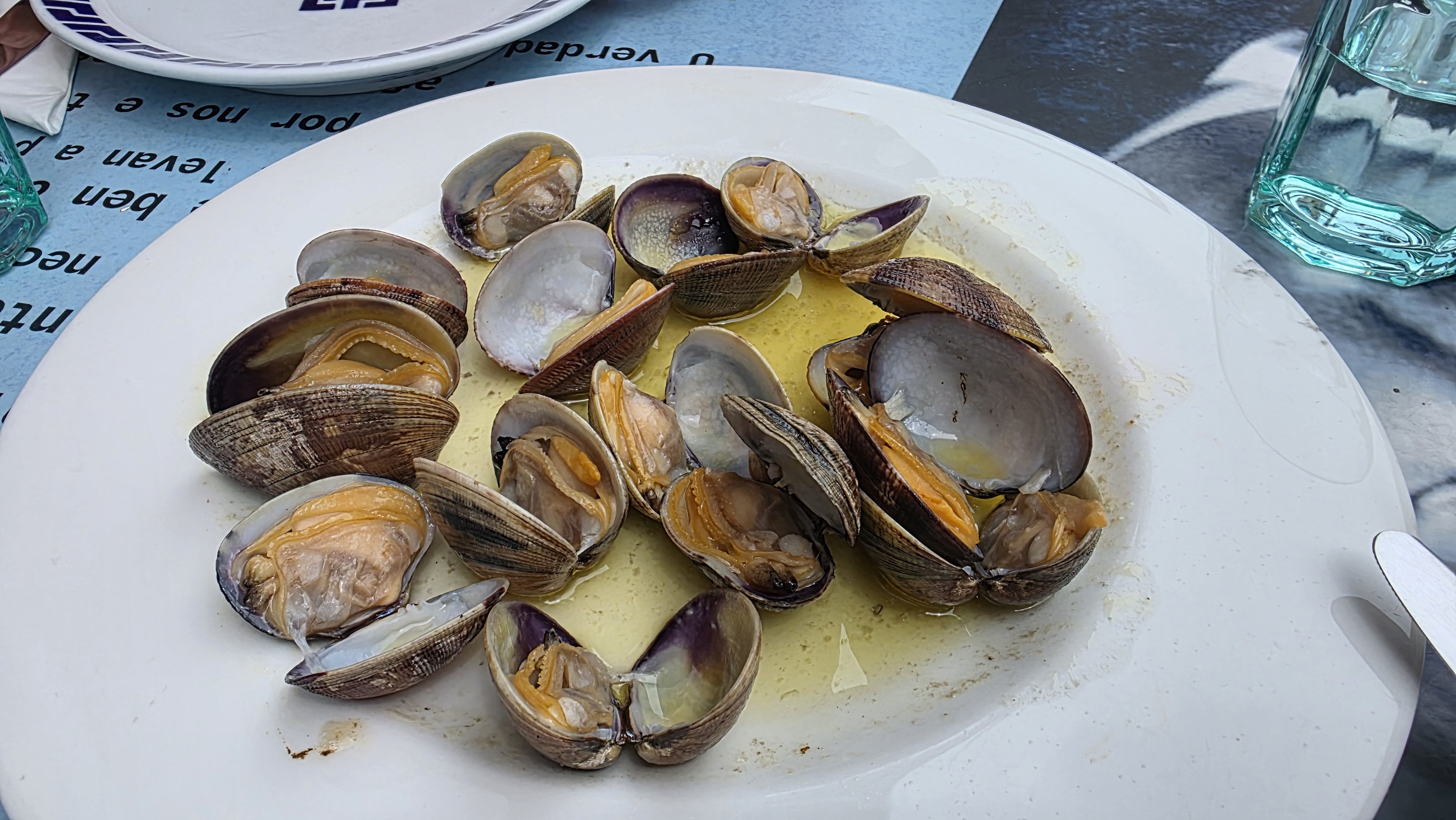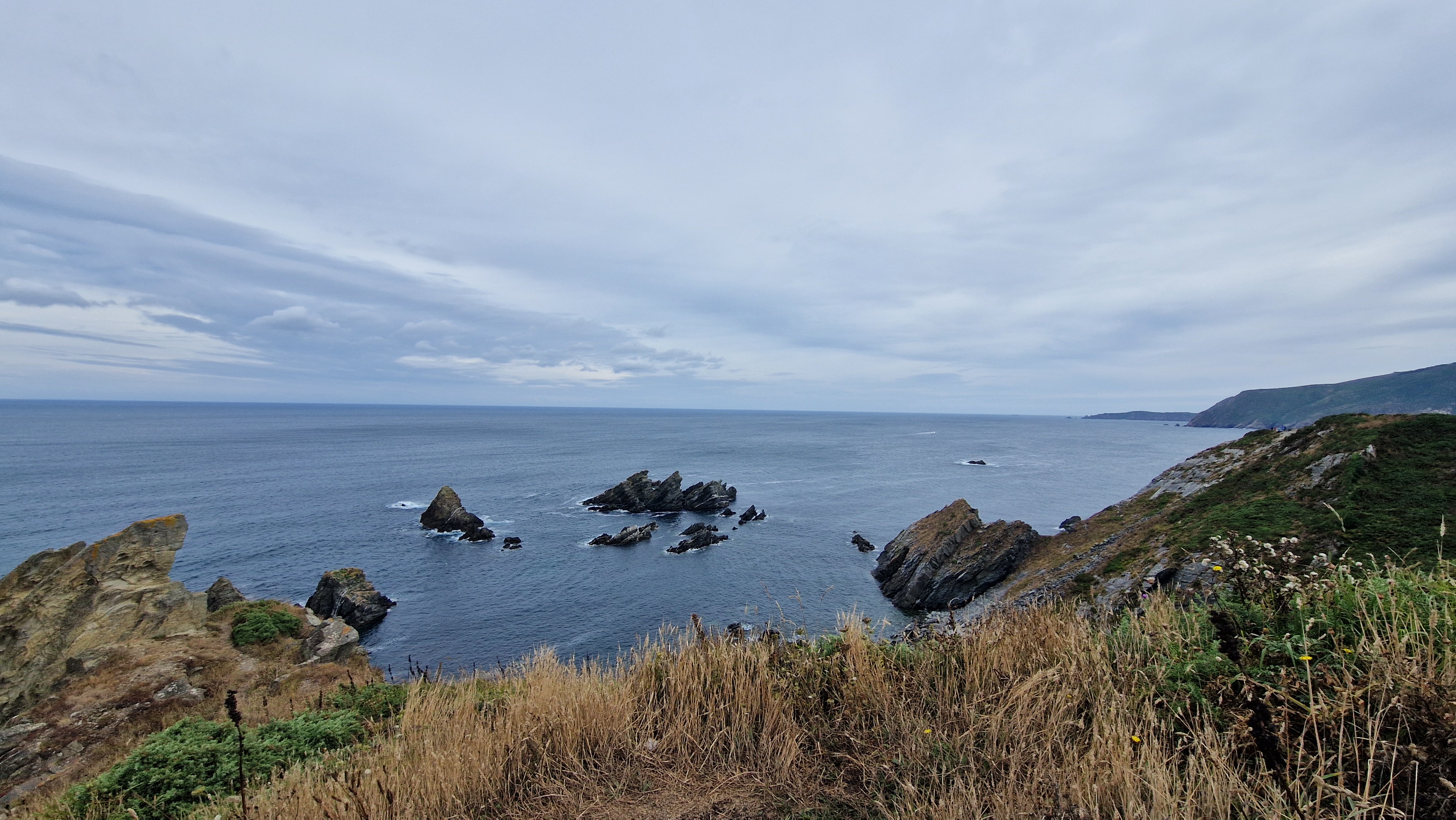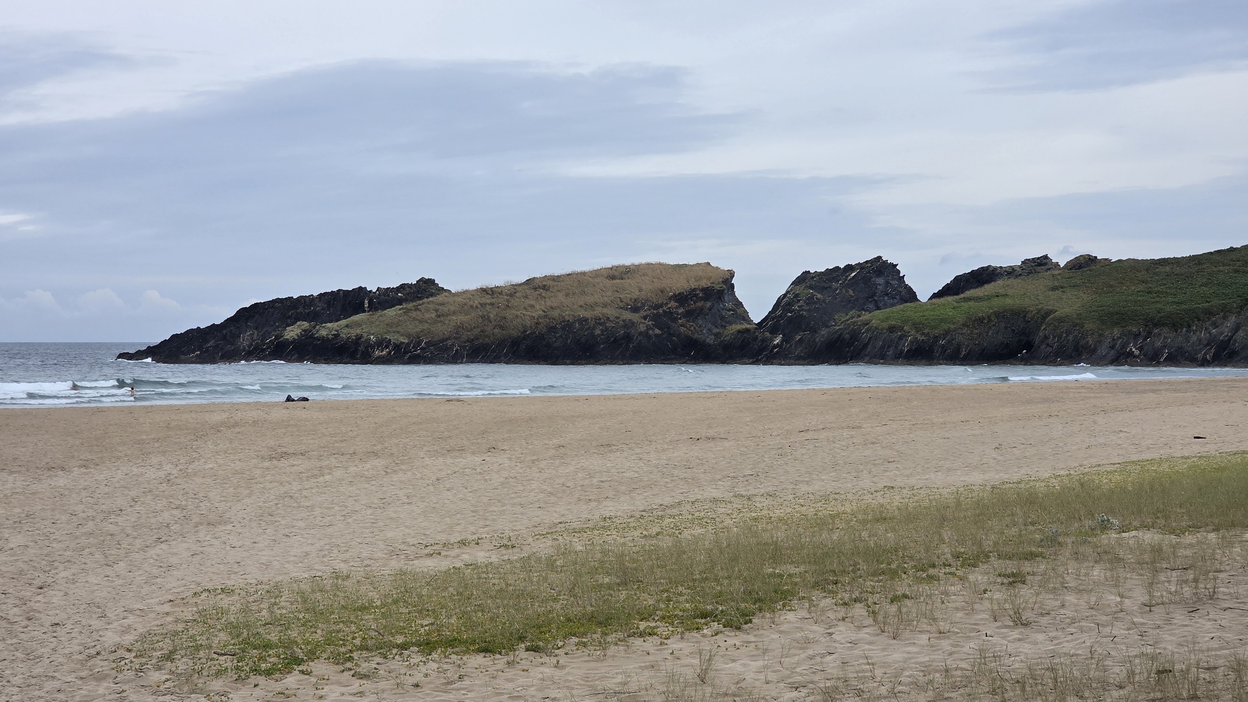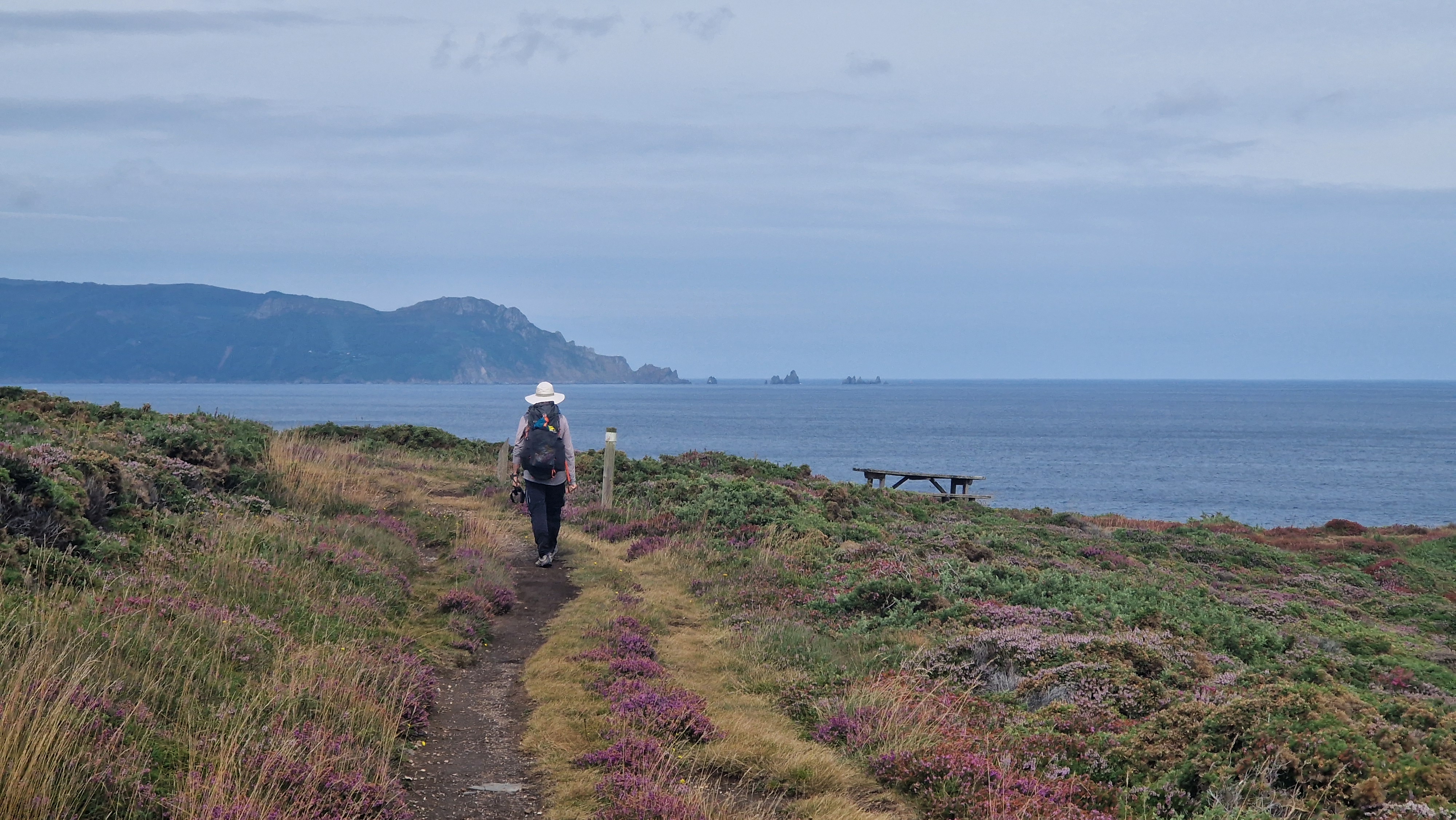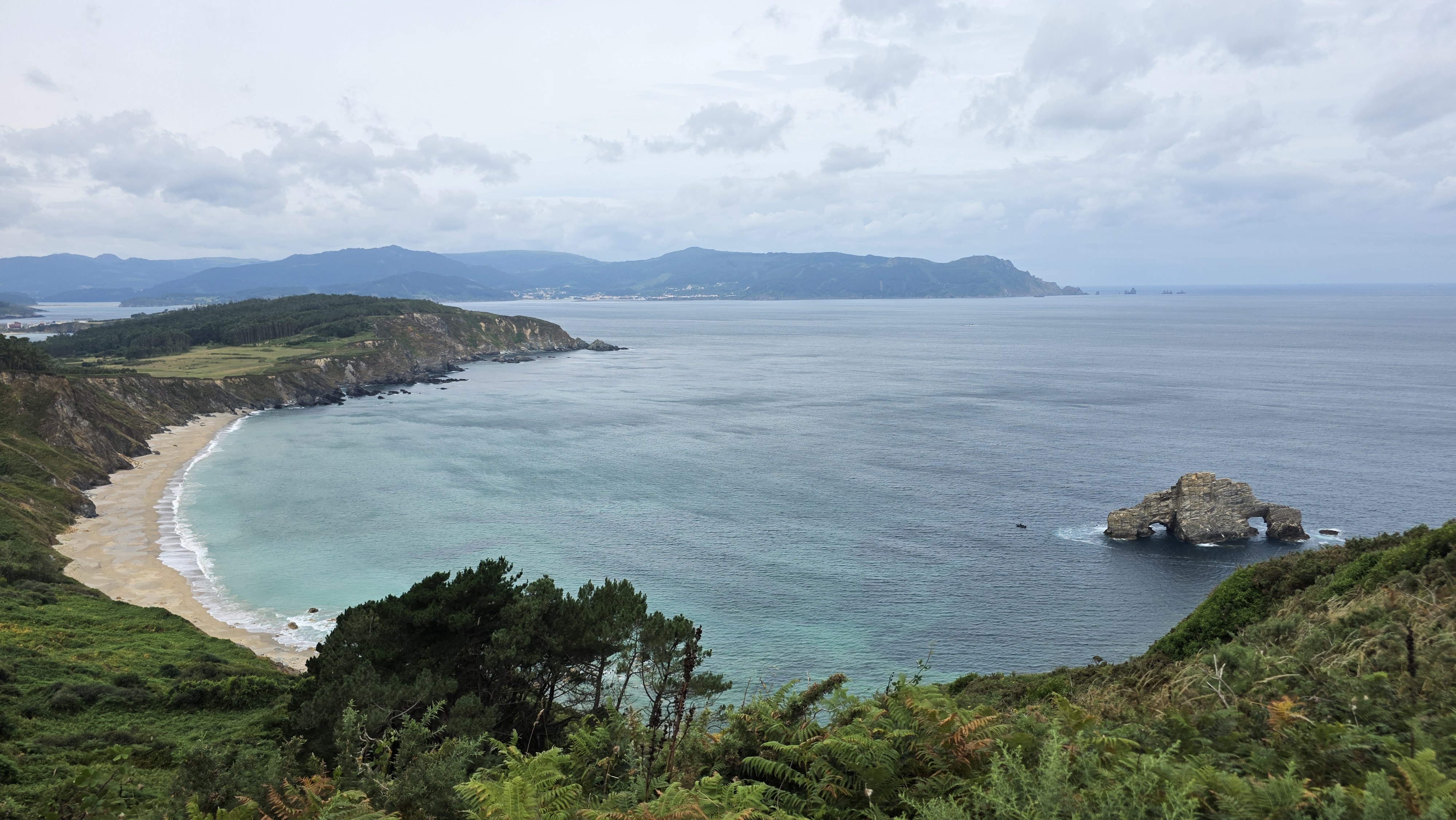Nous sommes montés au village d’O Barqueiro et sommes redescendus de l’autre côté du cap de la Estaca de Bares vers ce qui était donc notre première plage de l’Océan Atlantique.