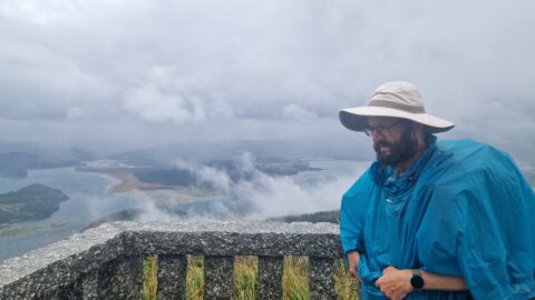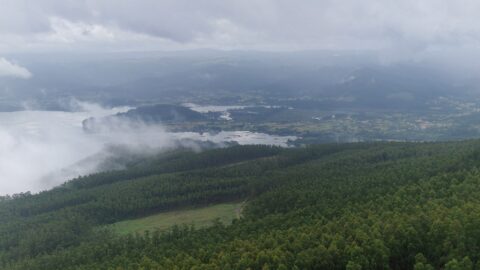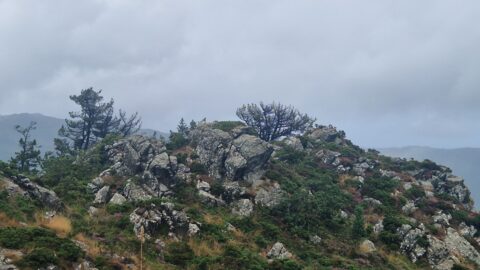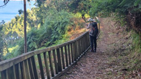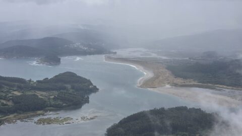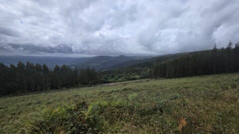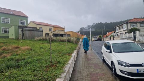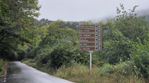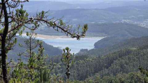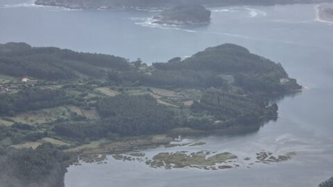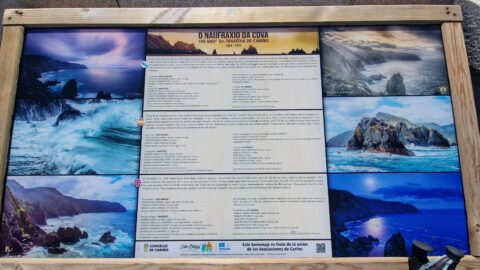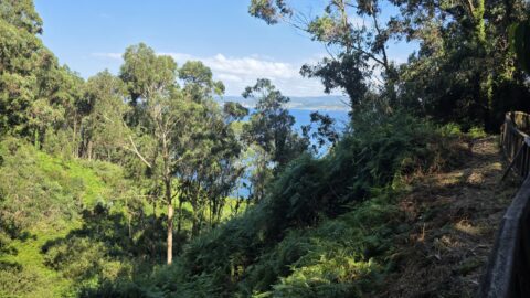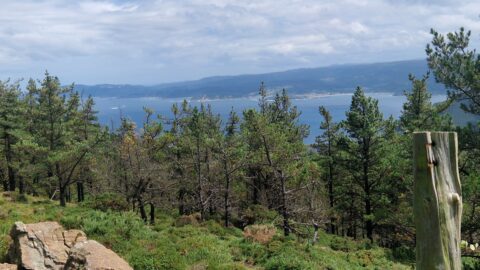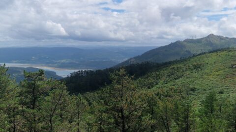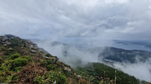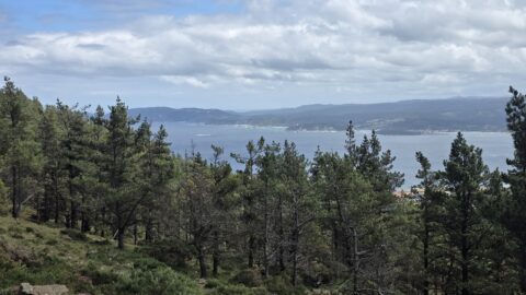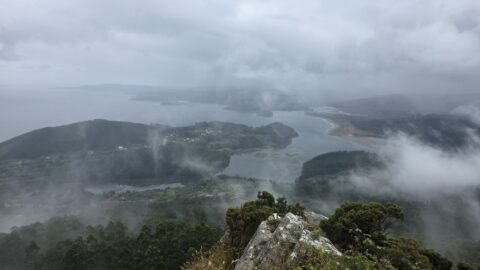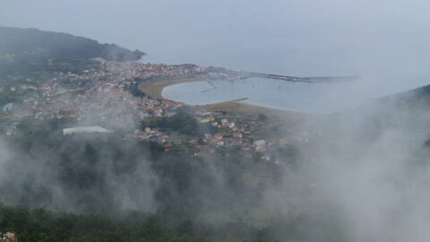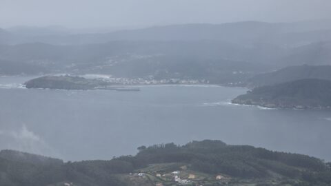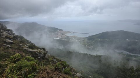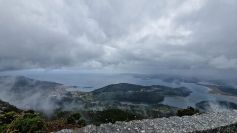 Nous sommes partis sous la pluie et le ciel était encore bien couvert quand nous sommes arrivés à A Miranda. La vue à travers les nuages était vraiment spectaculaire. Ce point de vue est l’endroit idéal pour voir Cariño et la ria que nous avons contournée hier.