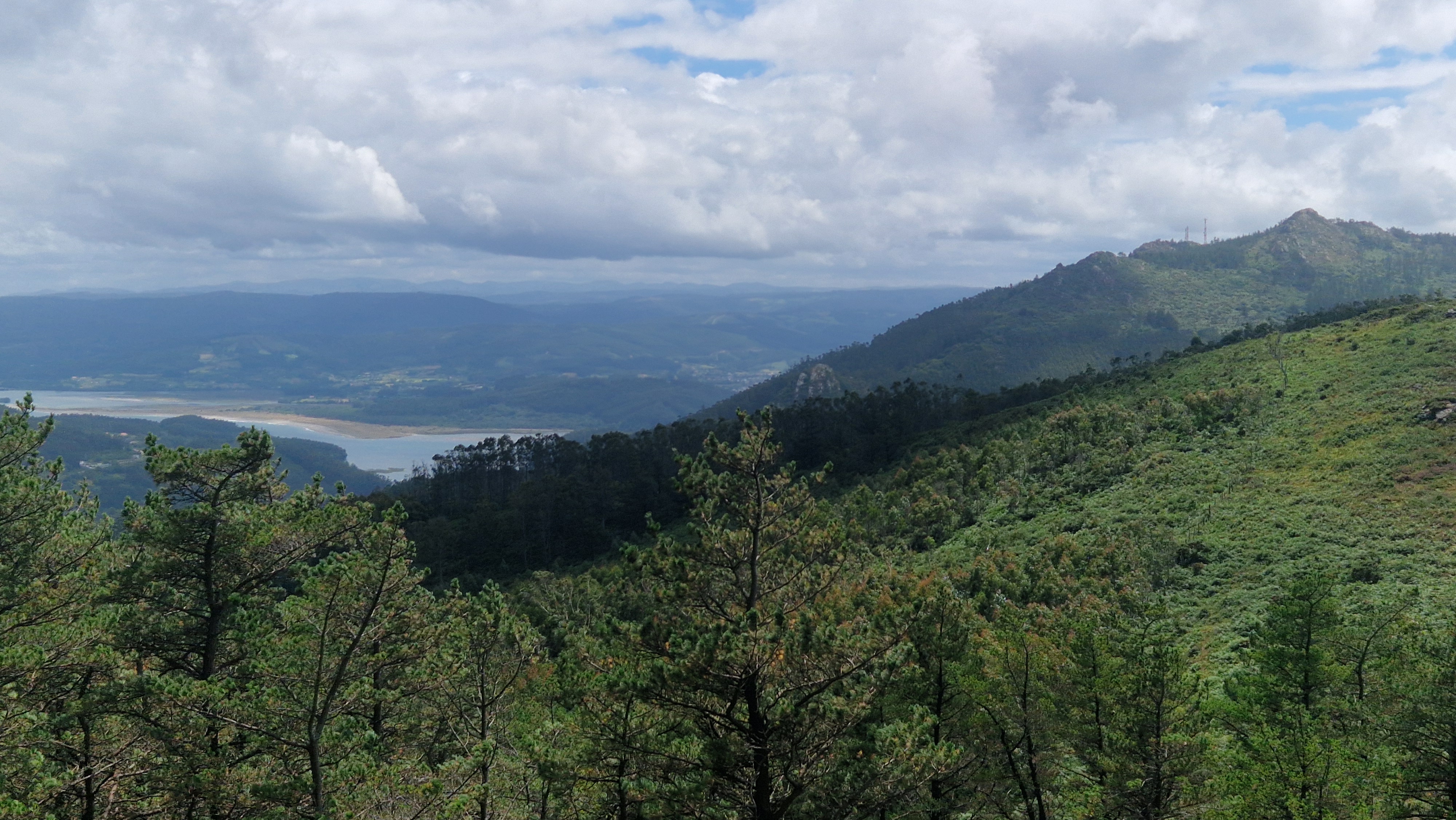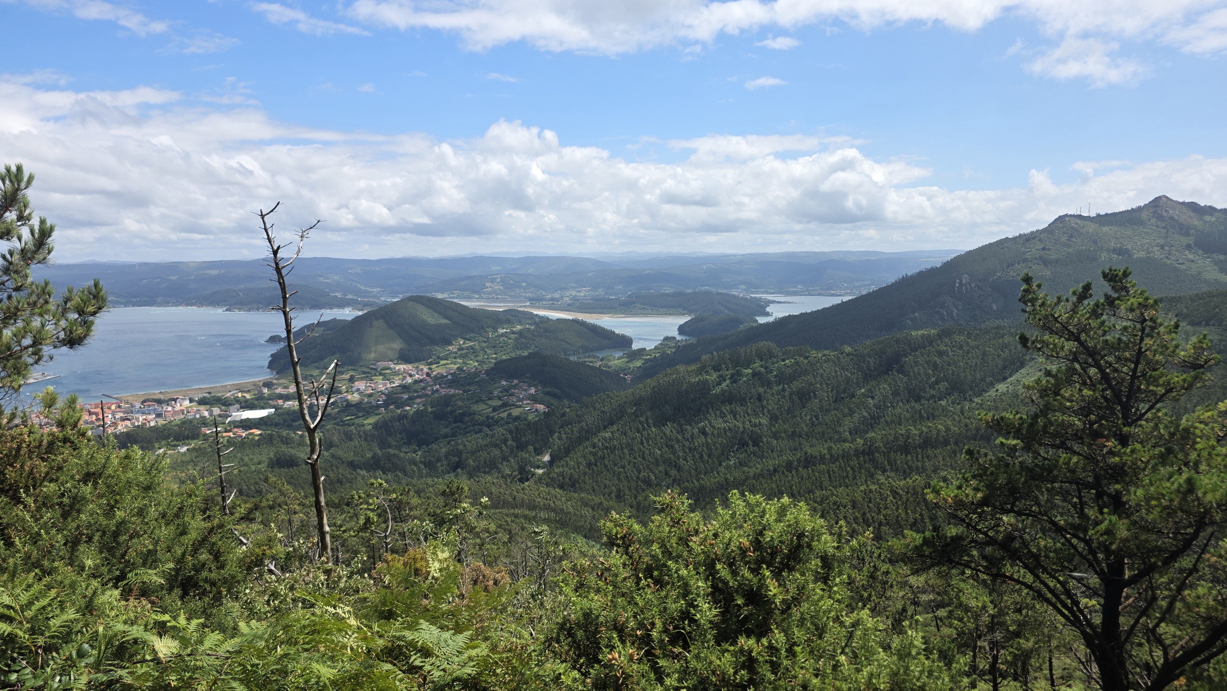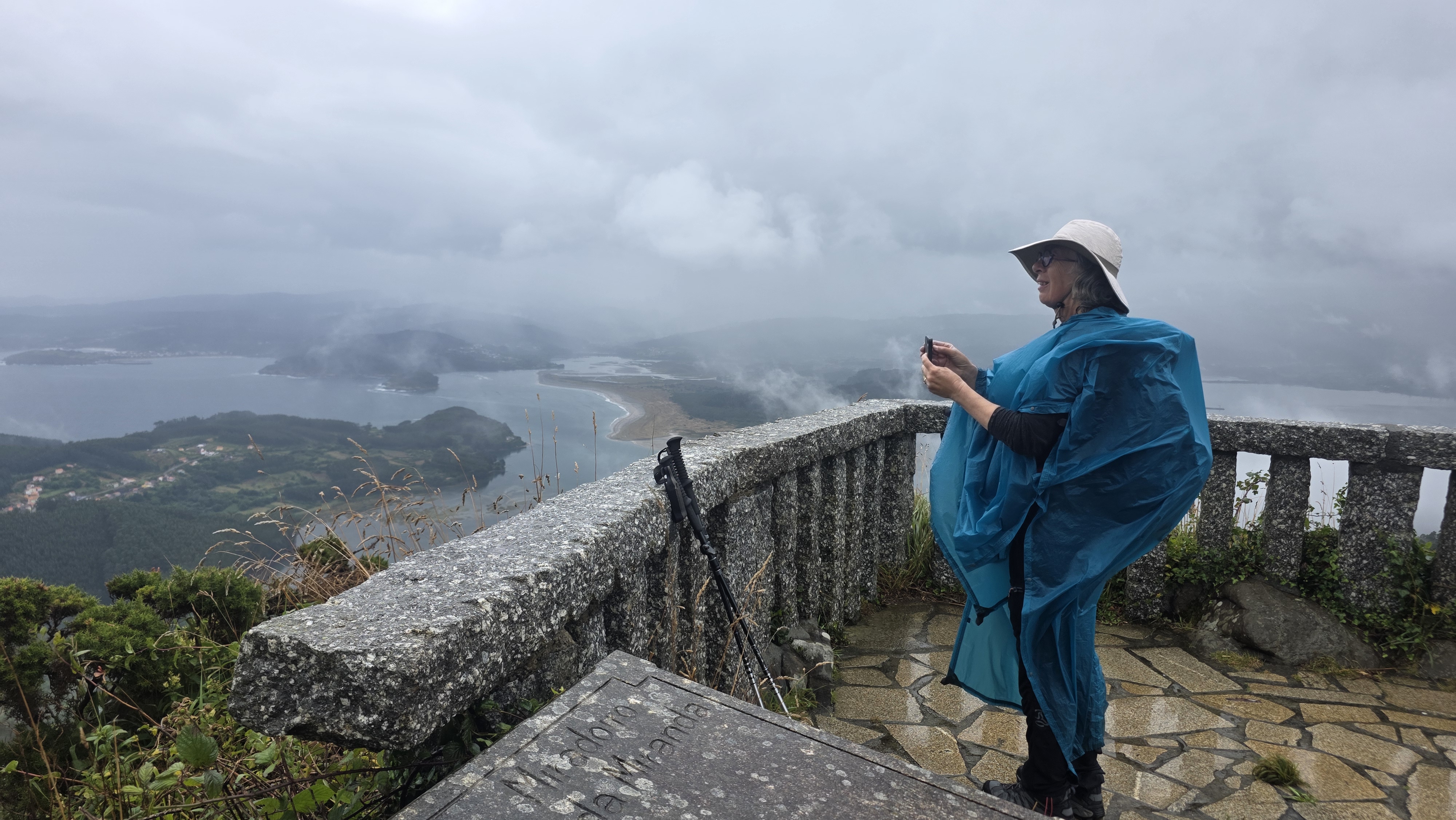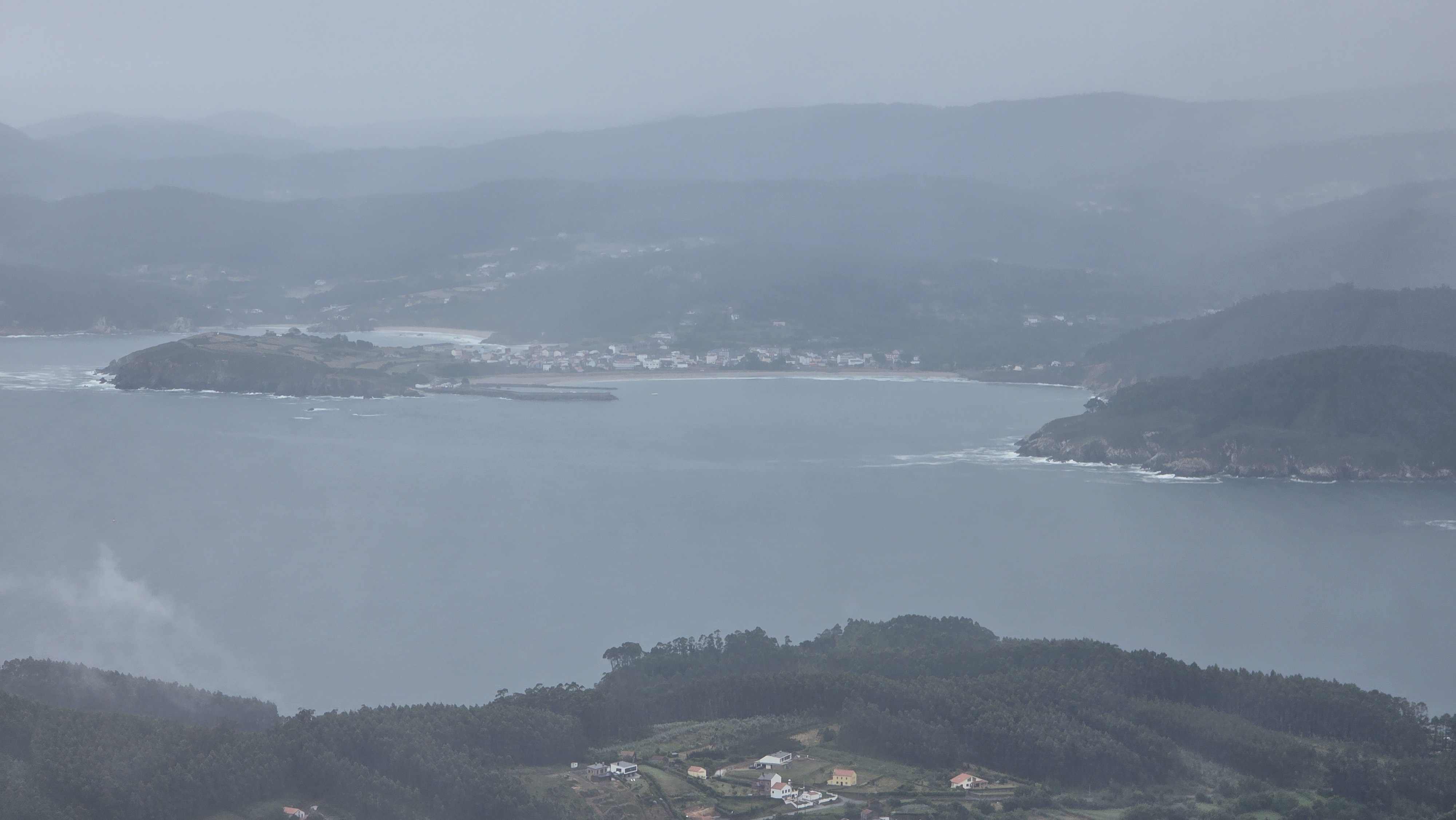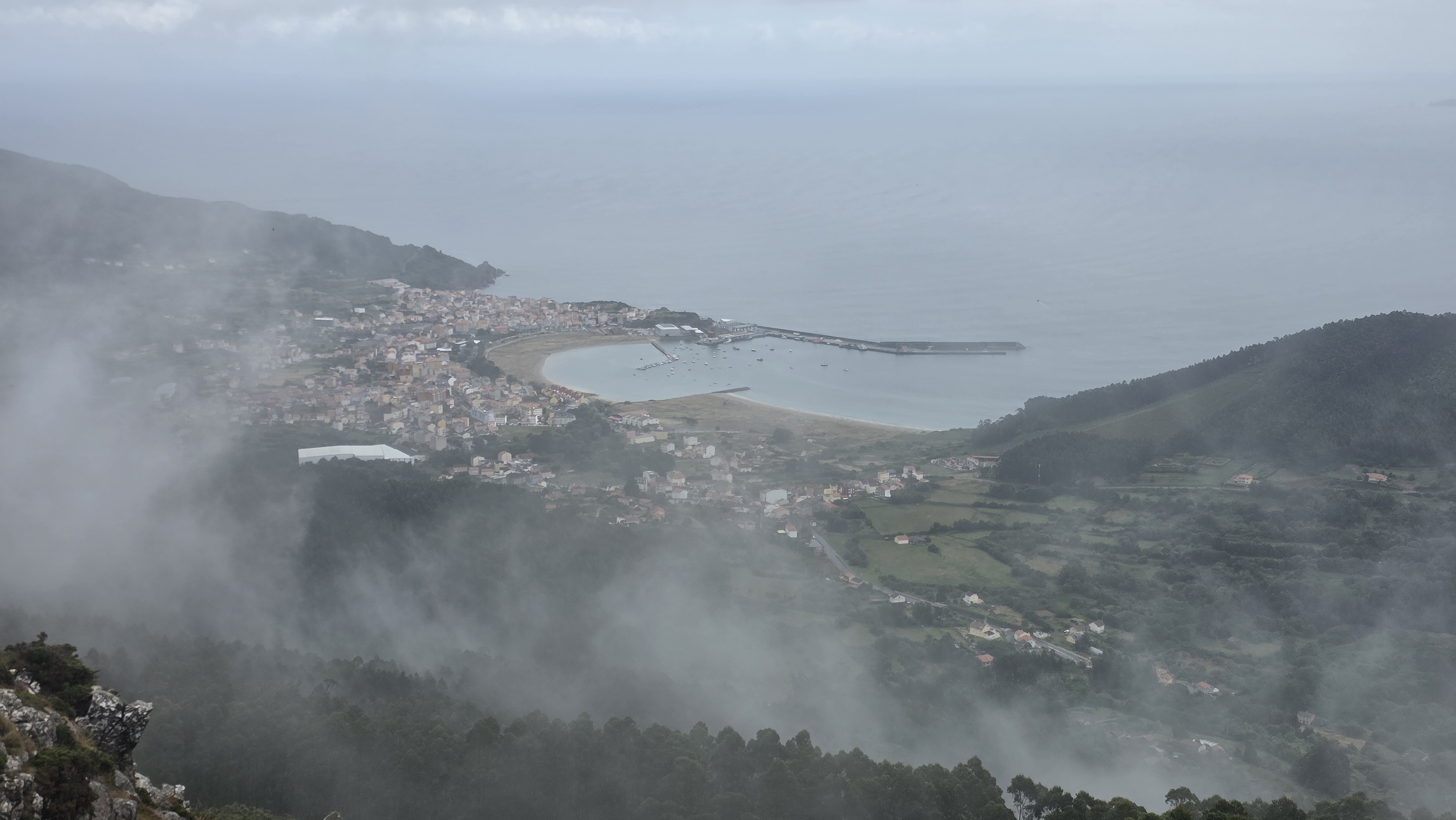 Nous sommes partis sous la pluie et le ciel était encore bien couvert quand nous sommes arrivés à A Miranda. La vue à travers les nuages était vraiment spectaculaire. Ce point de vue est l’endroit idéal pour voir Cariño et la ria que nous avons contournée hier.