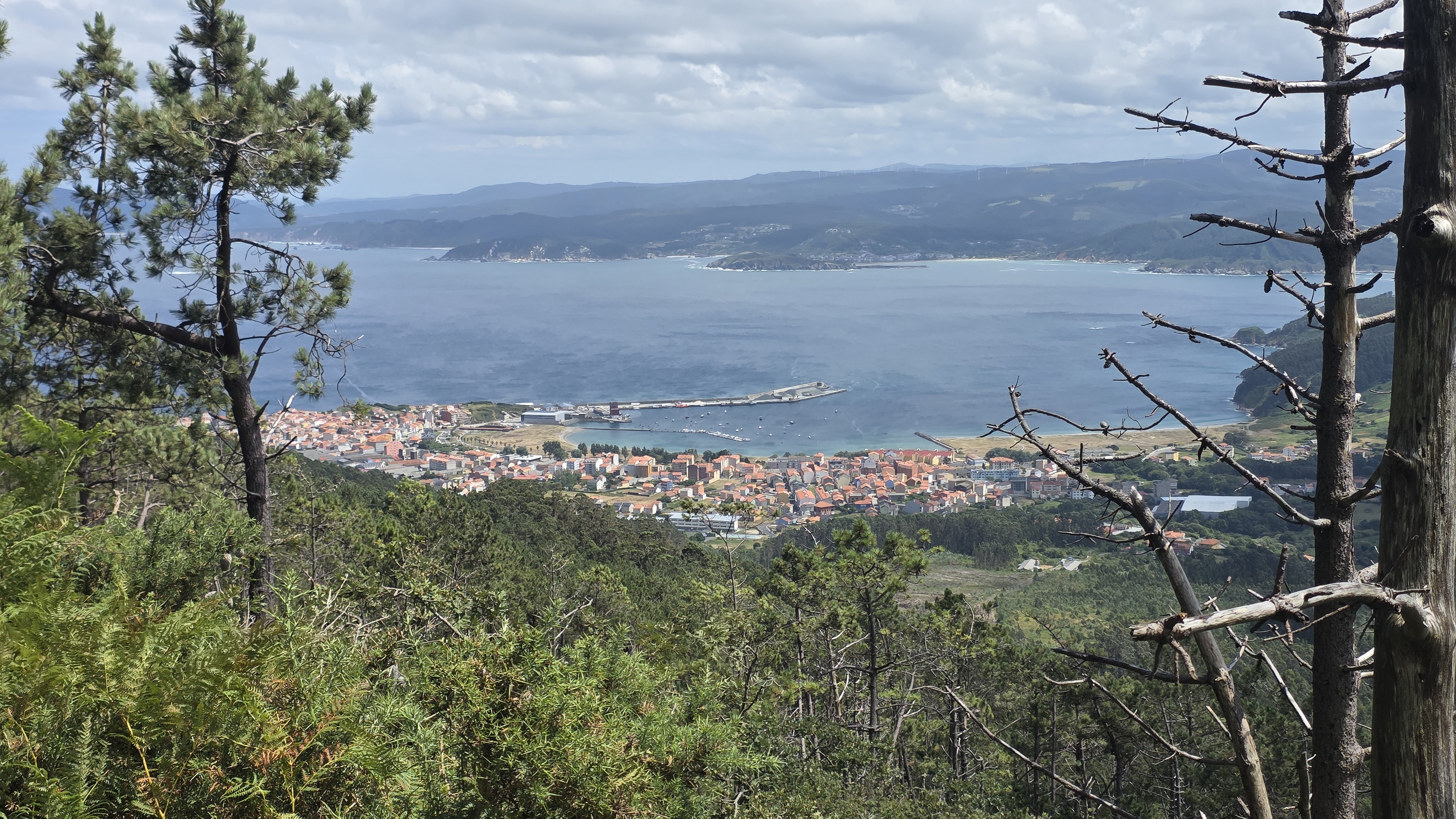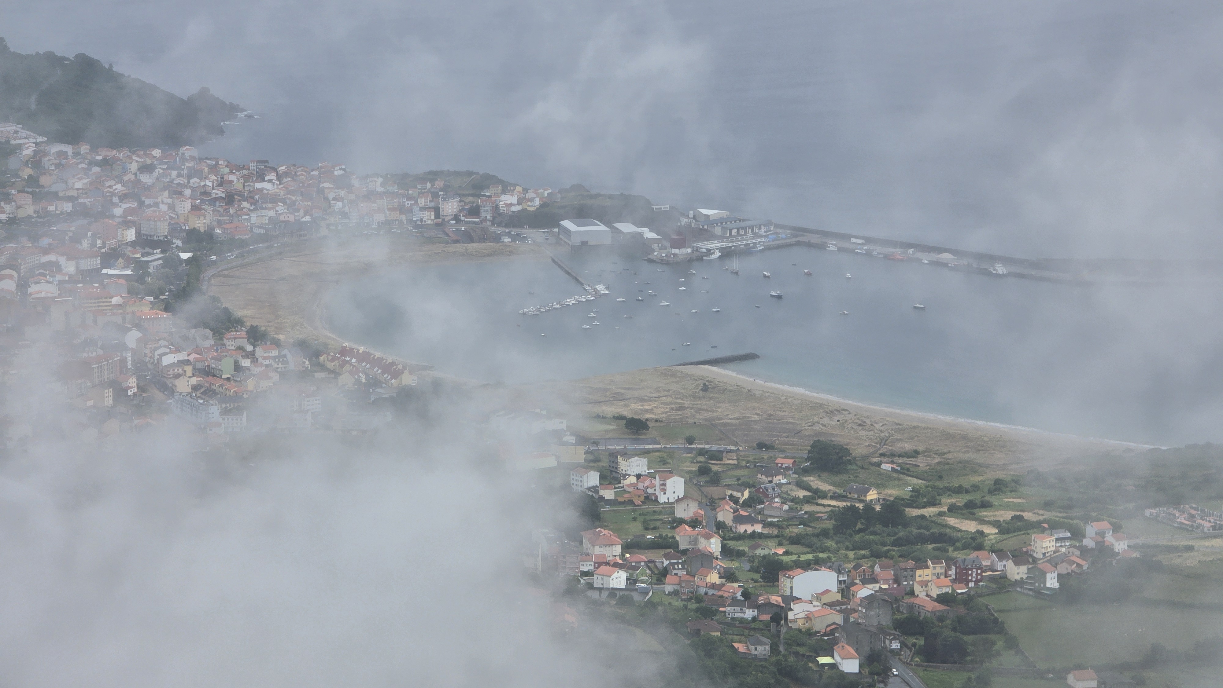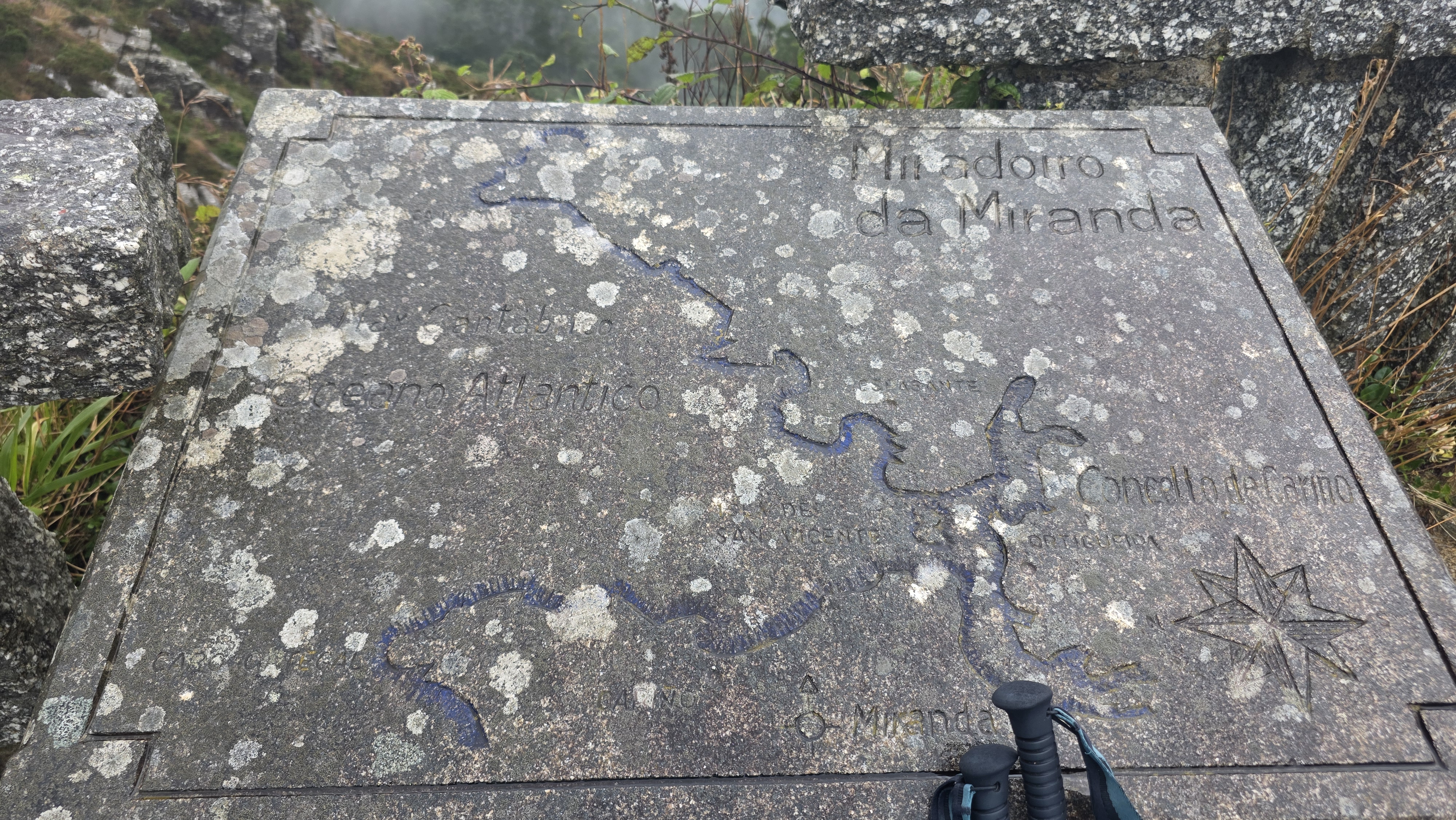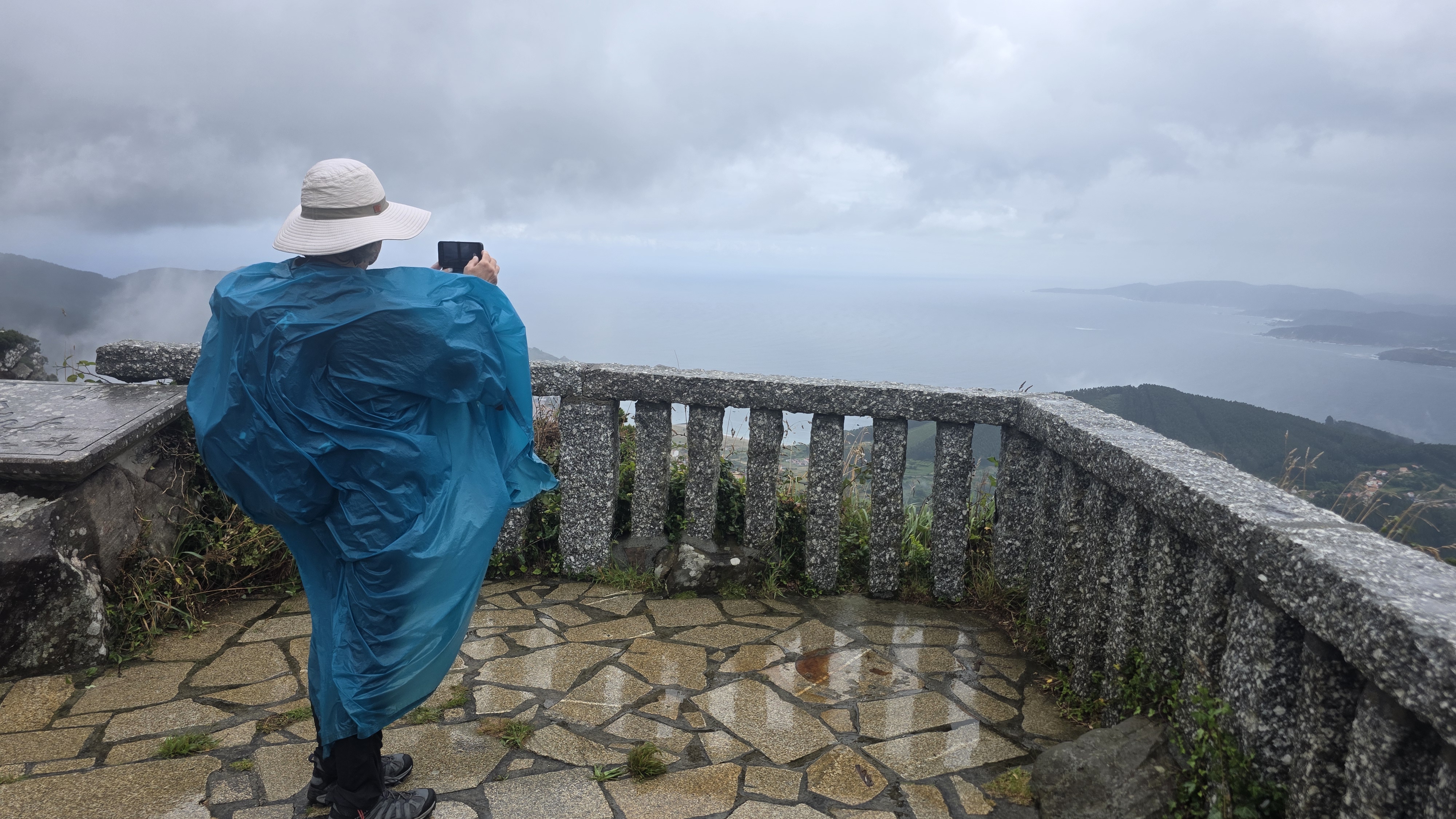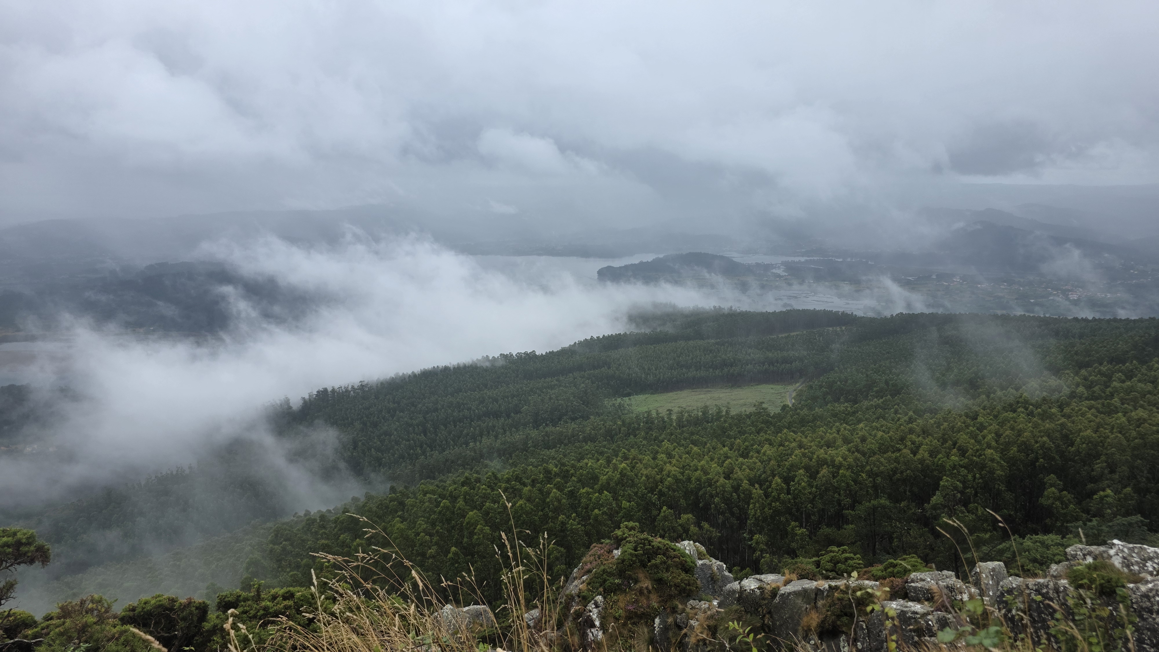 Nous sommes partis sous la pluie et le ciel était encore bien couvert quand nous sommes arrivés à A Miranda. La vue à travers les nuages était vraiment spectaculaire. Ce point de vue est l’endroit idéal pour voir Cariño et la ria que nous avons contournée hier.