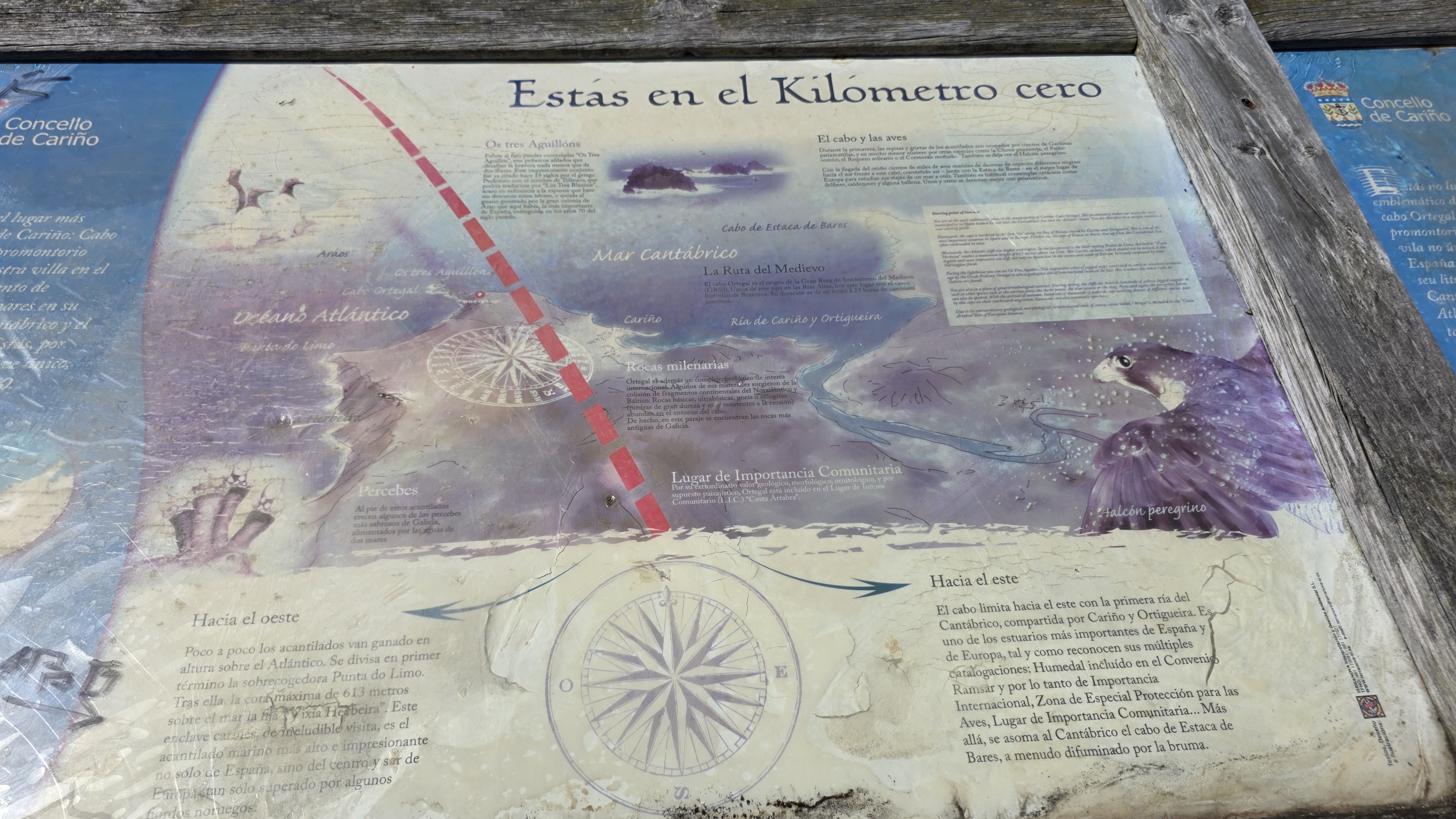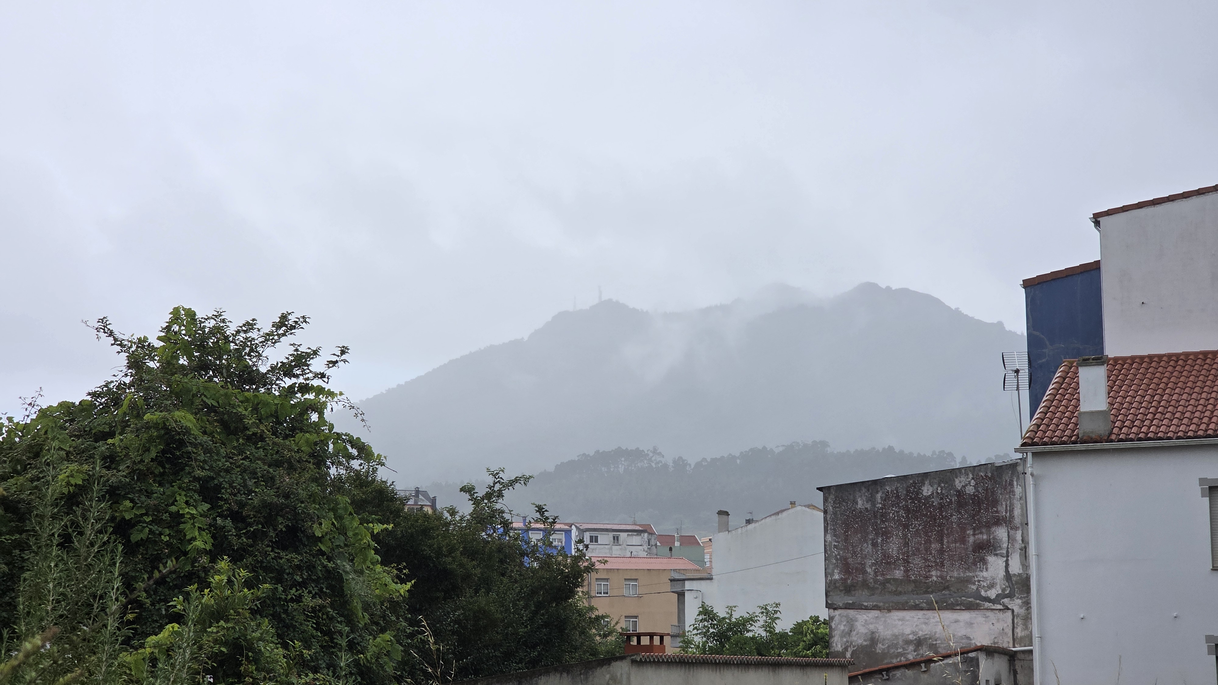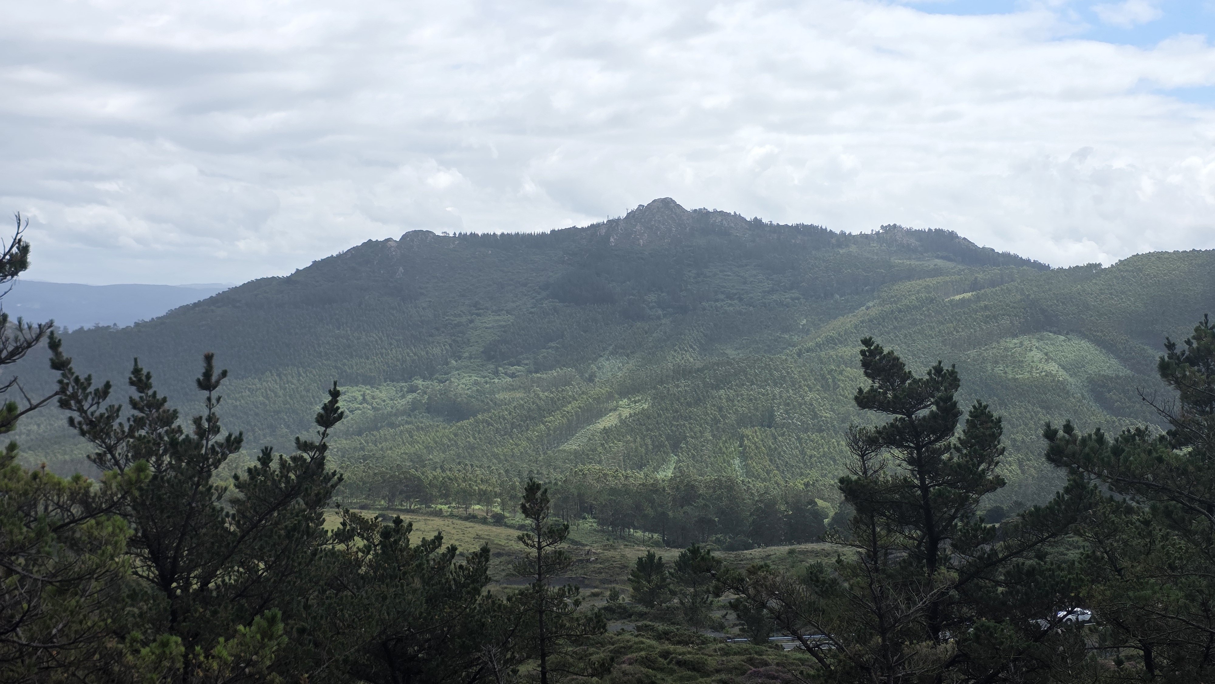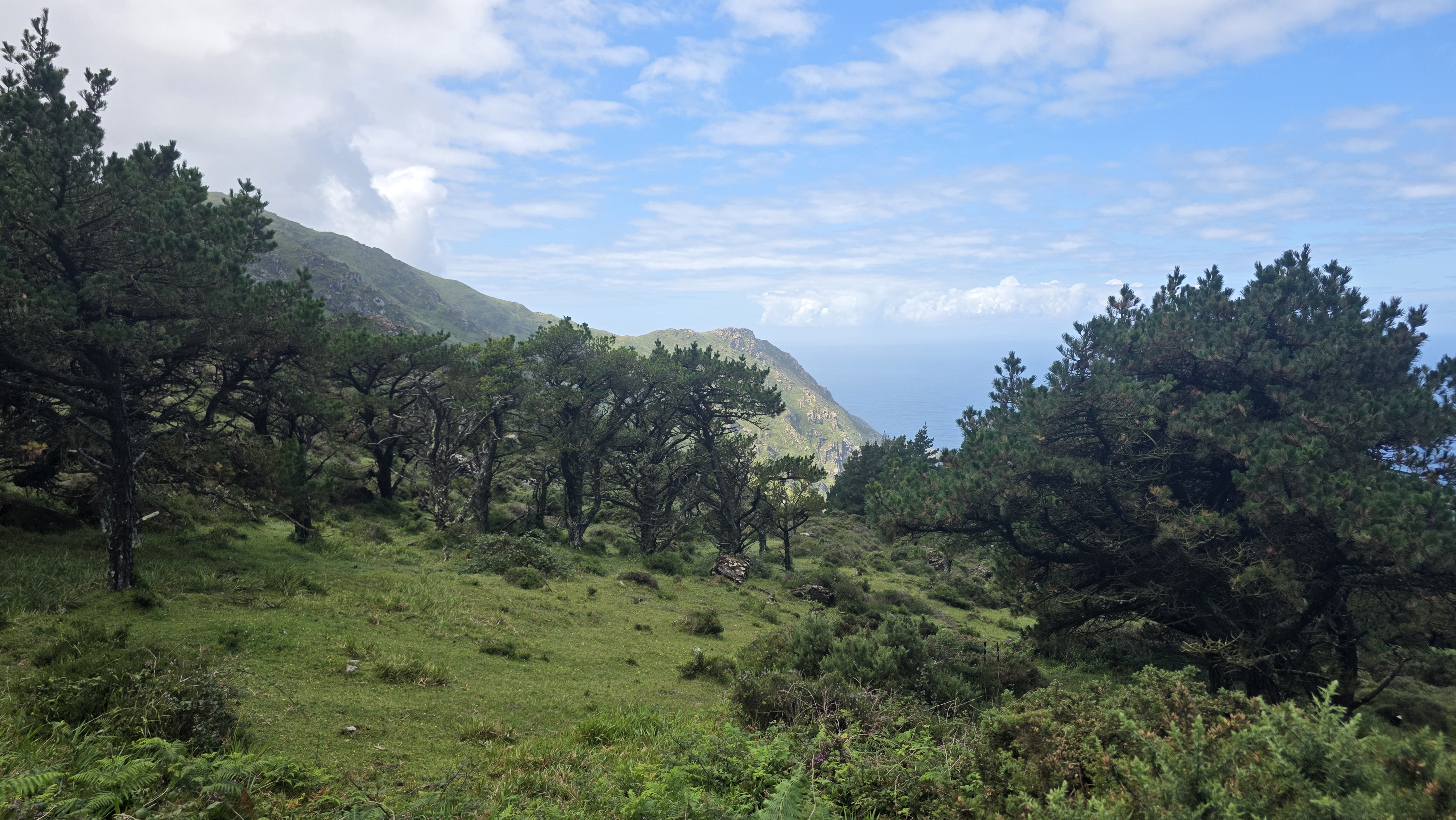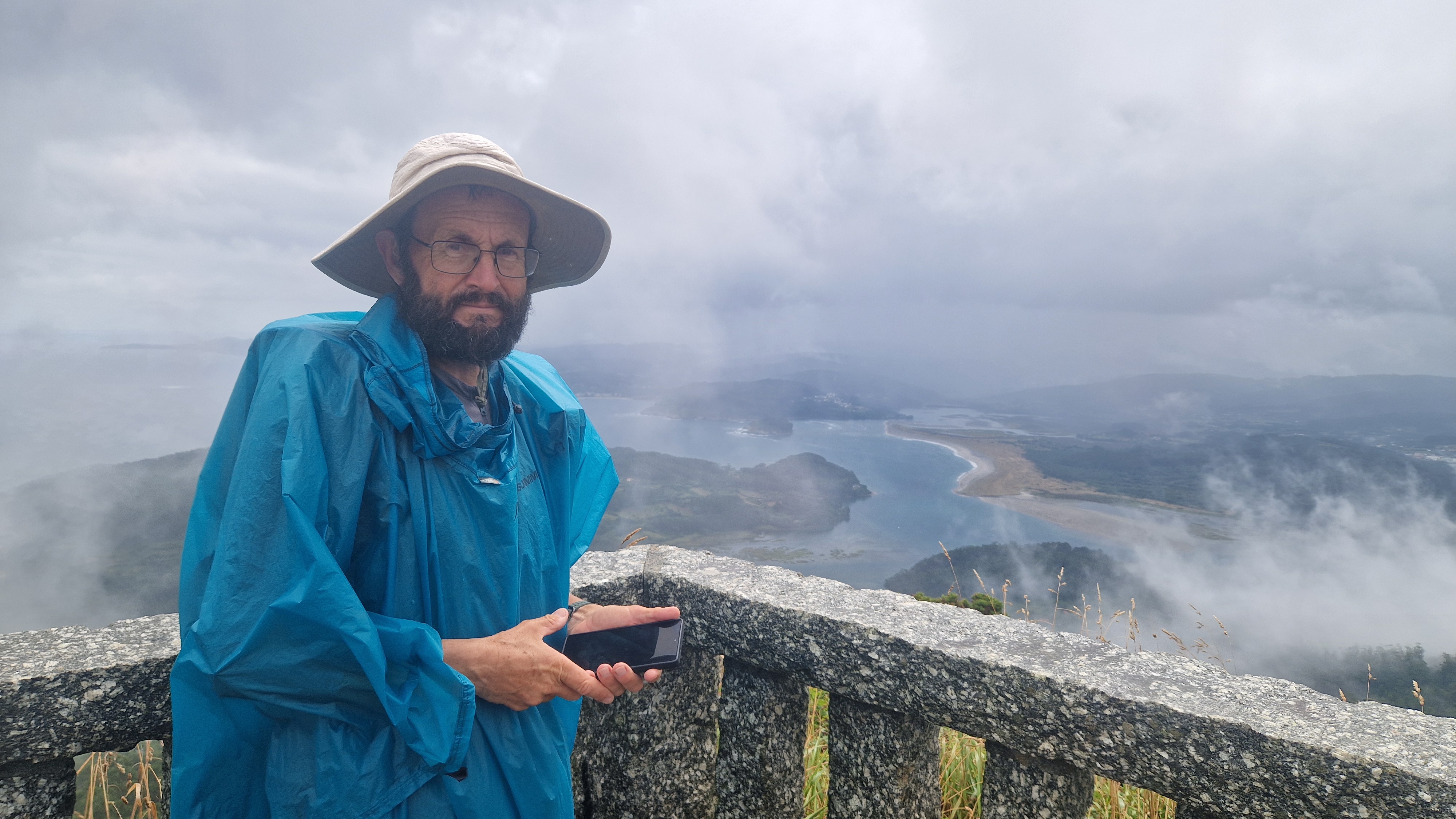 Nous sommes partis sous la pluie et le ciel était encore bien couvert quand nous sommes arrivés à A Miranda. La vue à travers les nuages était vraiment spectaculaire. Ce point de vue est l’endroit idéal pour voir Cariño et la ria que nous avons contournée hier.