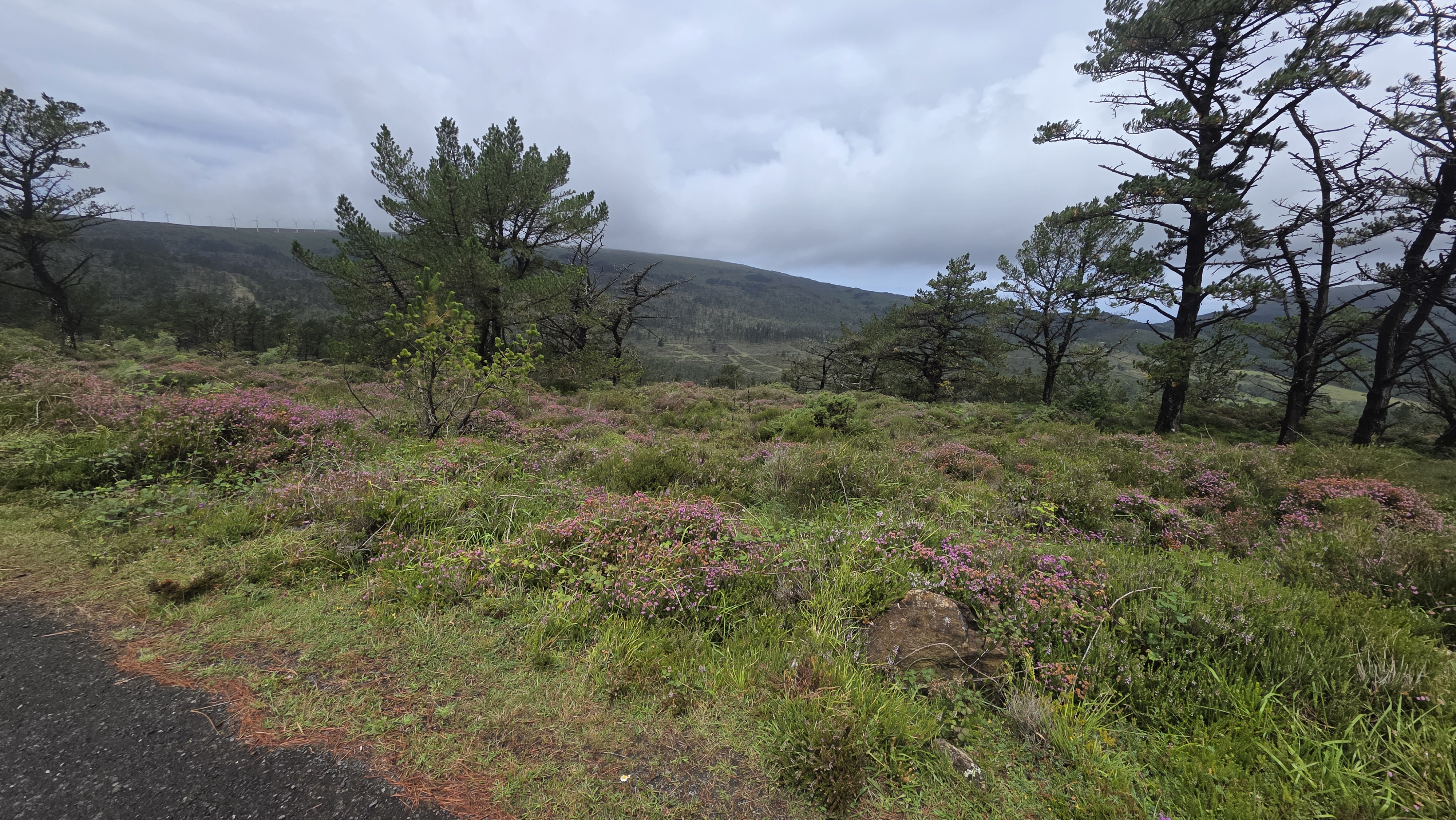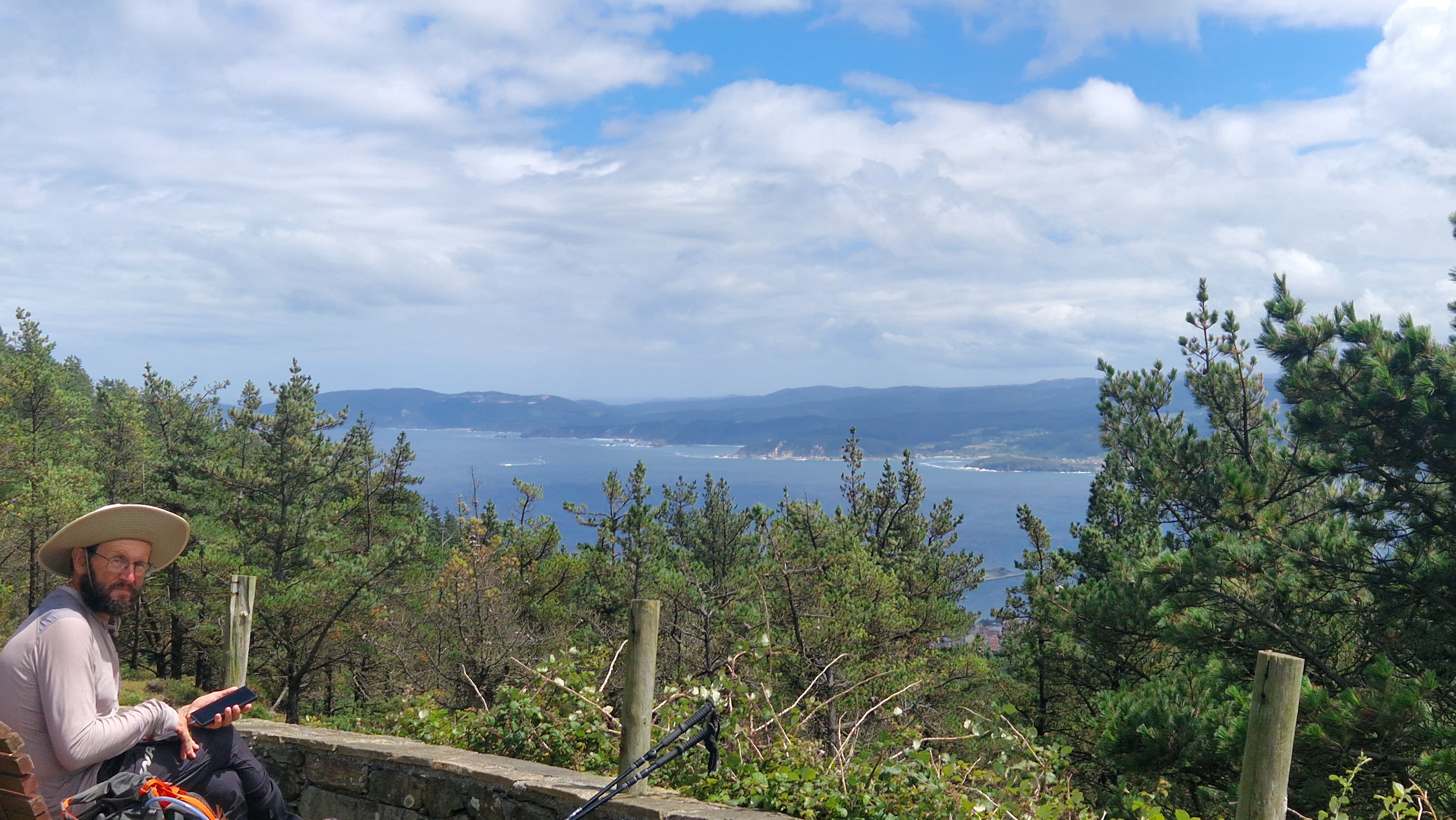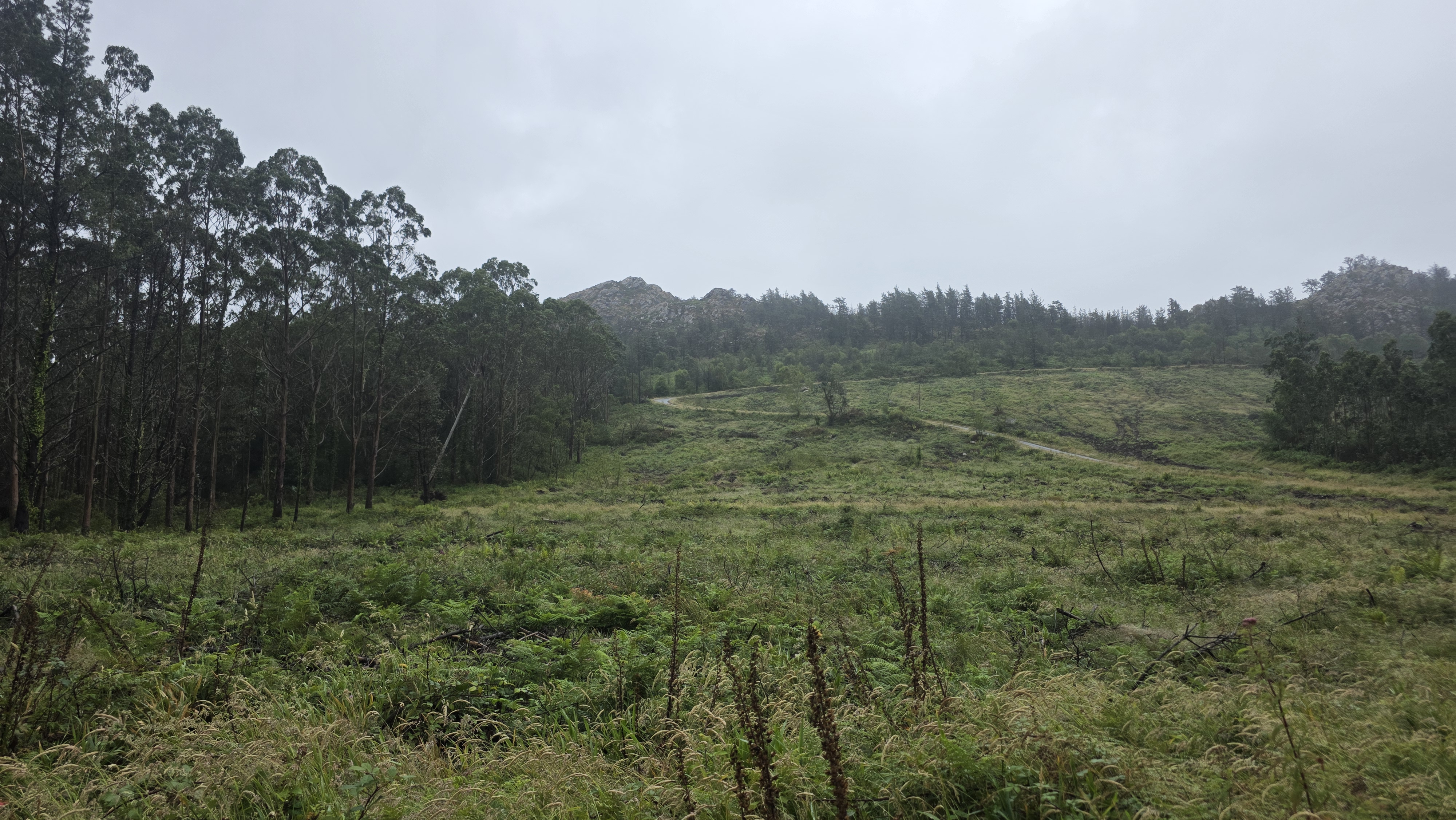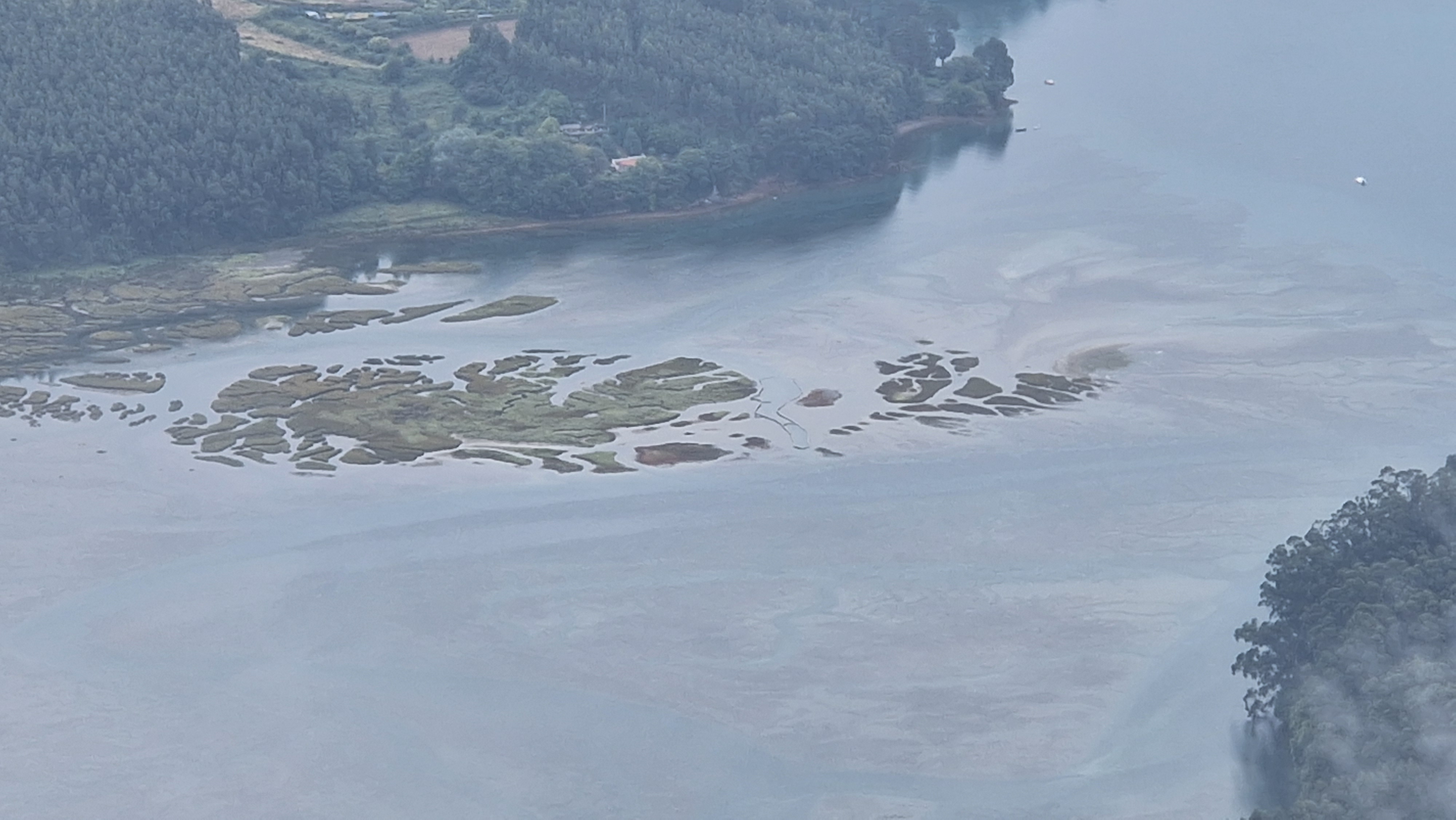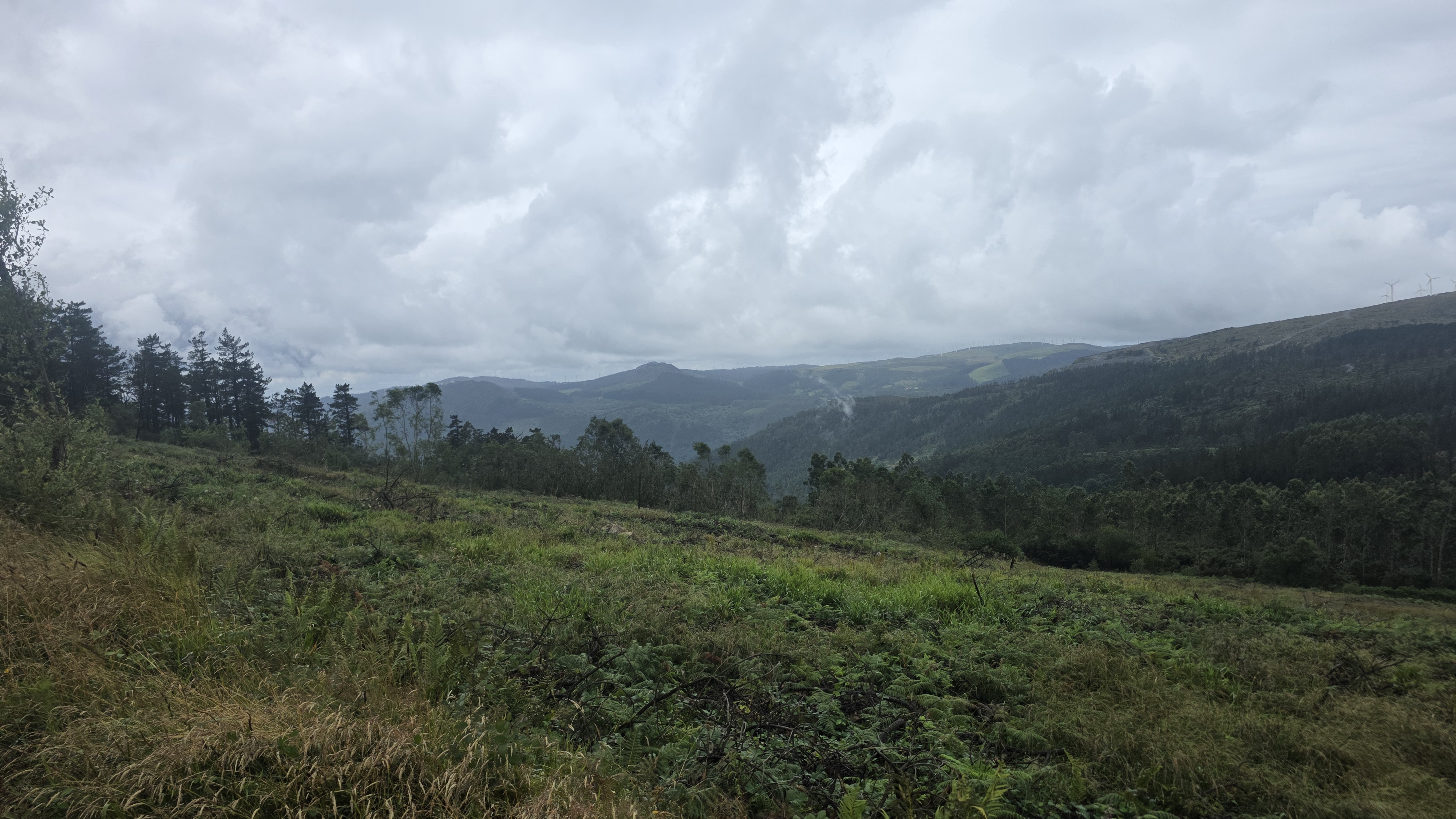 Nous sommes partis sous la pluie et le ciel était encore bien couvert quand nous sommes arrivés à A Miranda. La vue à travers les nuages était vraiment spectaculaire. Ce point de vue est l’endroit idéal pour voir Cariño et la ria que nous avons contournée hier.