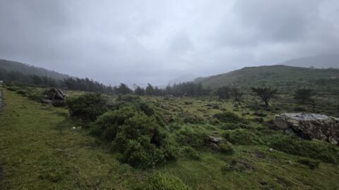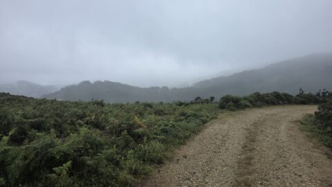 Au fur et à mesure que nous montions la bruine s’est fait de plus en plus insistante et nous avons fini par mettre nos ponchos.