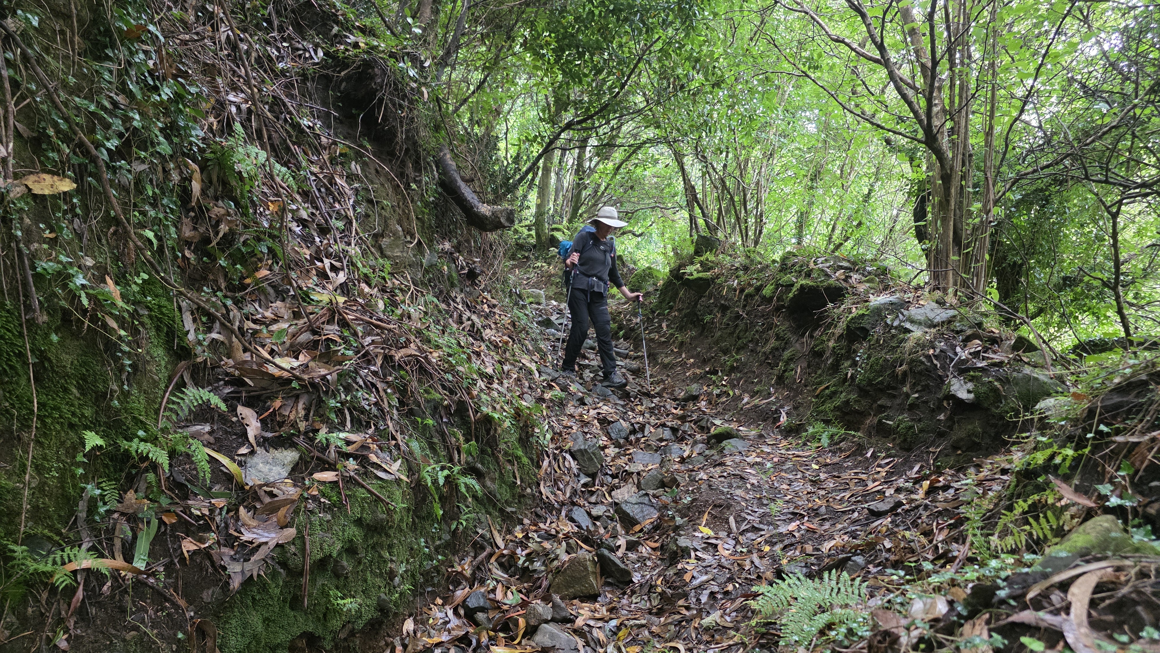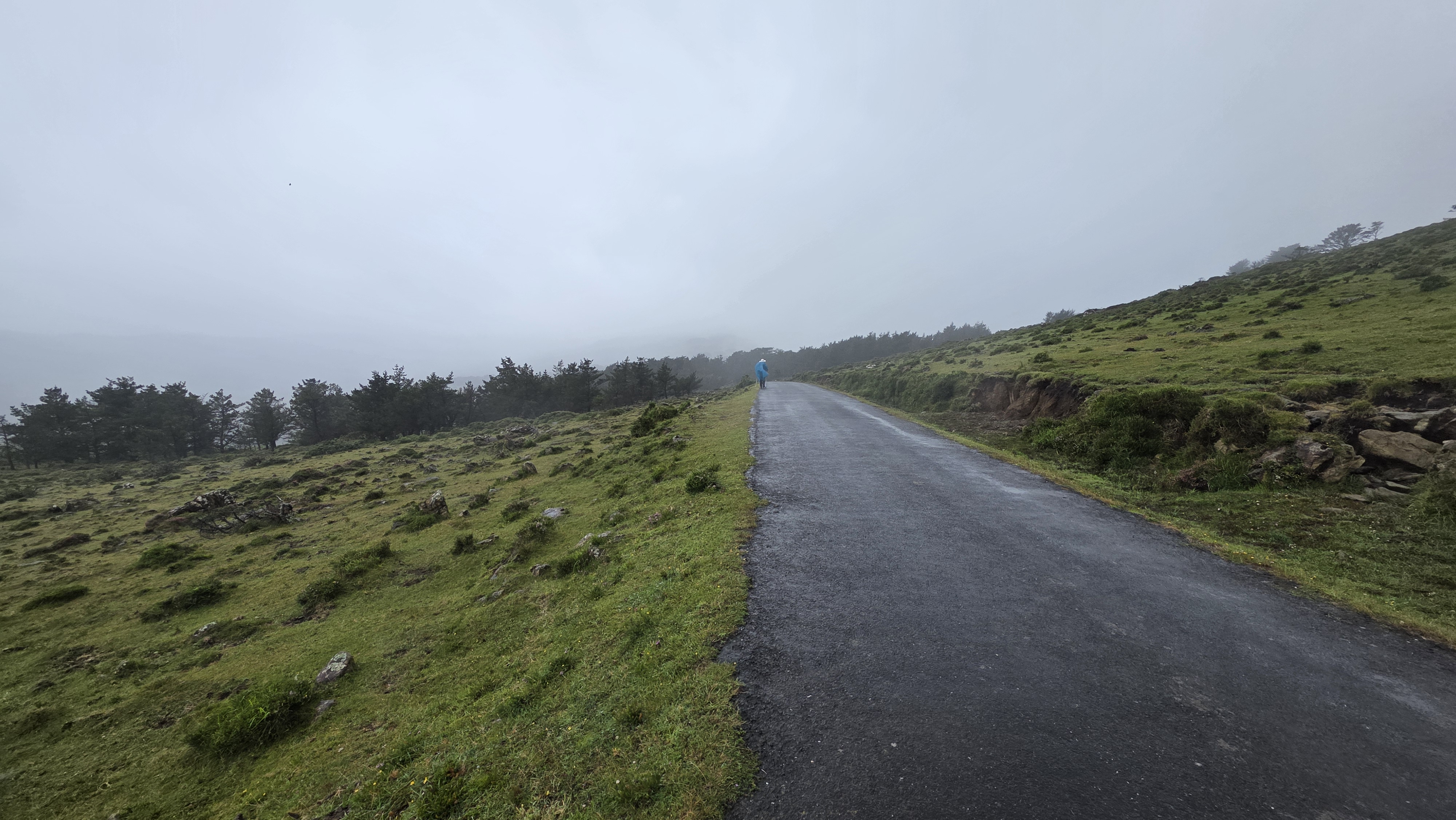 Au fur et à mesure que nous montions la bruine s’est fait de plus en plus insistante et nous avons fini par mettre nos ponchos.