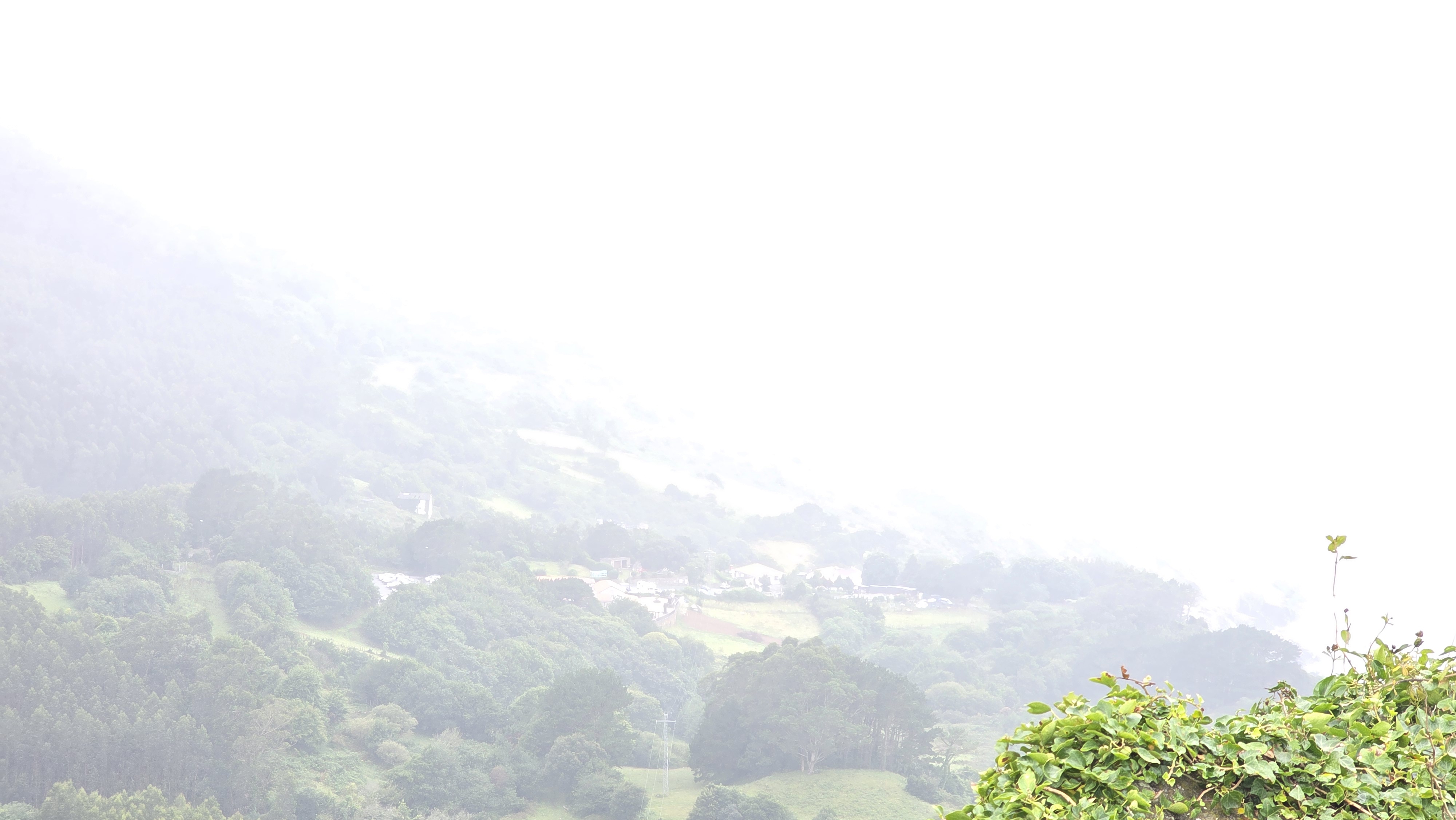 La situation a empiré quand nous avons rejoint la « route des belvédères ». Nous étions arrivés dans le nuage, la route est étroite et il y avait quelques voitures que nous ne voyions qu’au dernier moment à travers nos lunettes mouillées et entendions à peine avec le bruit que faisait le vent (qui s’était levé) dans nos ponchos.